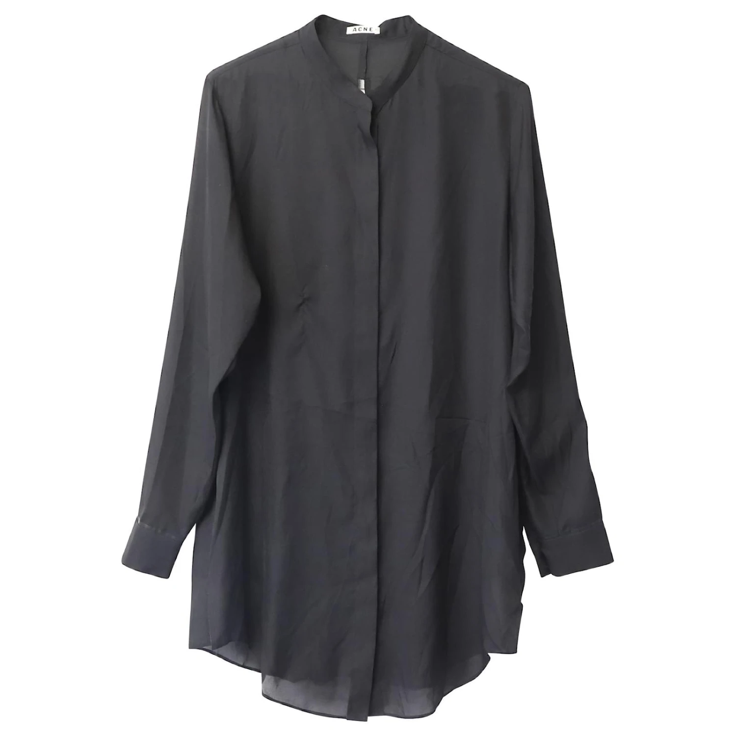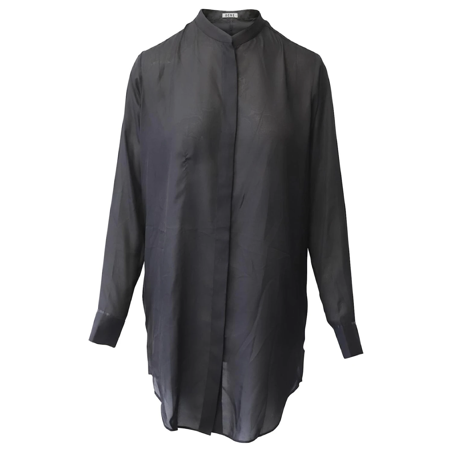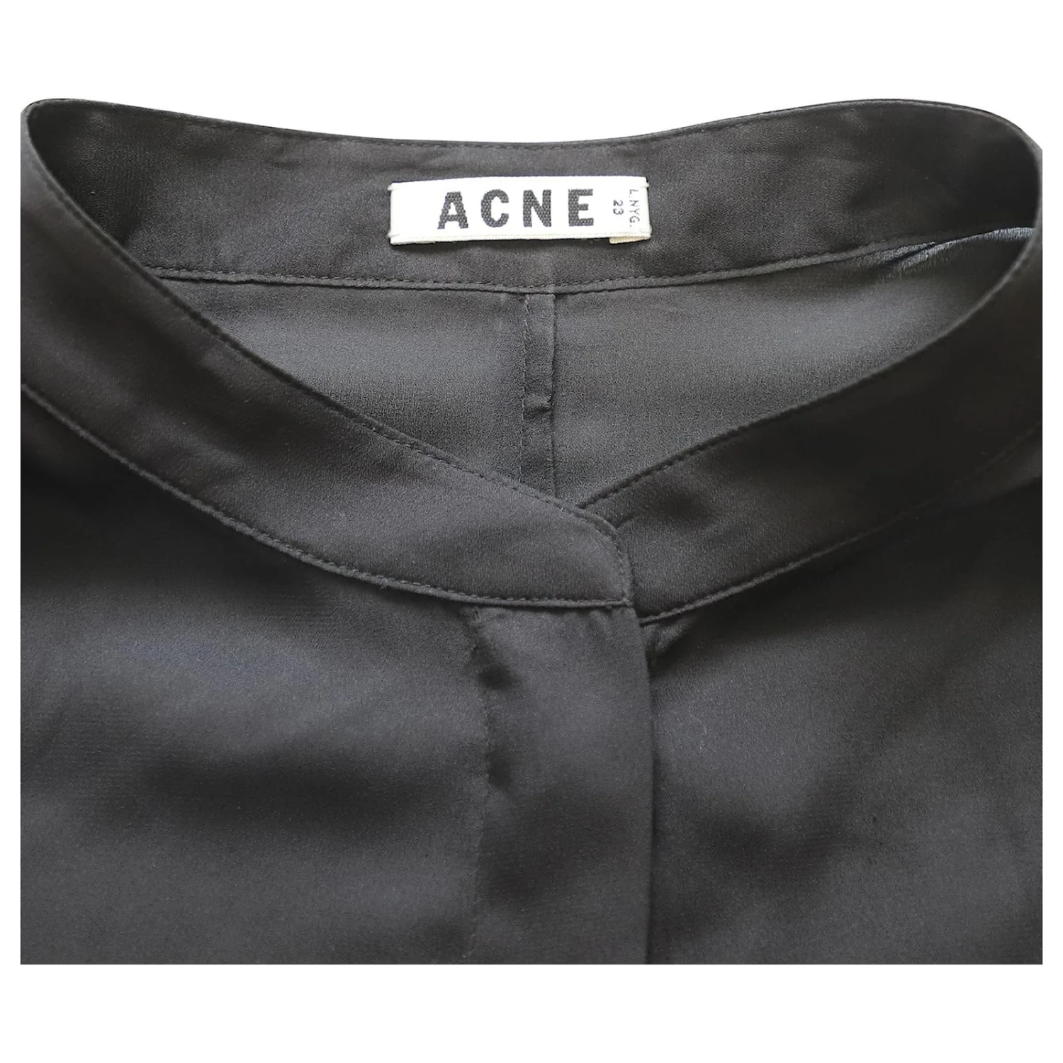 Acne Studios Robe Chemise Fendue au Dos en Polyester Noir