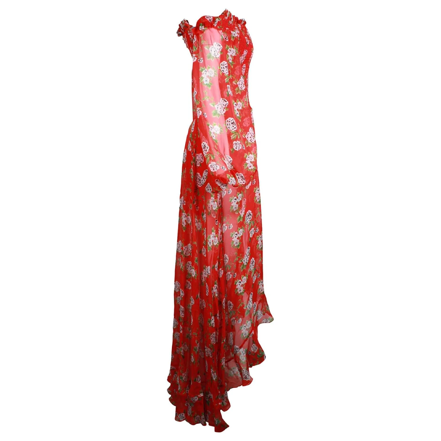Une robe longue à manches longues confectionnée avec un corsage supérieur smocké et des manches longues à épaules dénudées, cette robe à imprimé floral est un ajout indispensable à votre garde-robe. À porter avec des talons à bride cheville, un pochette, et bijoux de conditionnement pour votre prochain événement.