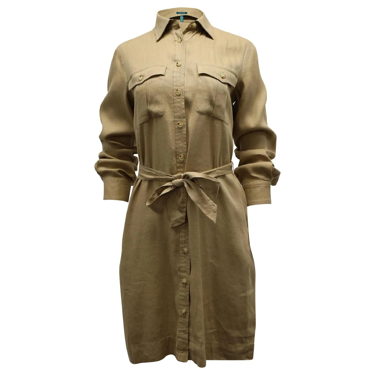 Lauren Ralph Lauren – Robe chemise ceinturée en lin beige