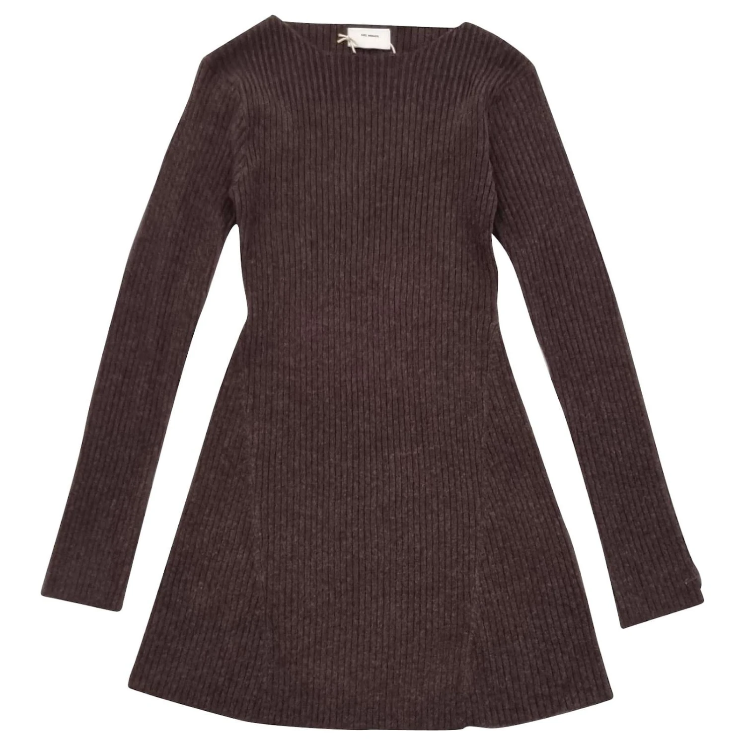 Robe courte à manches longues en laine et nylon mélangés côtelés – Marron. Col ras du cou.Ce produit a été authentifié par l’équipe Axel Arigato et est neuf avec étiquette.