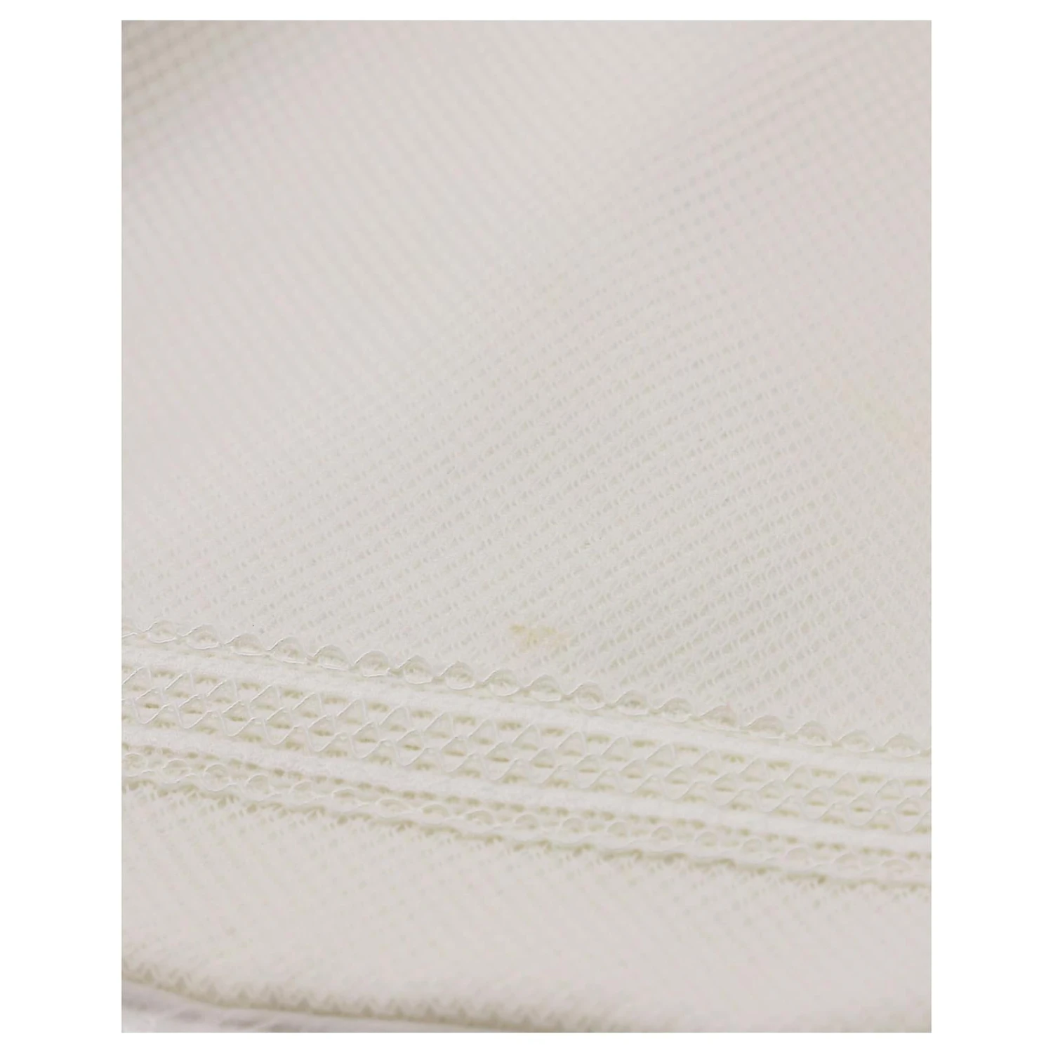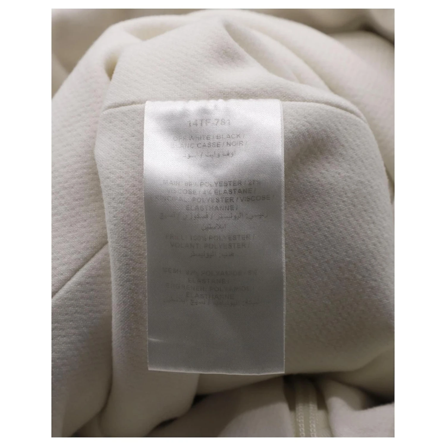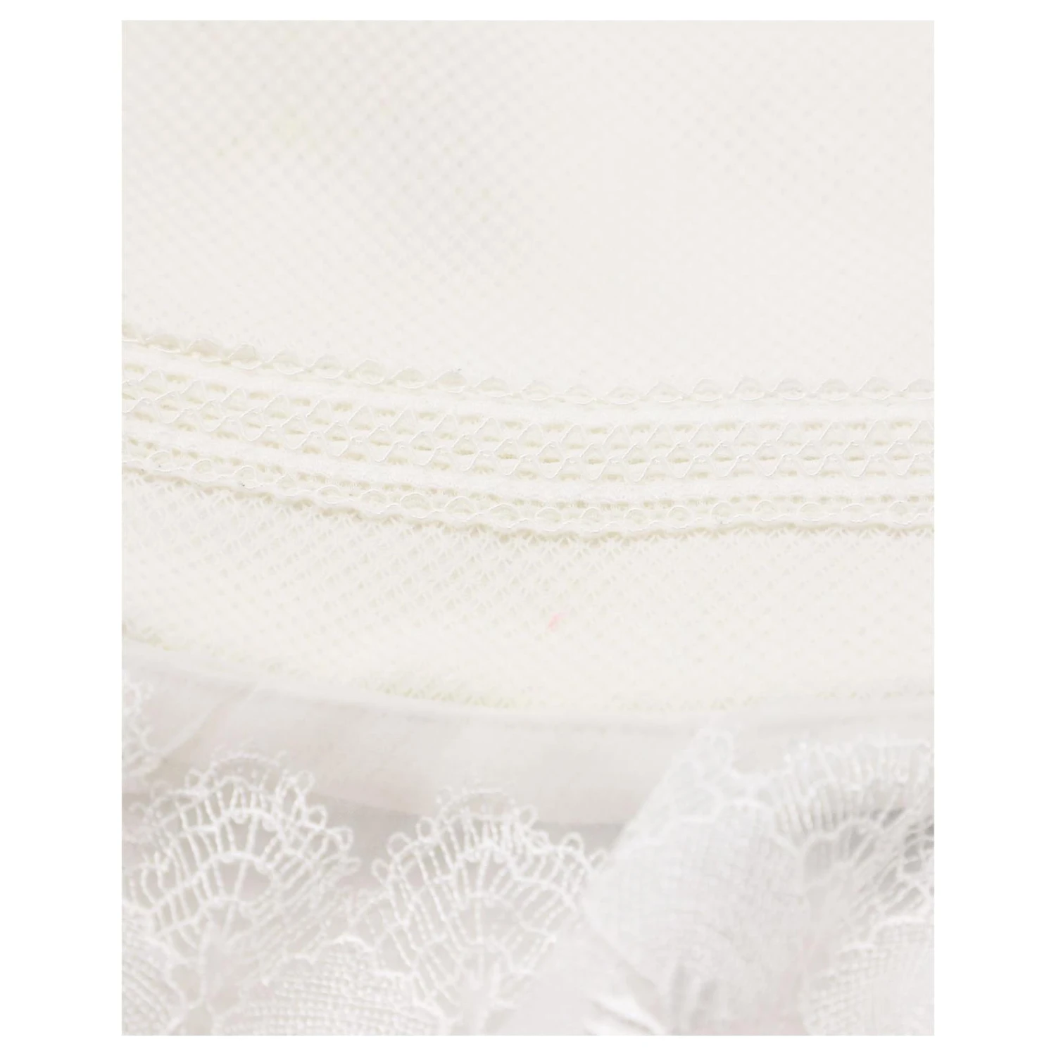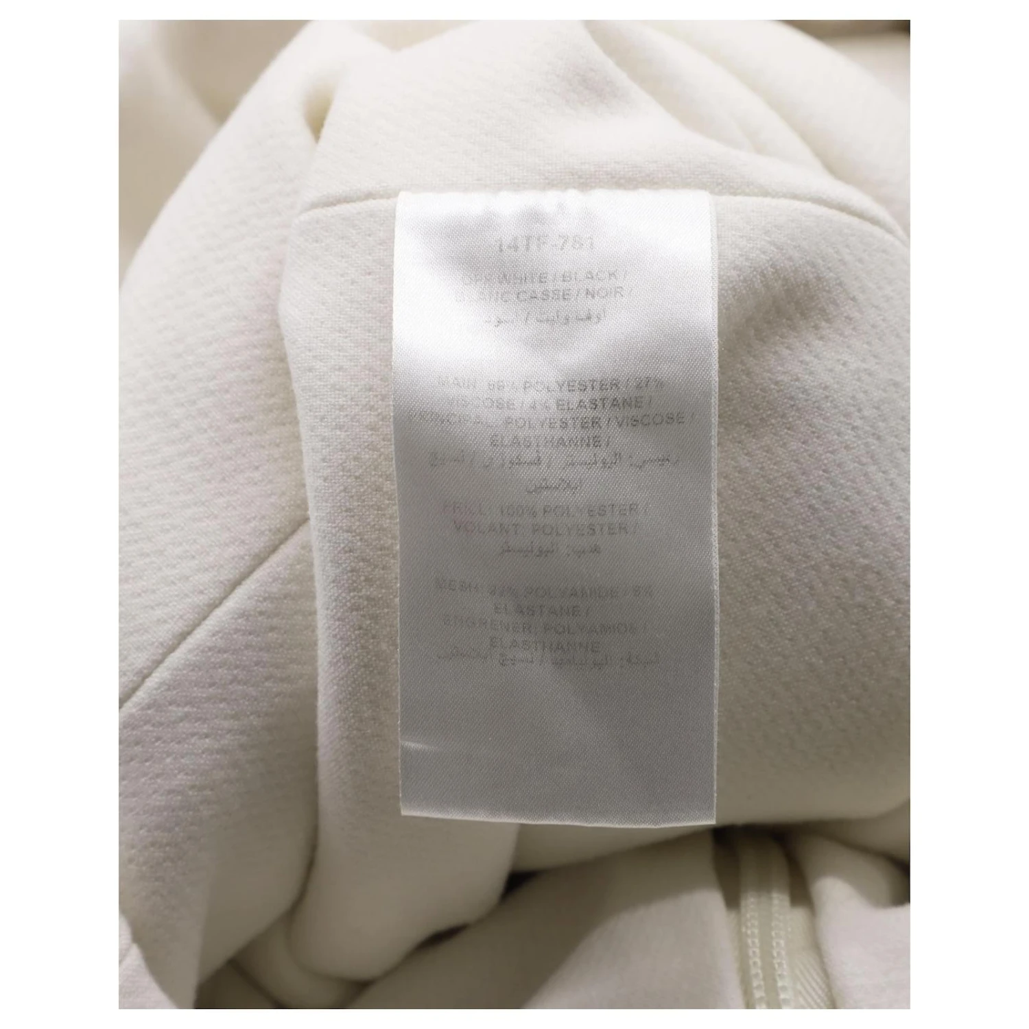 Cette robe duchesse par Three Floor est en polyester blanc cassé avec un col ras du cou, détails en maille transparente, panneaux de dentelle, Détails passepoilés noirs, et une fermeture éclair cachée.