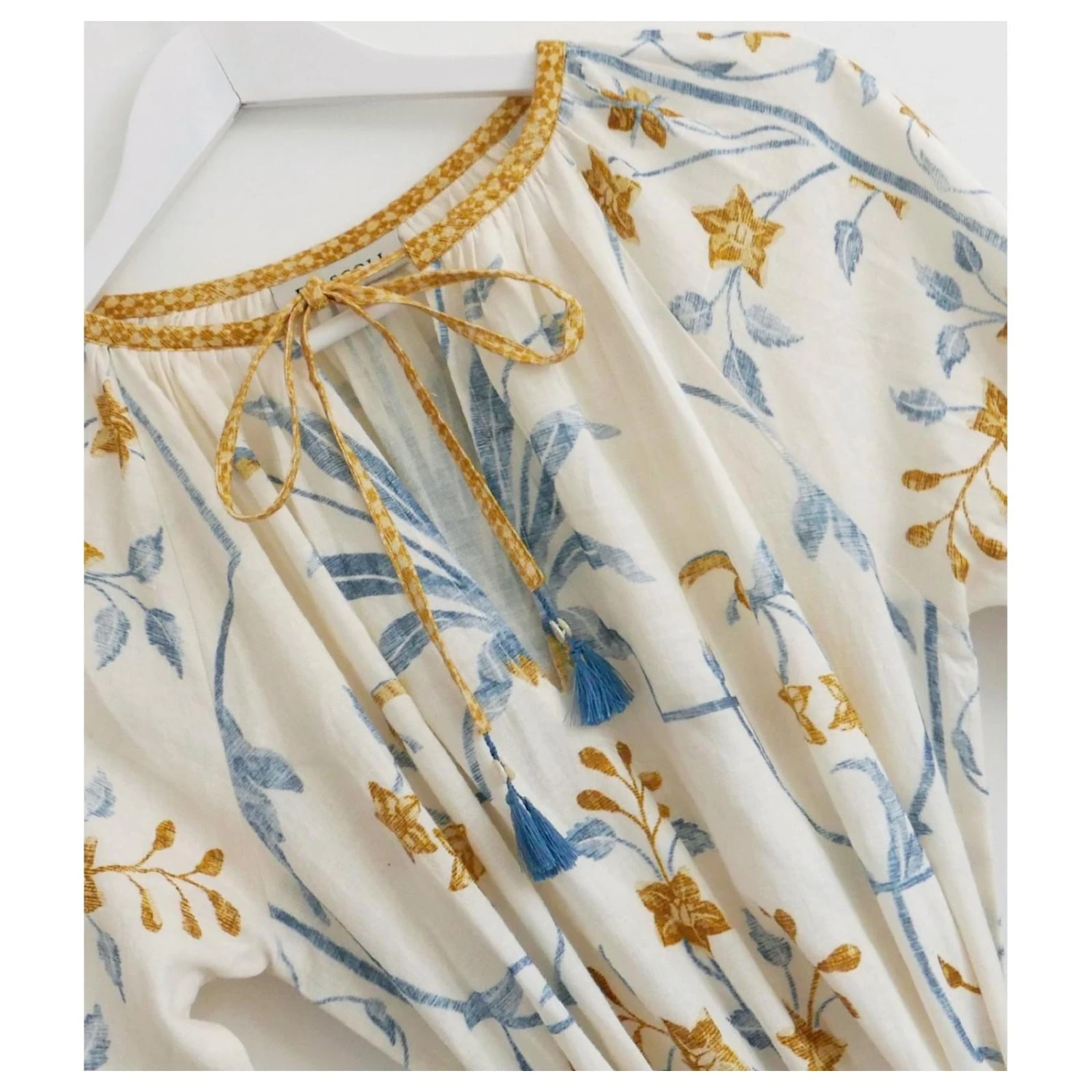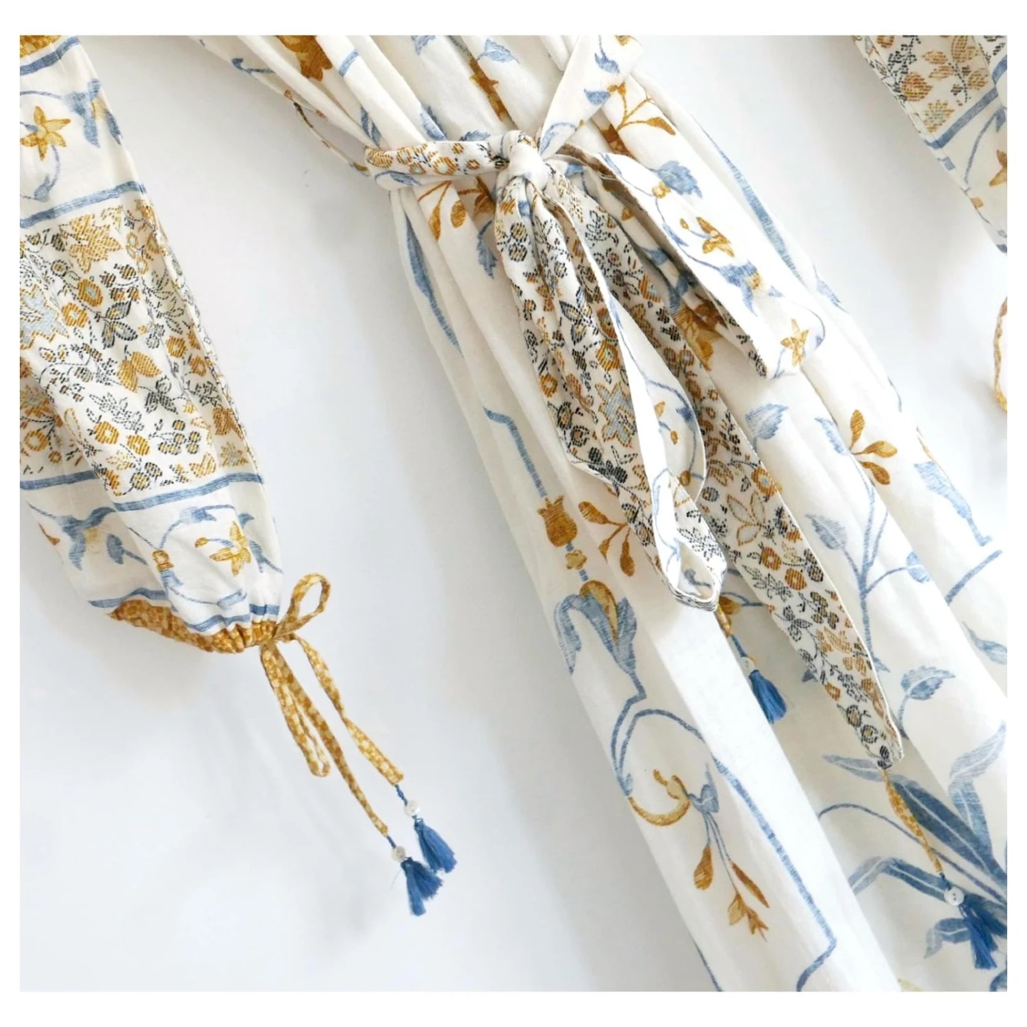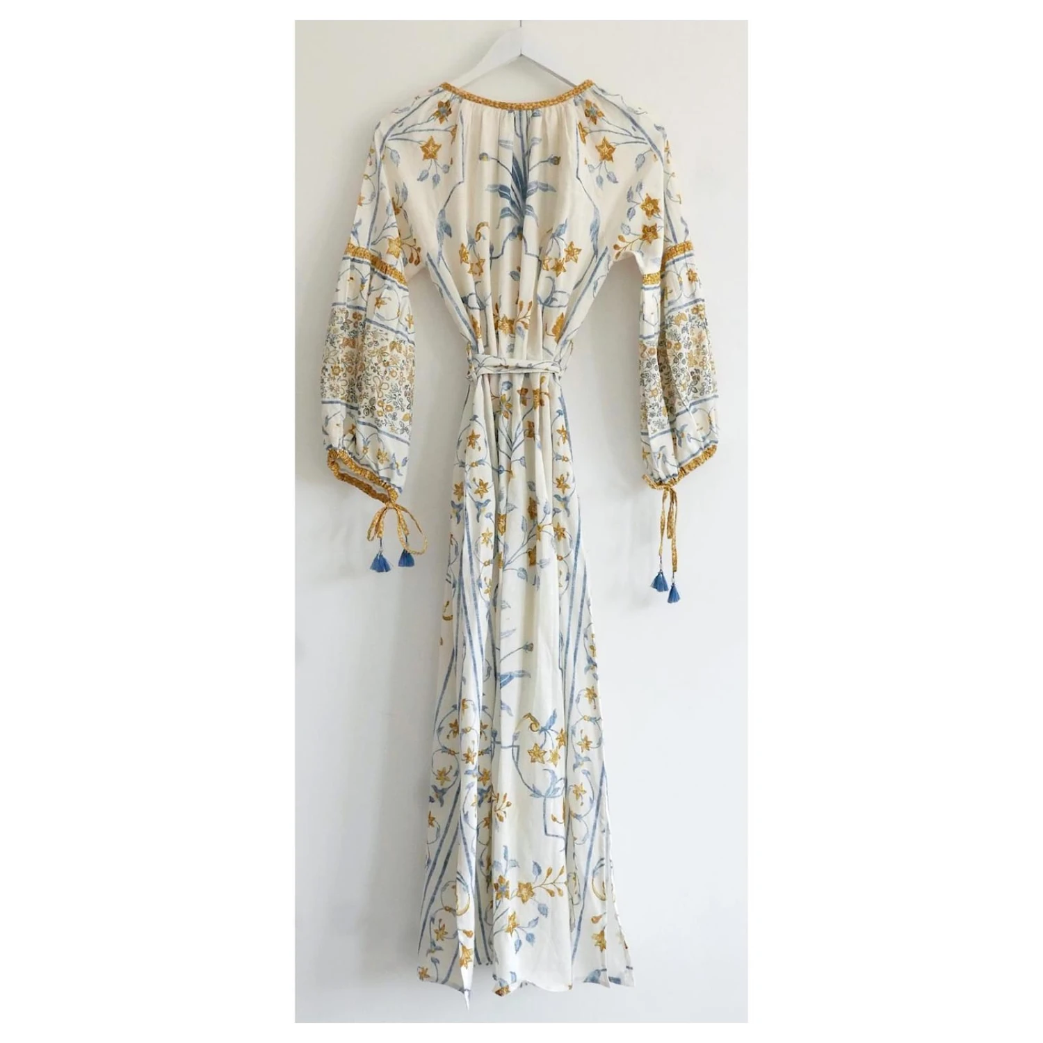 Belle robe longue D’Ascoli Aisha. non porté. Fabriqué à partir de khadi de coton doux avec un superbe imprimé floral à l’italienne, il a des manches longues bouffantes avec des poignets élastiqués, détails de goût et de bouton et ceinture à nouer. Taille M. Mesurer environ – buste 38”, hips 50″Et longueur 54”
