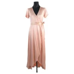 Robe portefeuille longue – Manches courtes – Longueur 140cm – Maison Père – Rose – Taille 36 – 95% Viscose 5% Laine – Très Bon État – Référence 509008