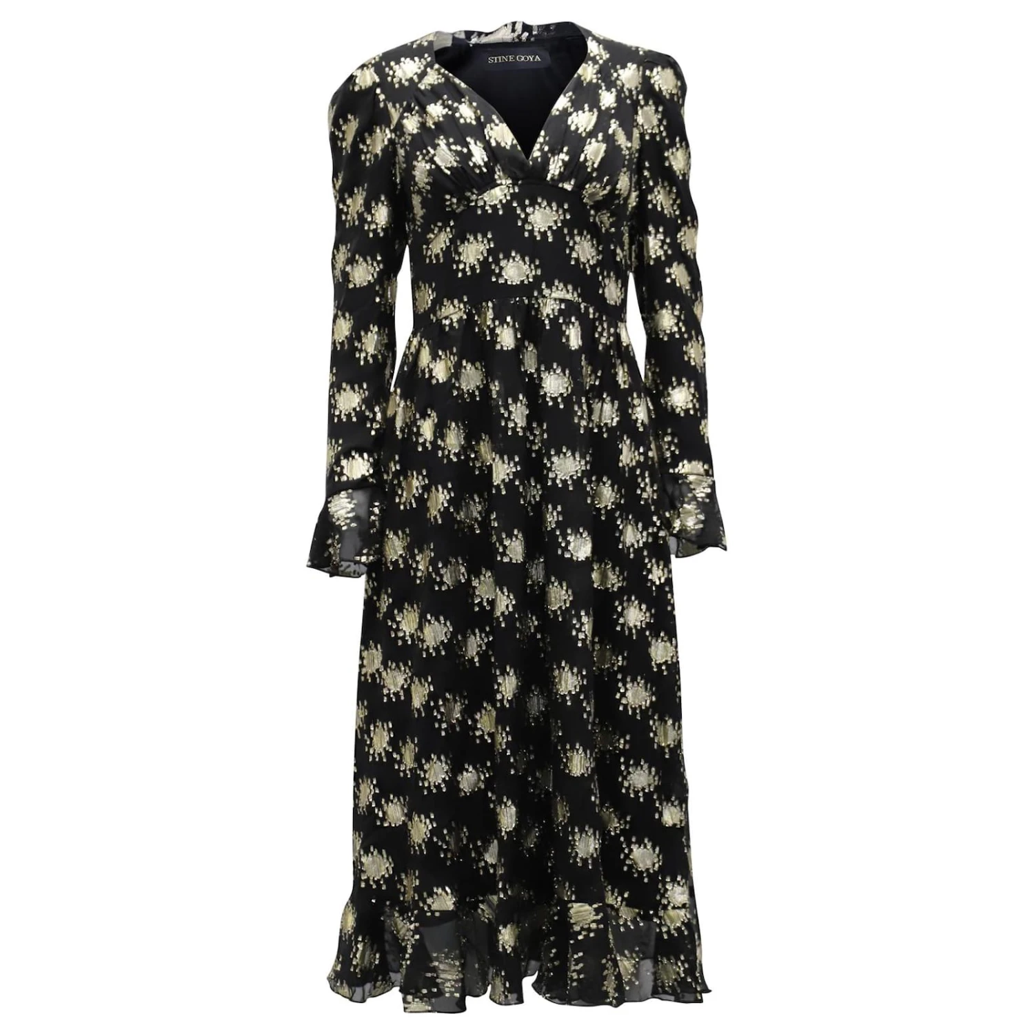 Stine Goya, basée à Copenhague, a commencé comme mannequin et rédactrice de mode avant de se tourner vers ses propres créations.. Inspiré du monde de l’art, elle est connue pour ses pièces faciles à porter comme cette robe à col en V avec des volants et un imprimé d’étoiles sur toute la surface.