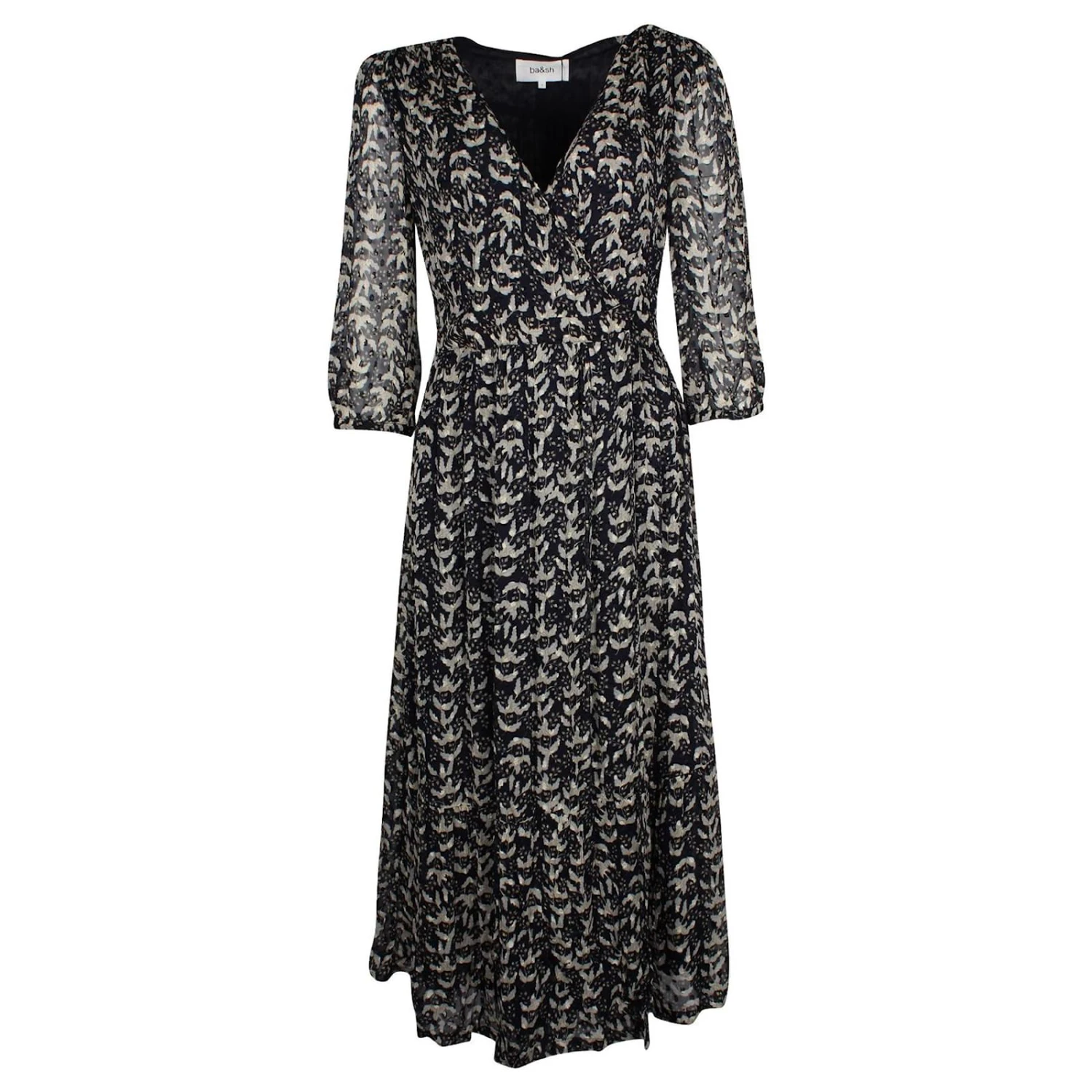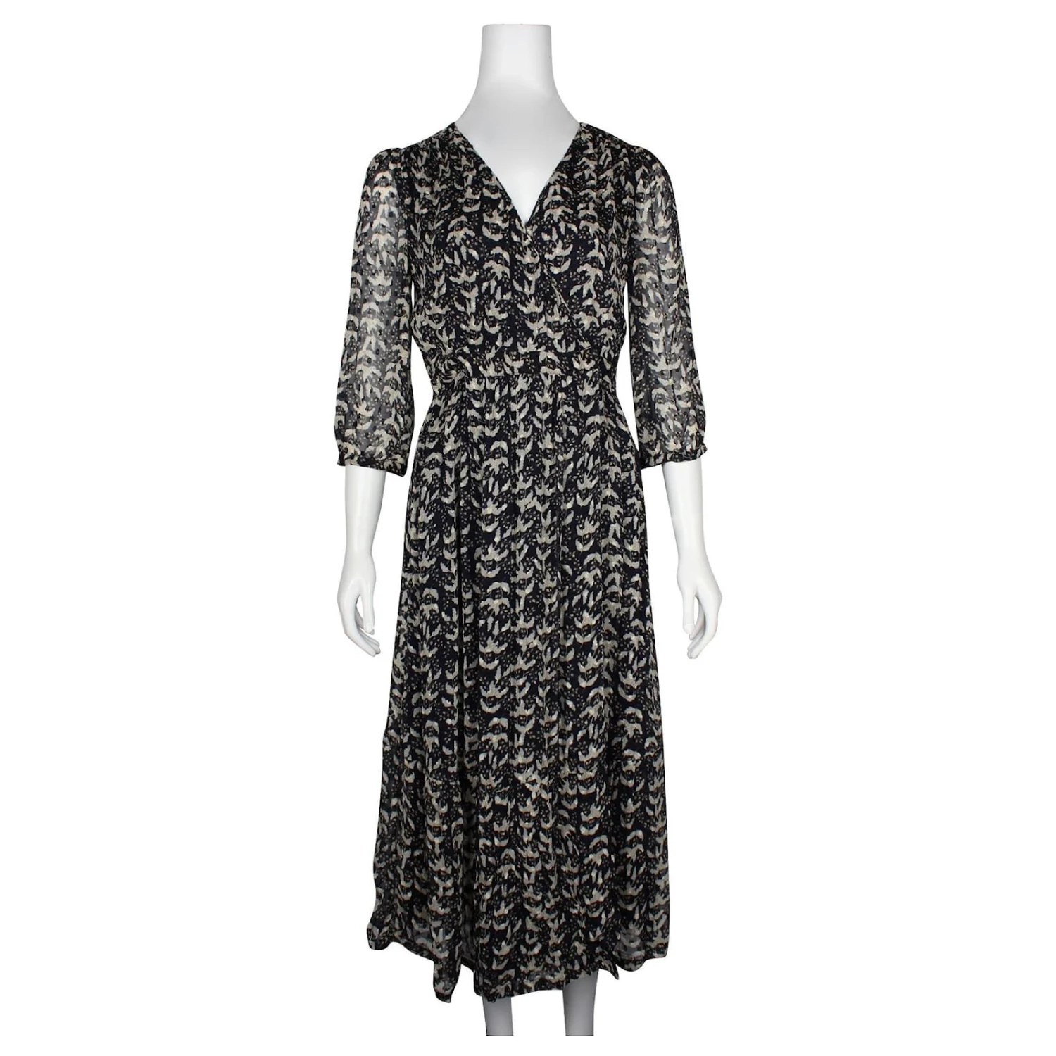 Robe mi-longue cache-coeur imprimée bleu marine Ba Sh