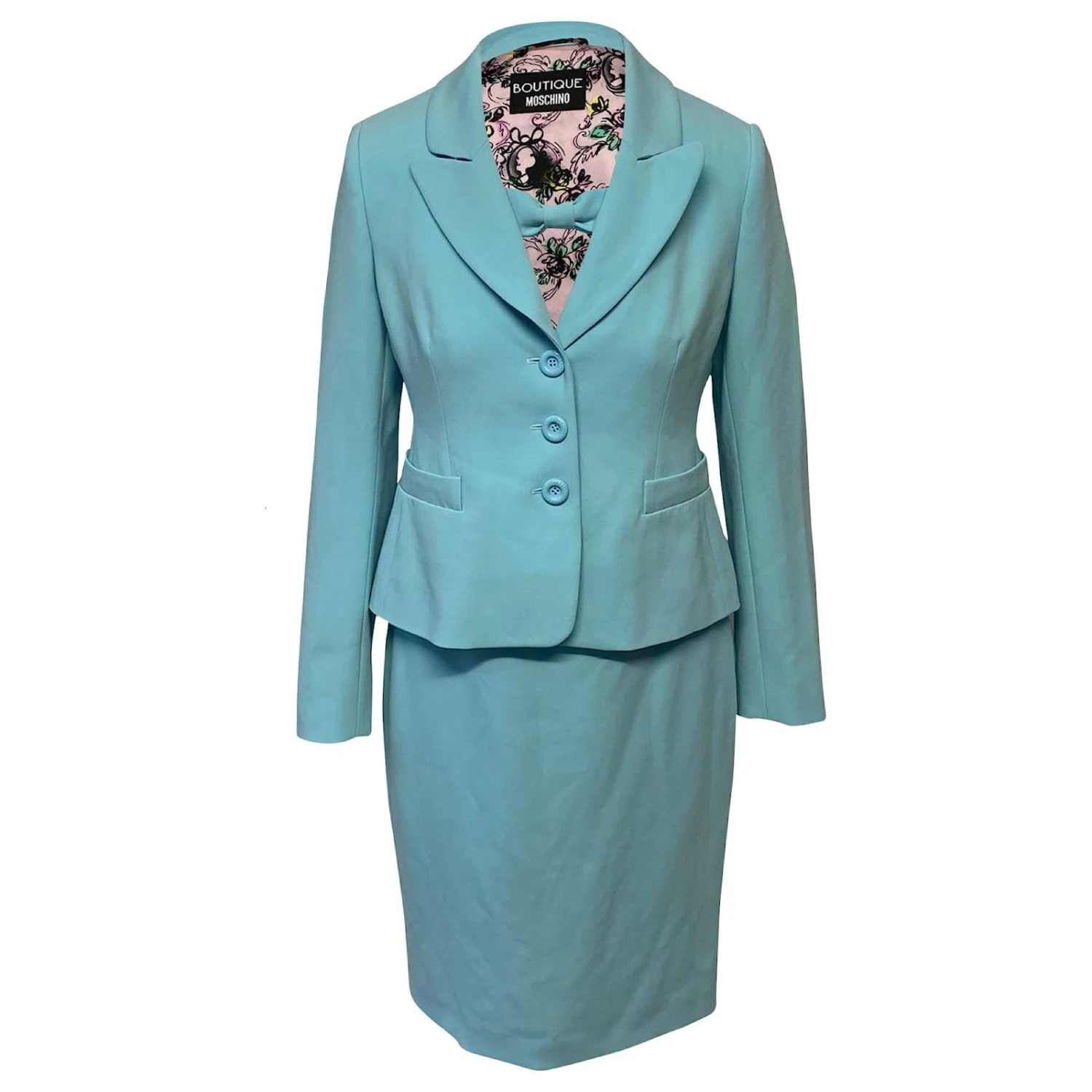 Égayez vos tenues de travail avec cet ensemble blazer et robe de la Boutique Moschino. Coupé dans des matières synthétiques, l’ensemble est disponible dans une couleur bleu pastel qui ne manquera pas d’attirer les regards. La robe a un design distinctif en forme de nœud et une découpe à l’encolure, cintrée à la taille pour une silhouette flatteuse. Associez-la à la veste droite assortie pour un look business chic.