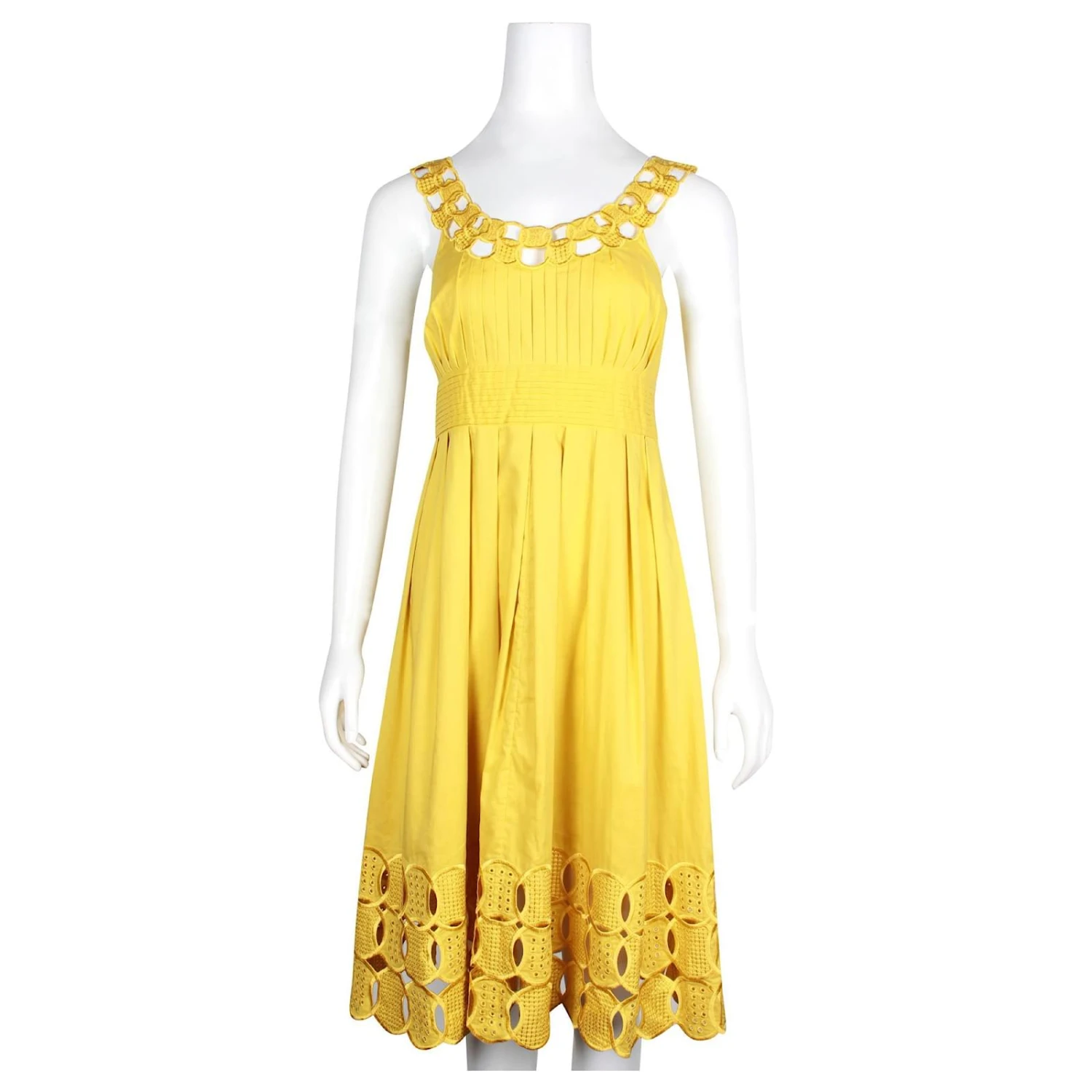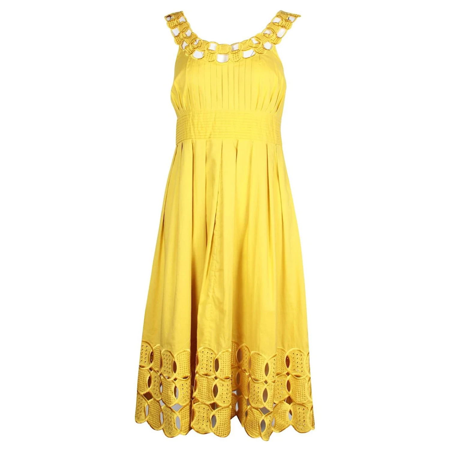 Robe plissée en coton avec détails brodés sur le haut et l’ourlet, avec un design à col rond. Parfait pour les occasions formelles et décontractées. In excellent condition. made in china