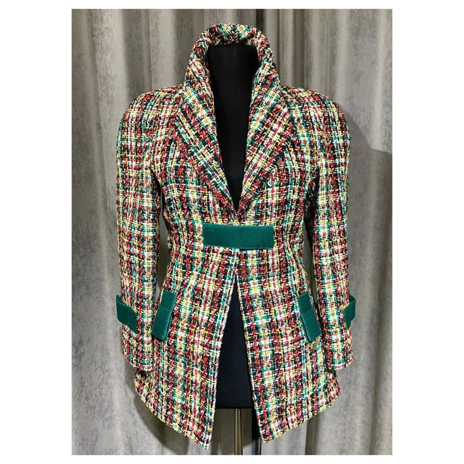 Costume en tweed de piste (veste et robe) A partir de 2017 Collection printemps par Karl Lagerfeld, Regardez # 15 depuis Catwalk. Tweed lesage le plus recherché. Prix de détail de la robe 6,500$, de la veste 8,460$. Marque de taille 34fr (conviendrait également 36fr). Le costume est dans l’état d’une chose neuve.