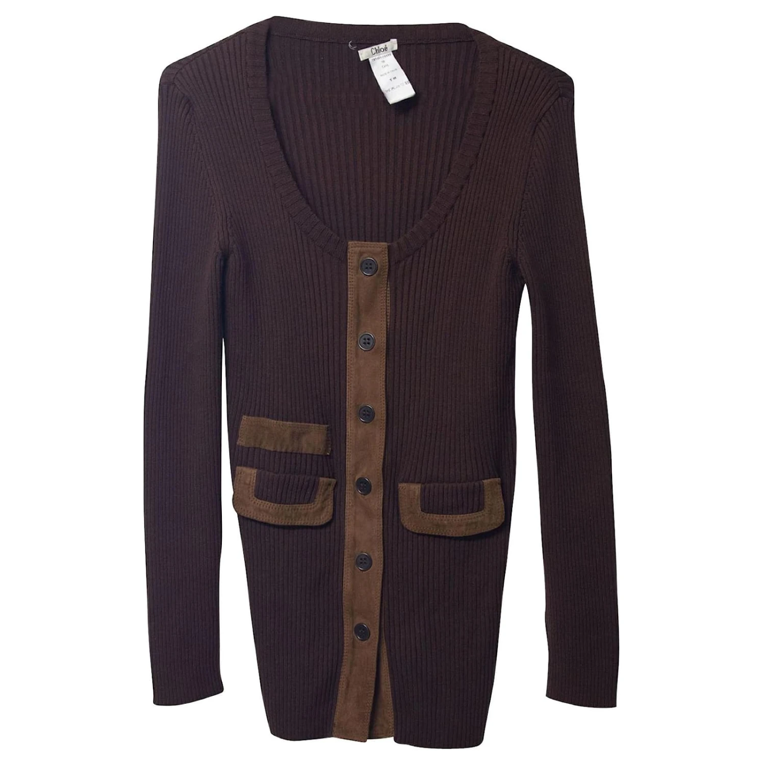 Chloé met à jour ce cardigan avec une touche de couture subtile – les boutons avec des poches avant. La conception longue est en tricot côtelé à partir de laine de mouton mérinos qui est doublée d’un panneau de boutons en daim et enveloppe le corps de manière fluide.