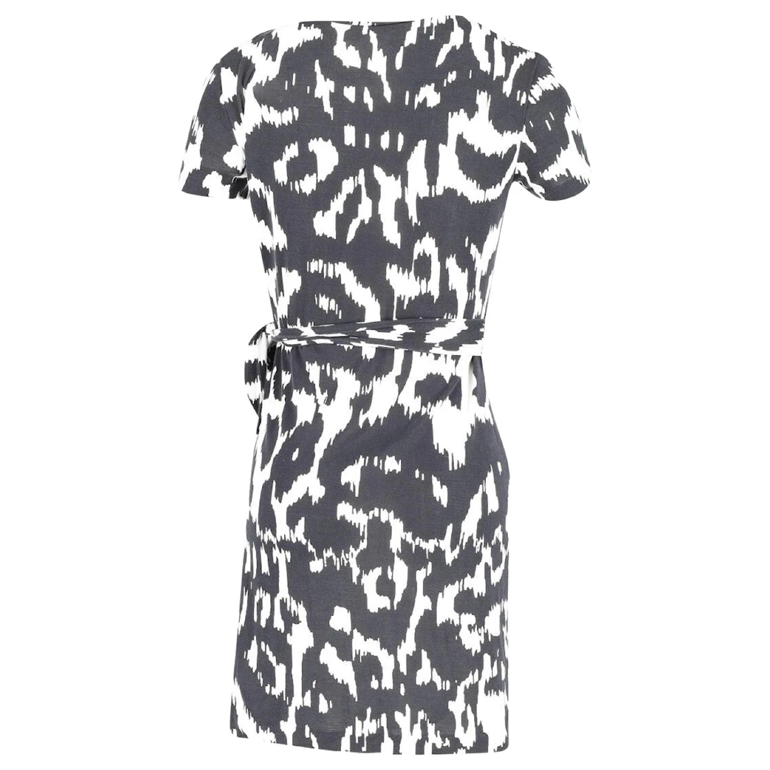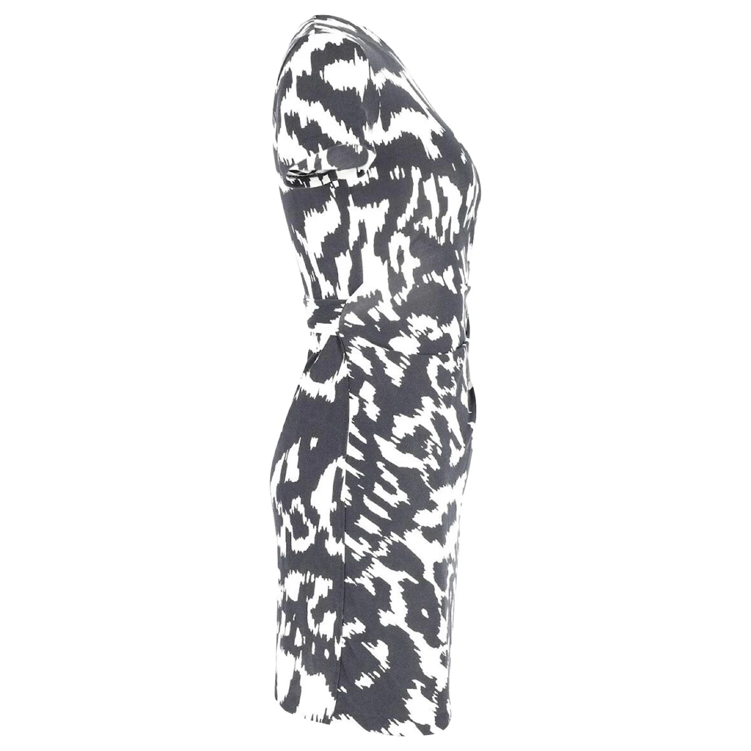 Cette robe de luxe de Diane Von Furstenberg a été confectionnée en soie fine. Il arbore un imprimé léopard noir qui ira bien avec des bottines noires et des bijoux minimalistes.. Une cravate sur le côté complète la mini robe chic.
