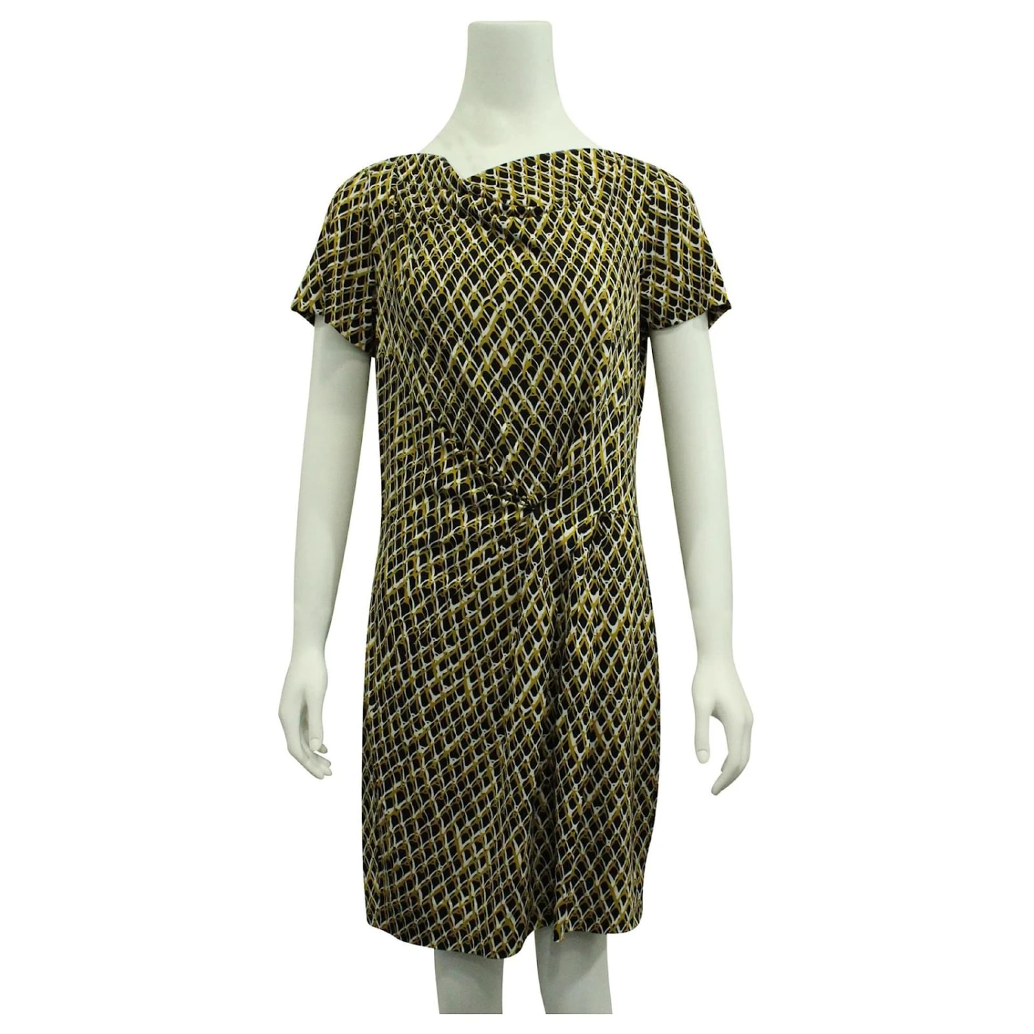Robe midi à manches courtes. black, motif or et blanc. En excellent état sans aucun signe d’usure. made in china
