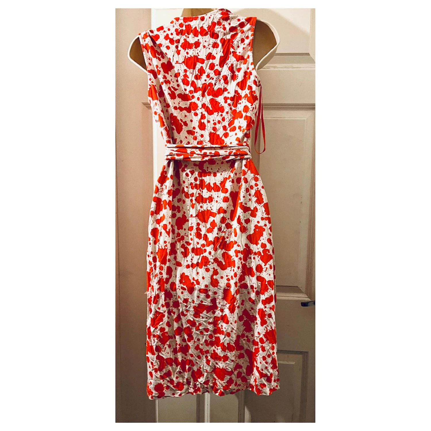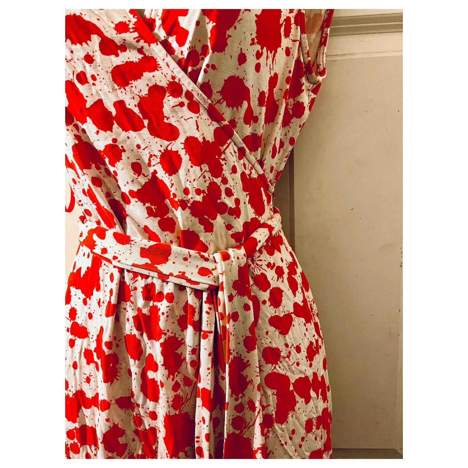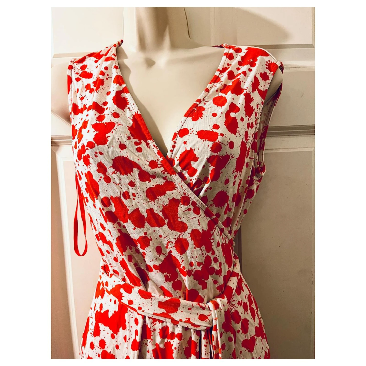 Superbe robe portefeuille Jude de chez DvF les couleurs sont un orange/motif rouge et blanc dans une conception de paintball, un motif vraiment rare, la robe est de la ligne de réédition Vintage, où DvF a réédité certains de ses designs les plus populaires. La taille est un US 6 mais en raison d’être une robe portefeuille, il peut être ajusté d’une taille vers le haut ou vers le bas. Le matériau est en jersey de soie pure, il a un col en surplis et une ceinture à nouer à la taille. Seulement des traces minimes d’usure.