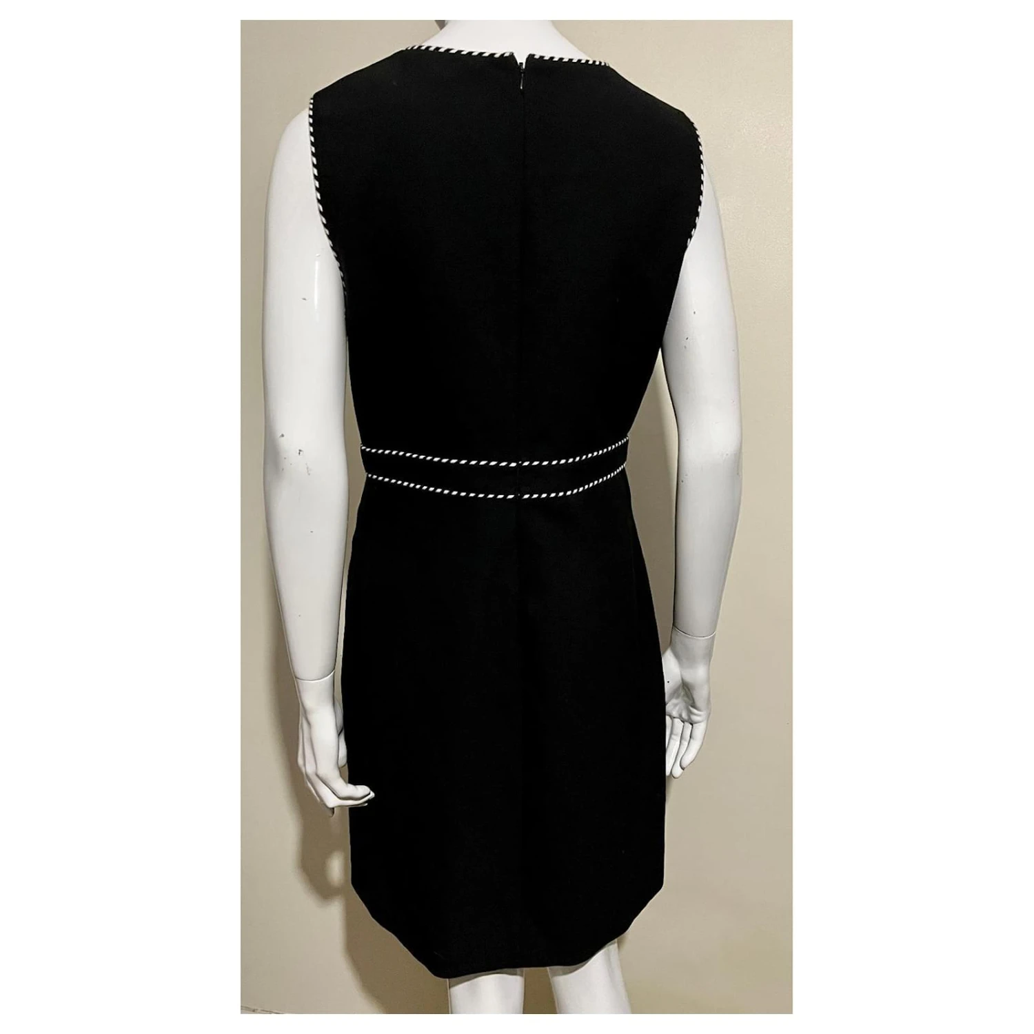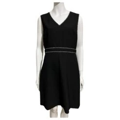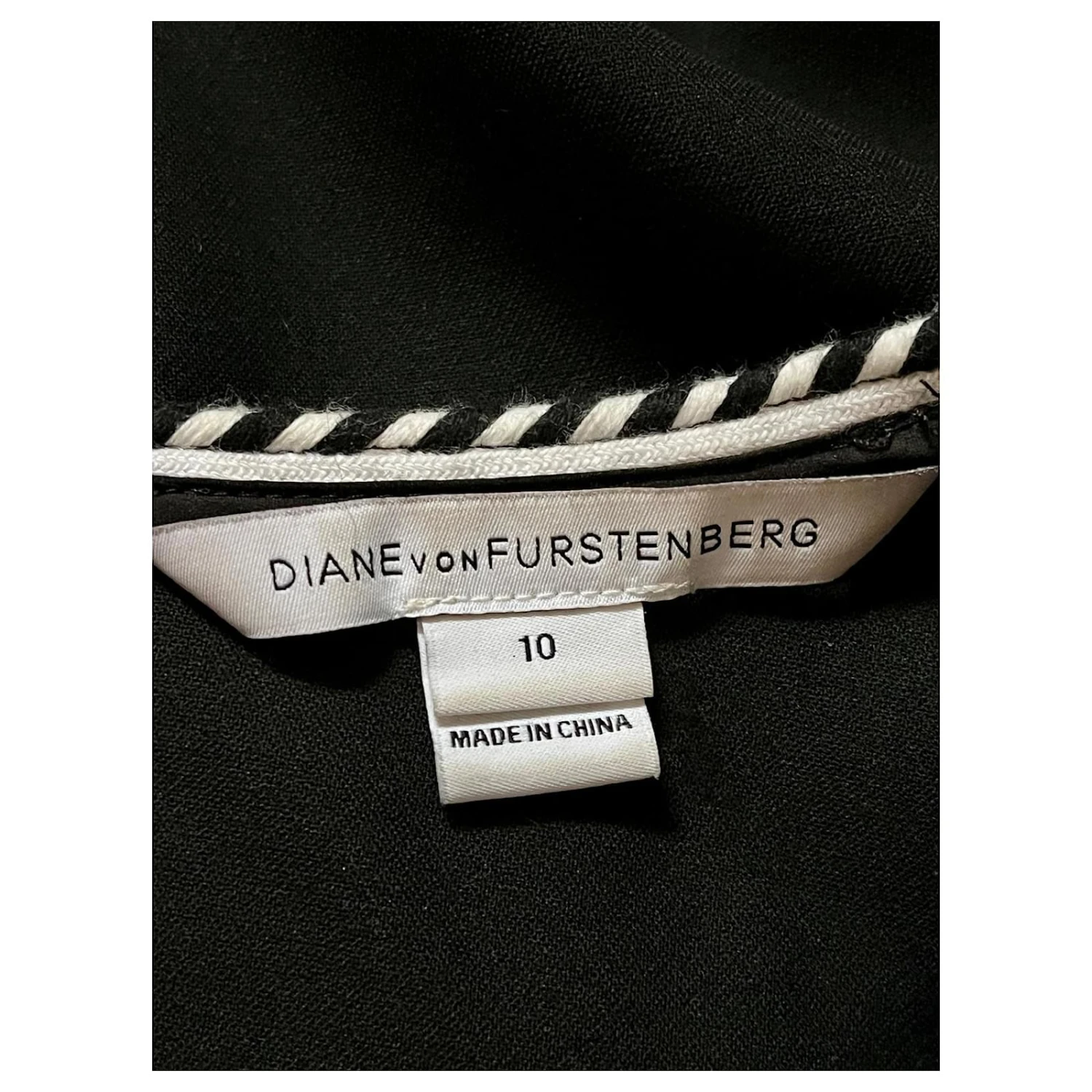 Diane von Furstenberg Robe Leelou en crêpe à bordure tressée.décolleté en V.sans manche; couverture complète des épaules.Couture à taille haute.Jupe trapèze. sans manche, passepoil rayé, poches latérales fendues, Fermeture à glissière dissimulée au dos.