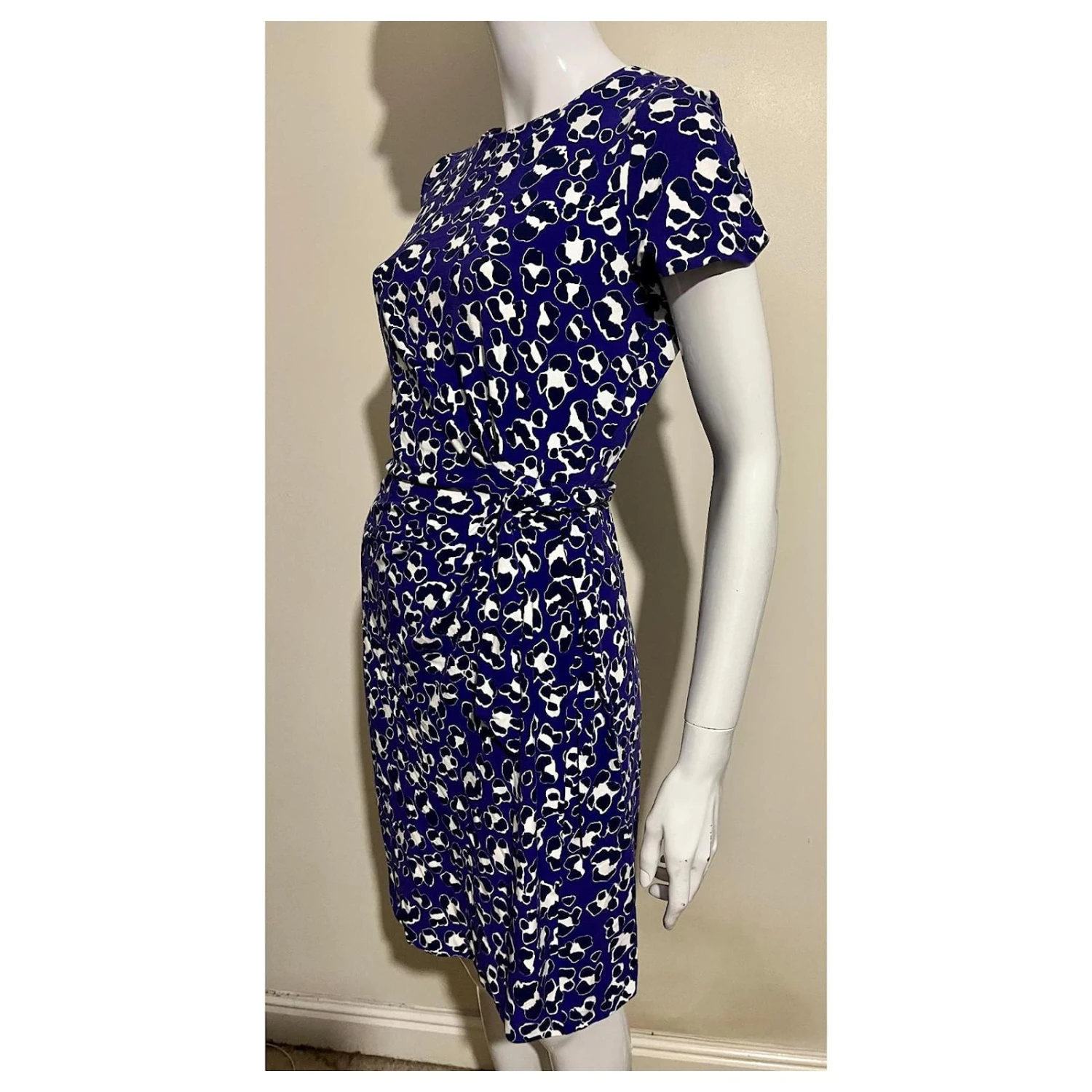 Le matériau est un jersey de viscose épais de DvF, en raison d’être une fausse robe portefeuille peut facilement être ajustée d’une taille vers le haut ou vers le bas.
