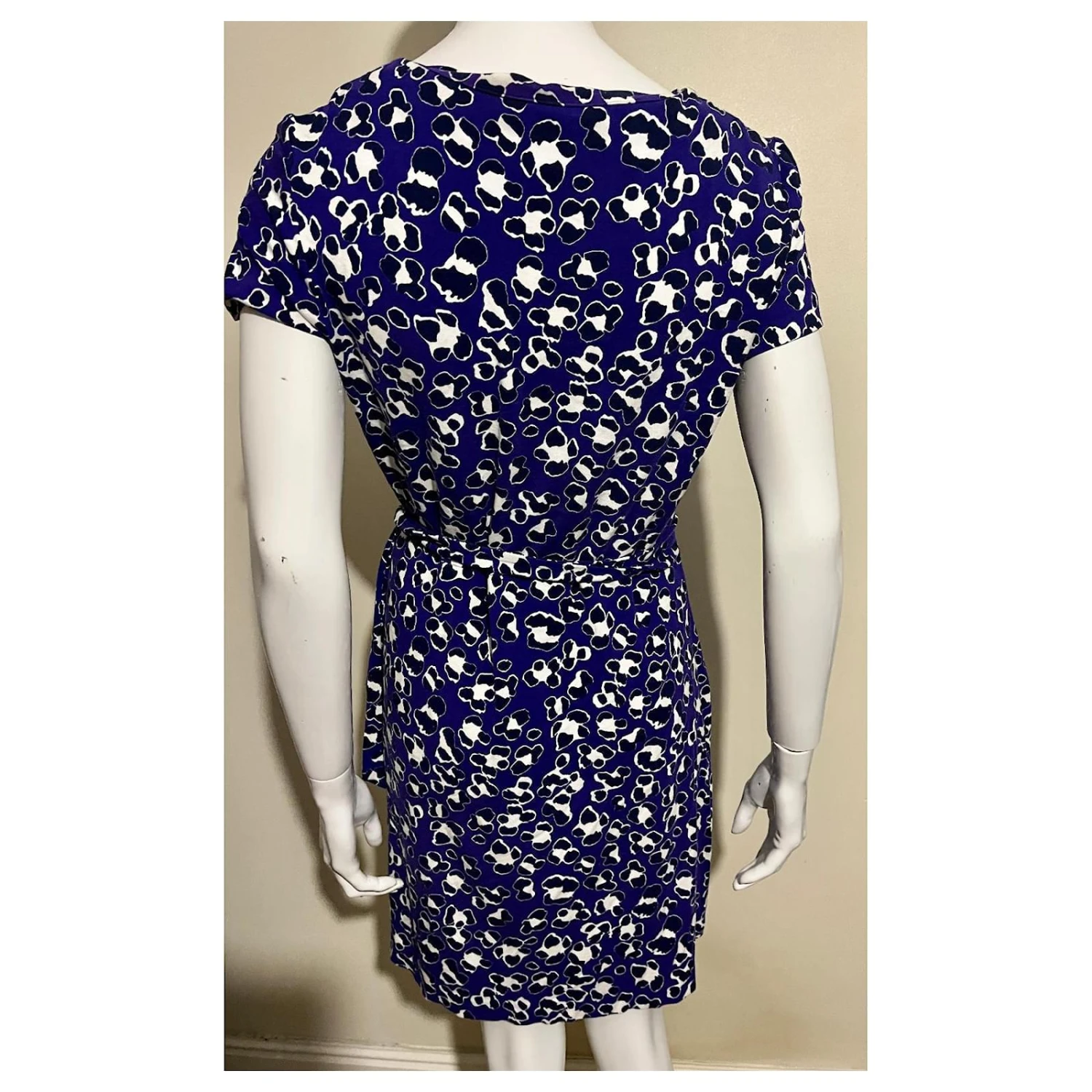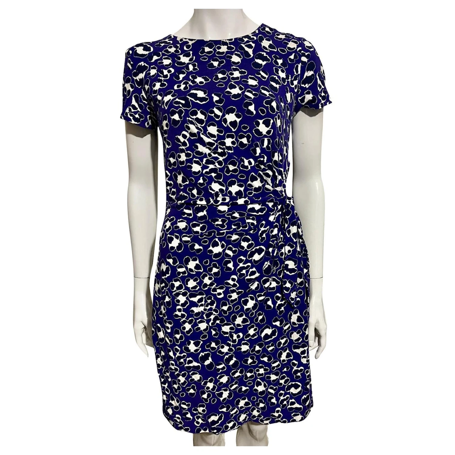Diane von Furstenberg Zoe fausse robe portefeuille à motifs, US 10 UK 14 le motif de couleur est violet, blanc et noir, lien à nouer à la taille