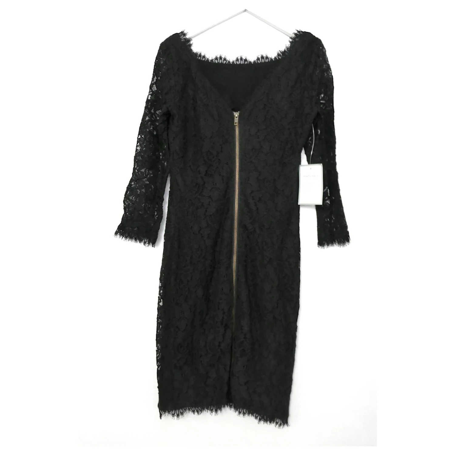 Robe de soirée chic Diane Von Furstenberg Zarita. acheté pour £278 et nouveau avec des balises. En dentelle florale noire avec doublure en jersey doux, il a des garnitures de cils délicats sur les bords, manches trois quarts transparentes et fermeture éclair dorée au dos. Taille US2/ROYAUME-UNI6/ Fr34 et s’adaptera à une taille plus grande. Mesure environ – buste 32”, taille 26”, hips 32″Et longueur 34.5”.
