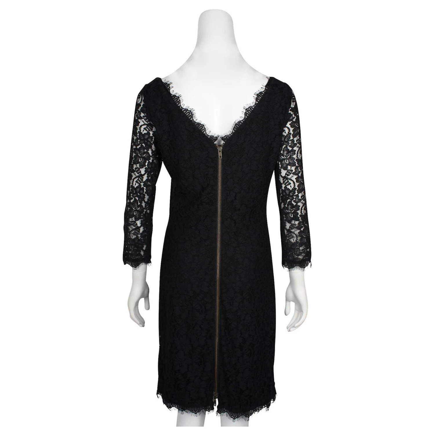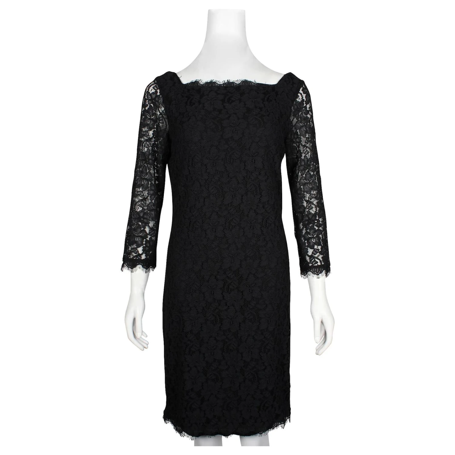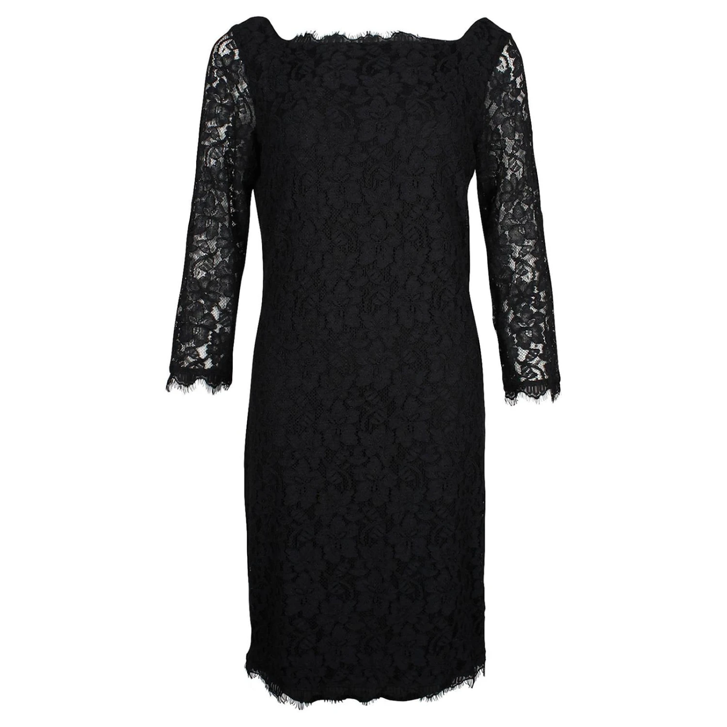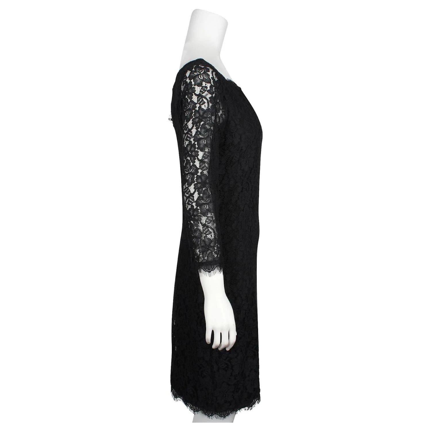 Diane Von Furstenberg Zarita – Robe mi-longue en dentelle noire avec col bateau
