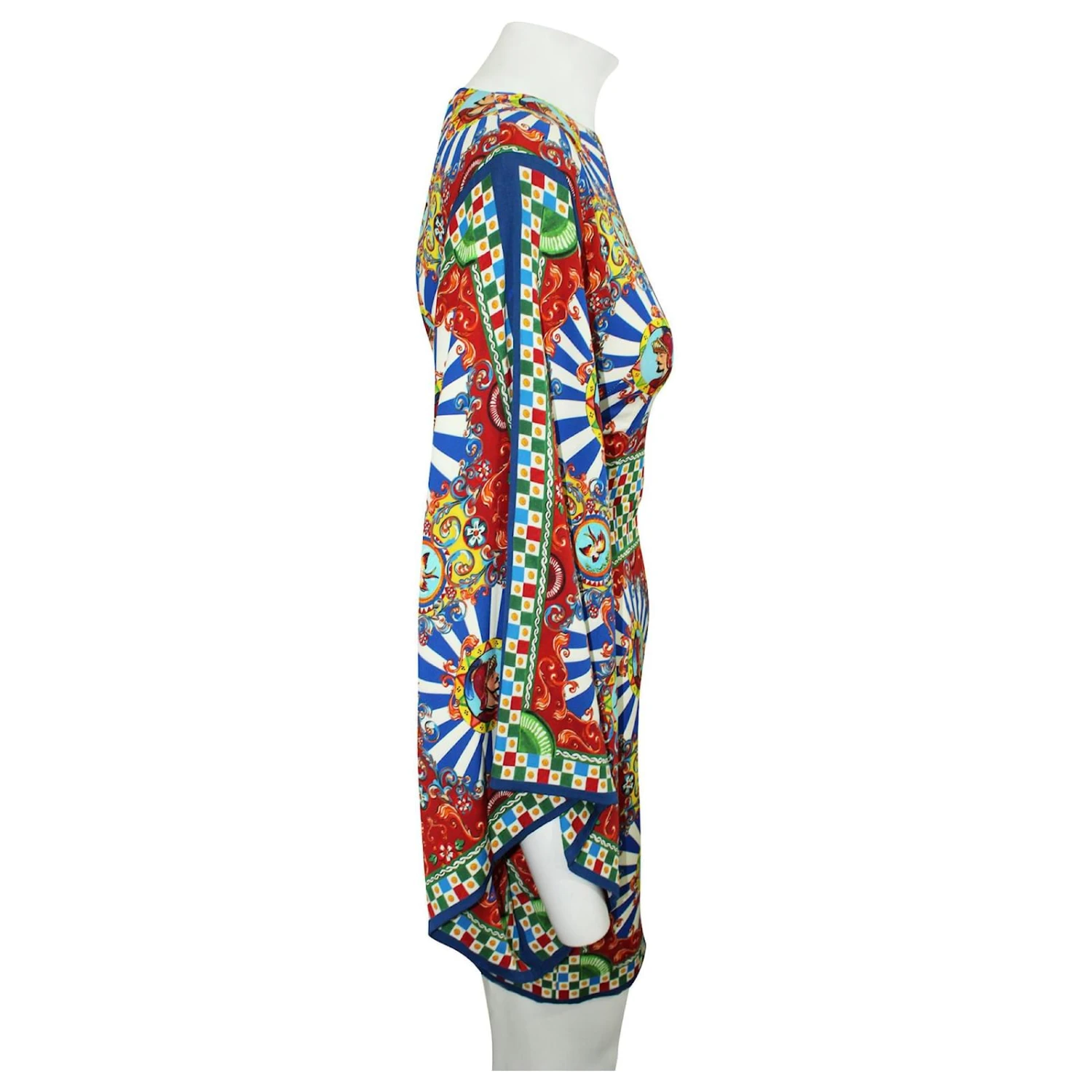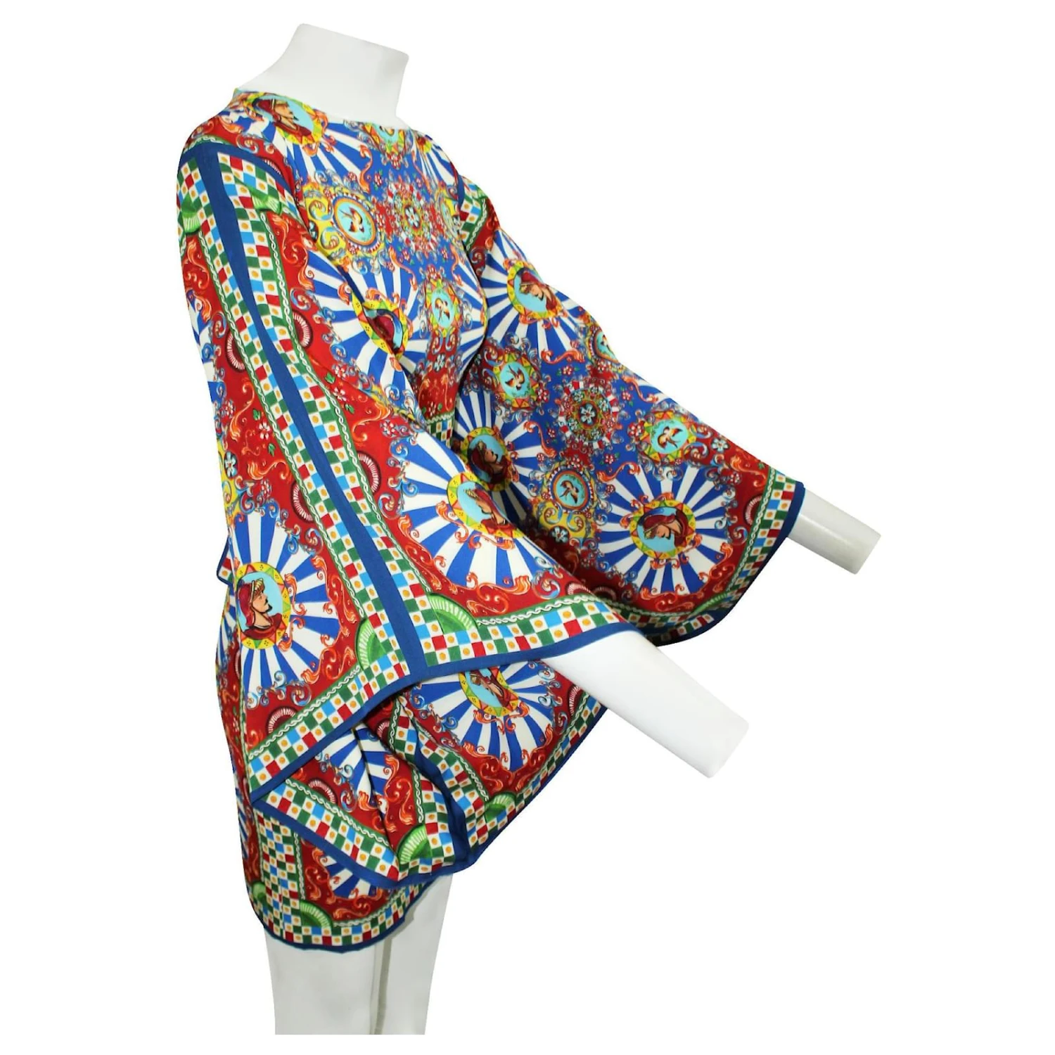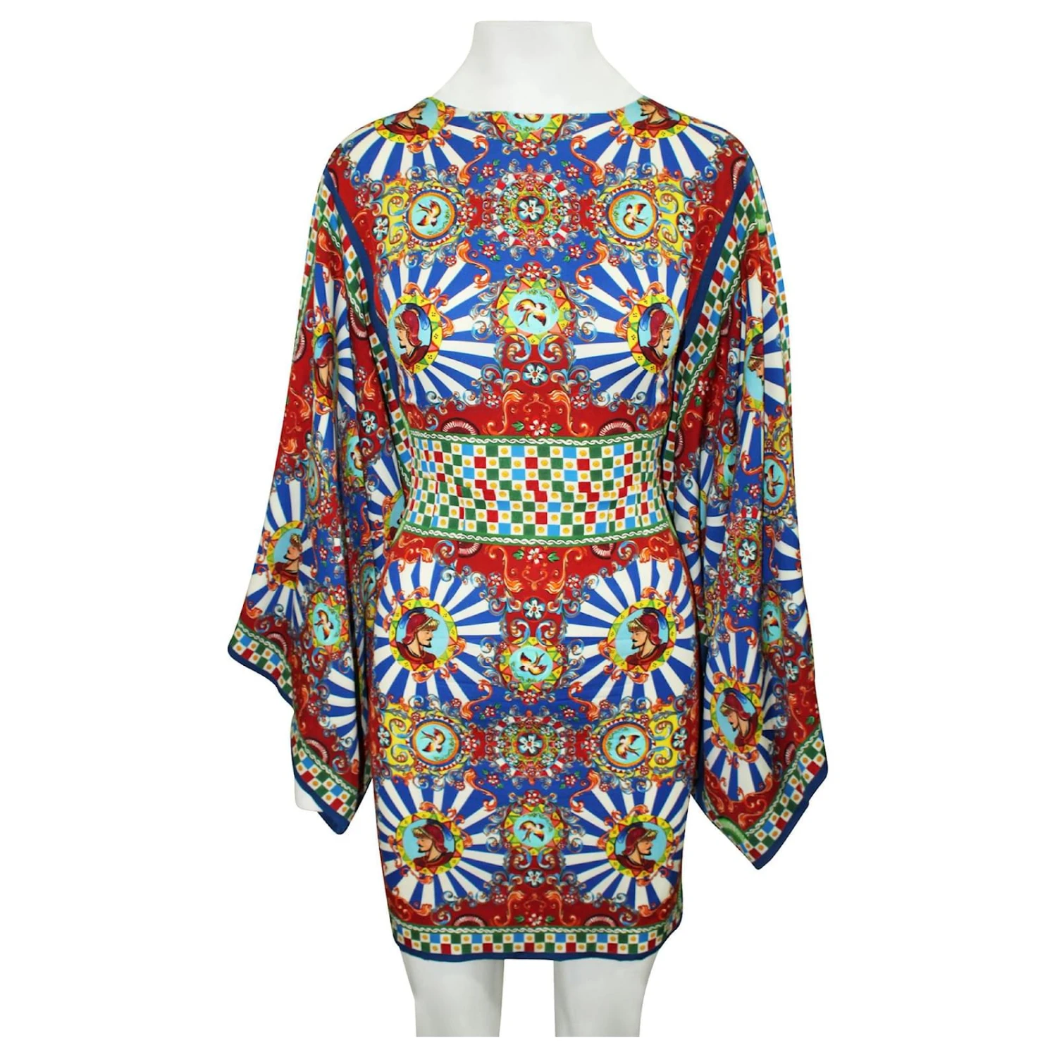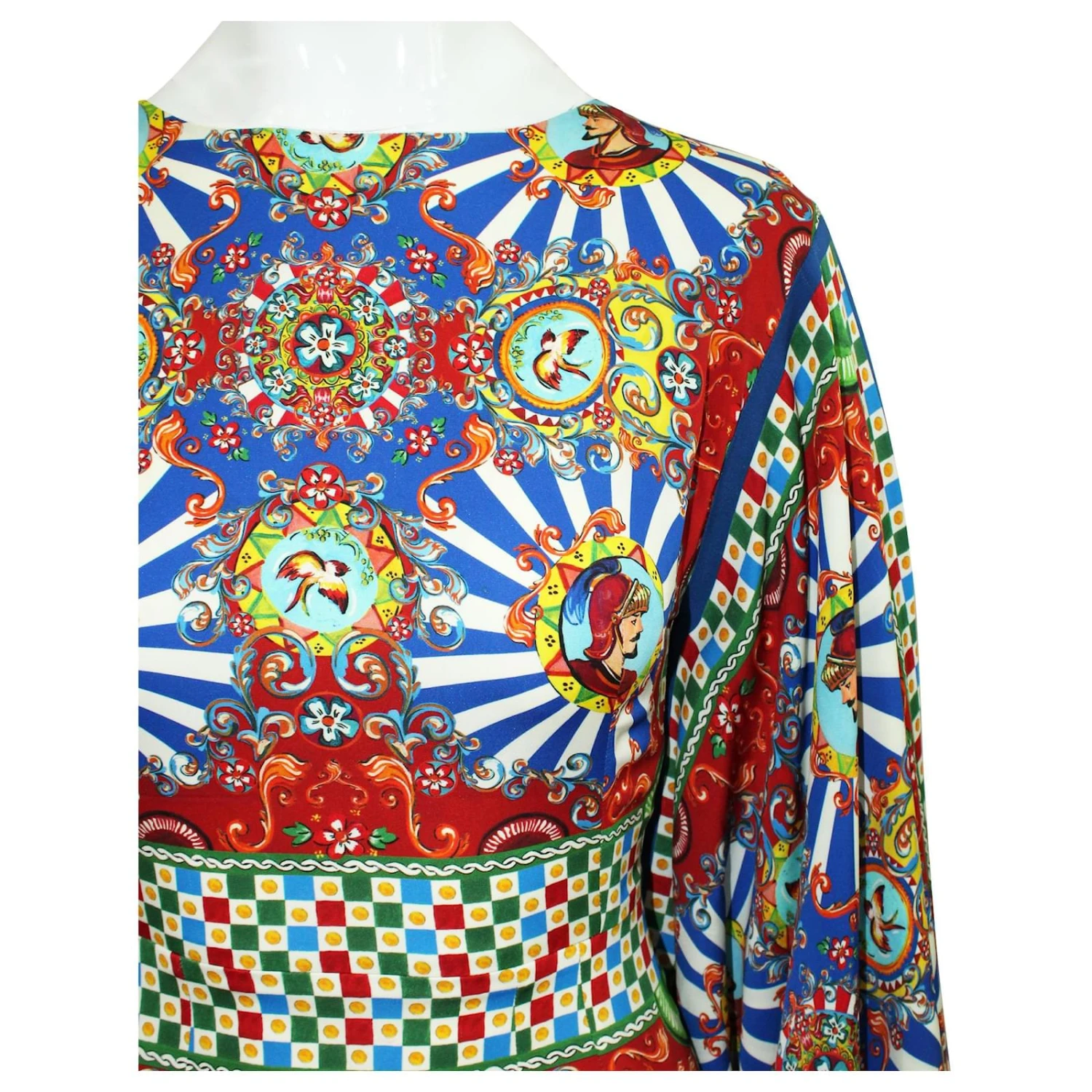 Dolce Gabbana Carretto Siciliano Robe imprimée à manches asymétriques