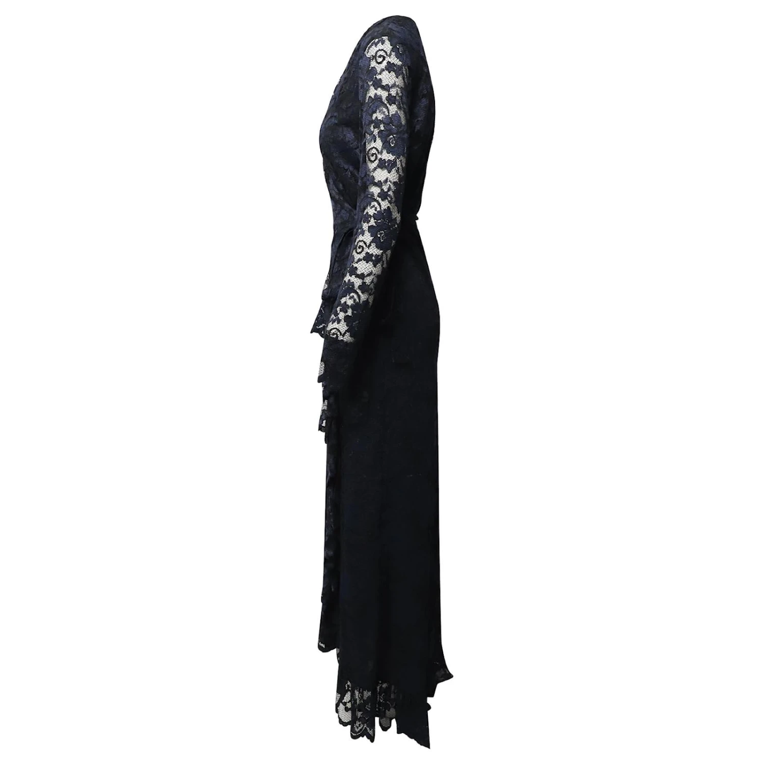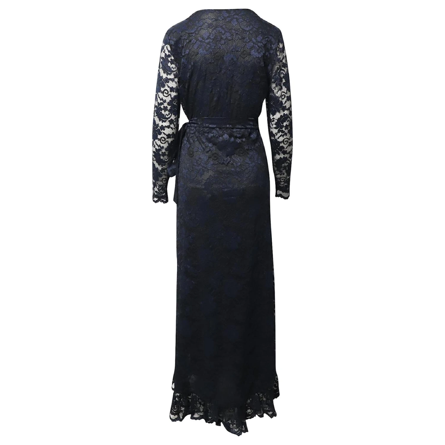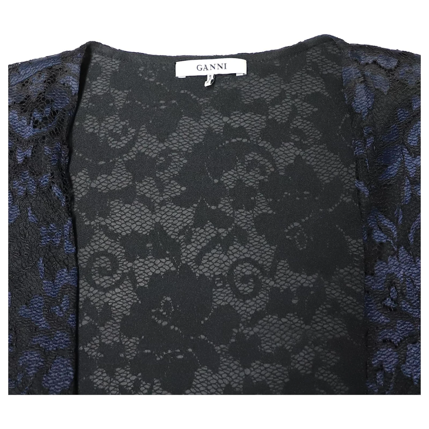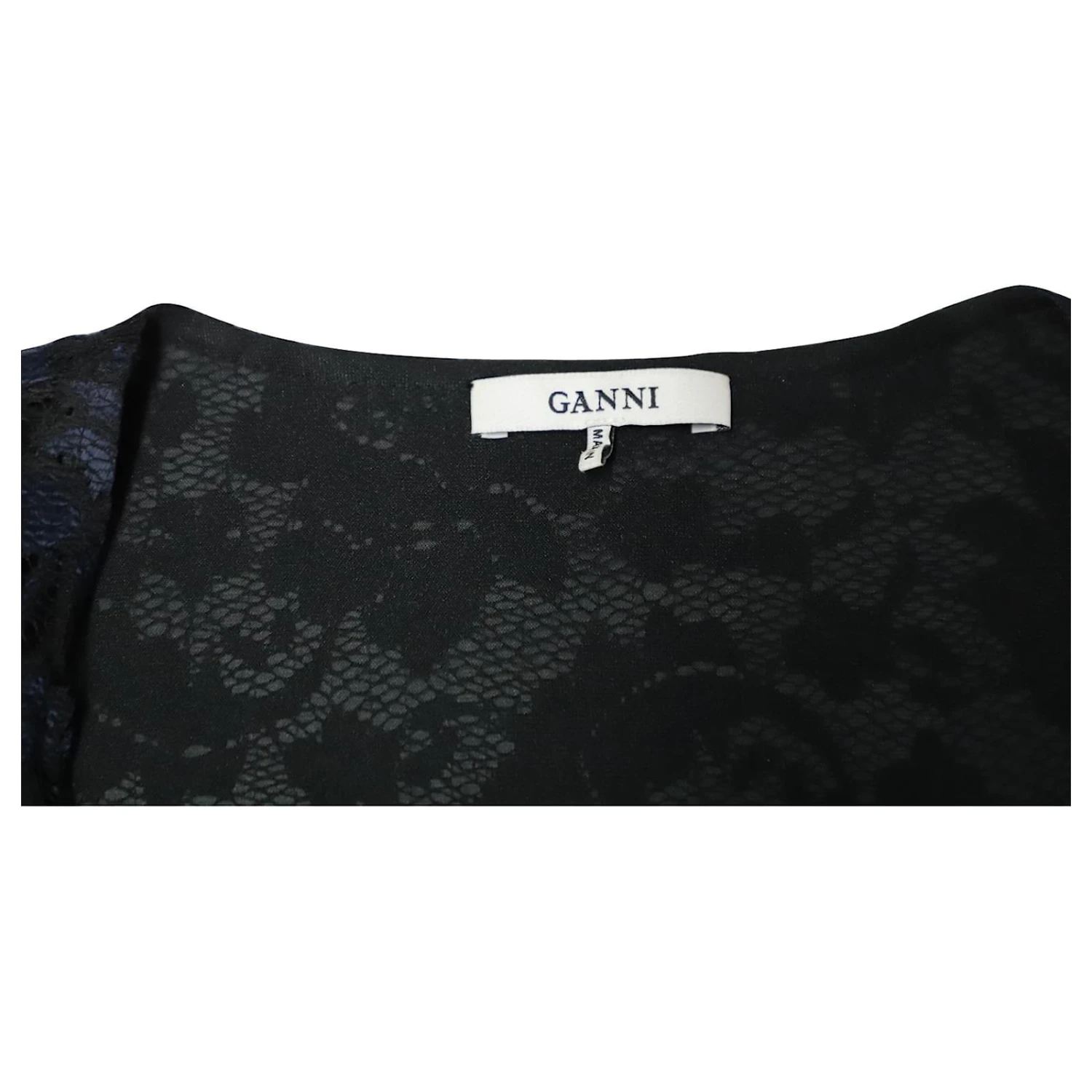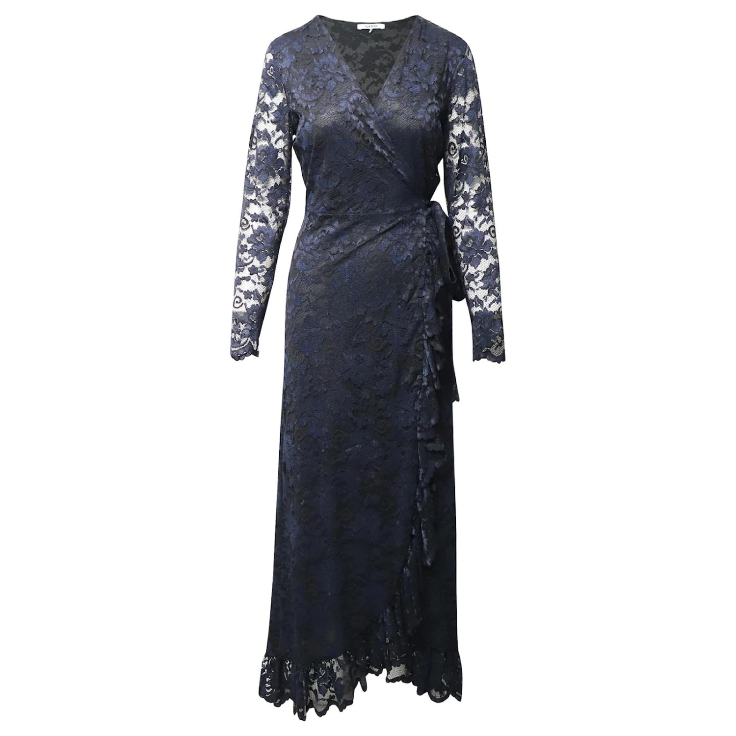 Ganni Flynn Robe portefeuille en dentelle à volants en polyamide bleu marine