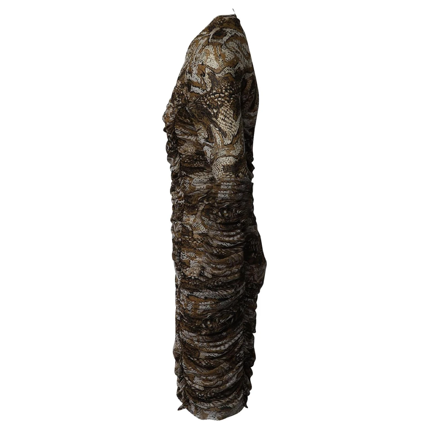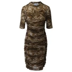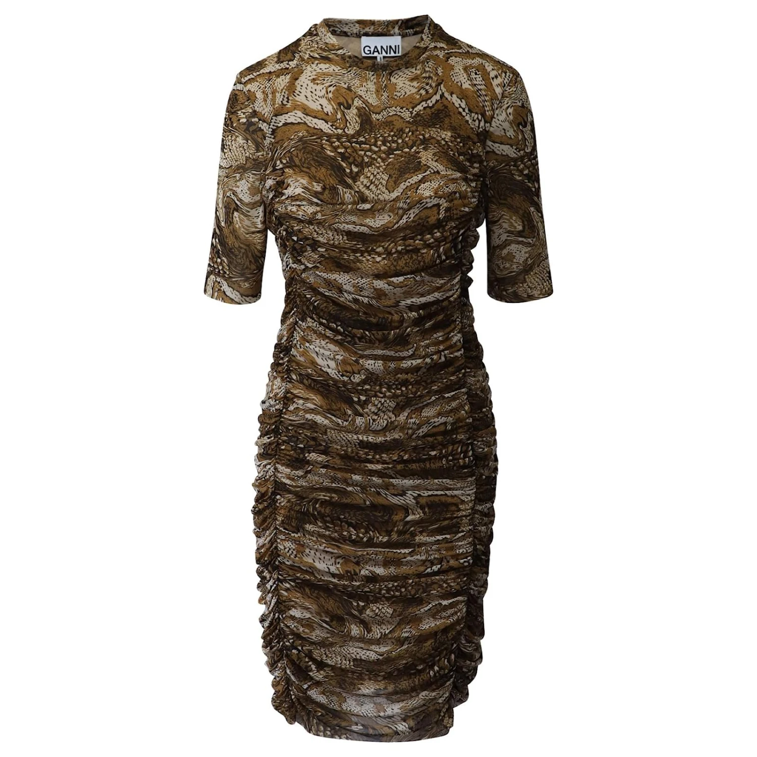 Unique, moderne et chic. Cette mini robe froncée de GANNI est une pièce remarquable dans la garde-robe de chaque femme. Fabriqué avec un col rond et des manches courtes, cette pièce majestueuse présente un imprimé graphique semblable à un serpent partout.