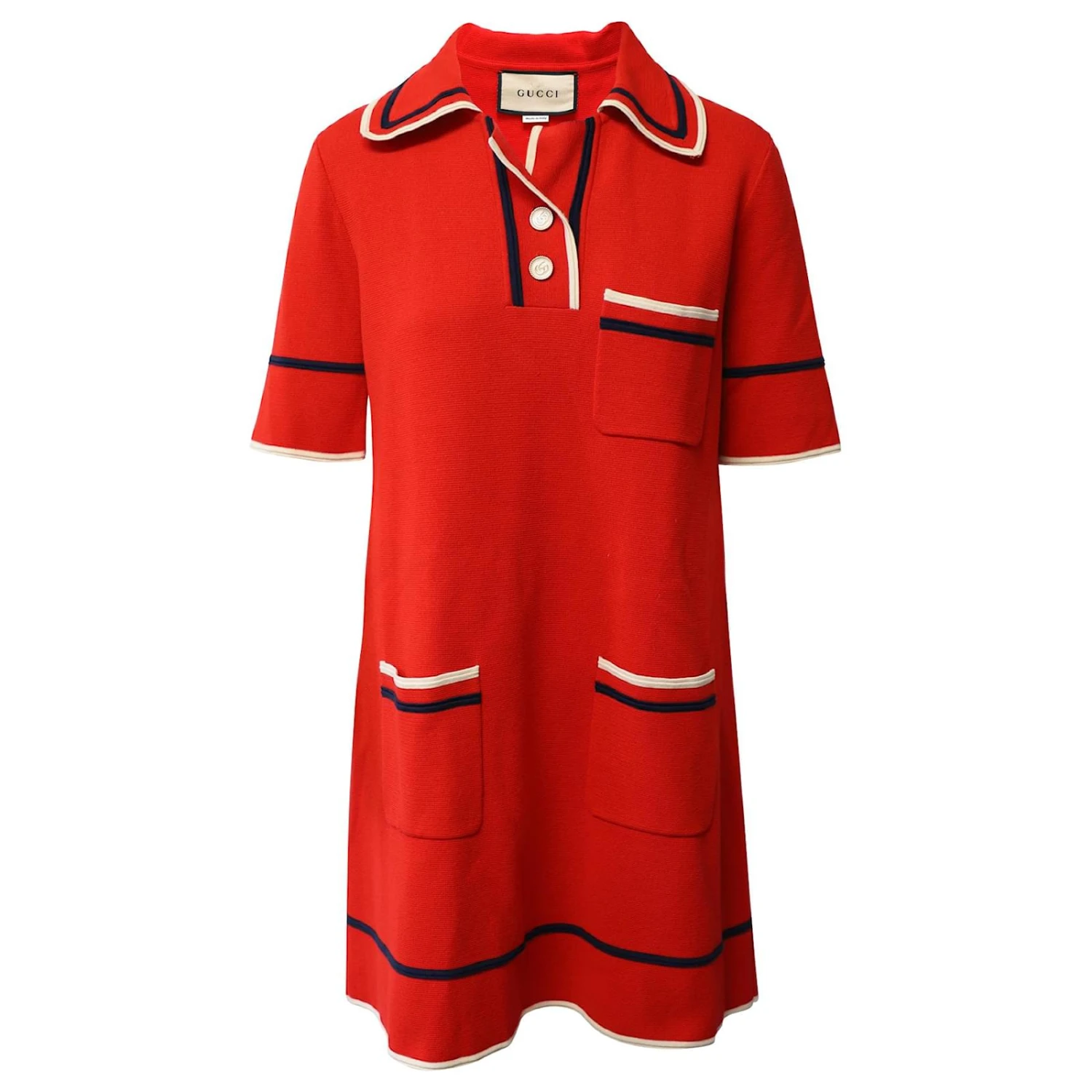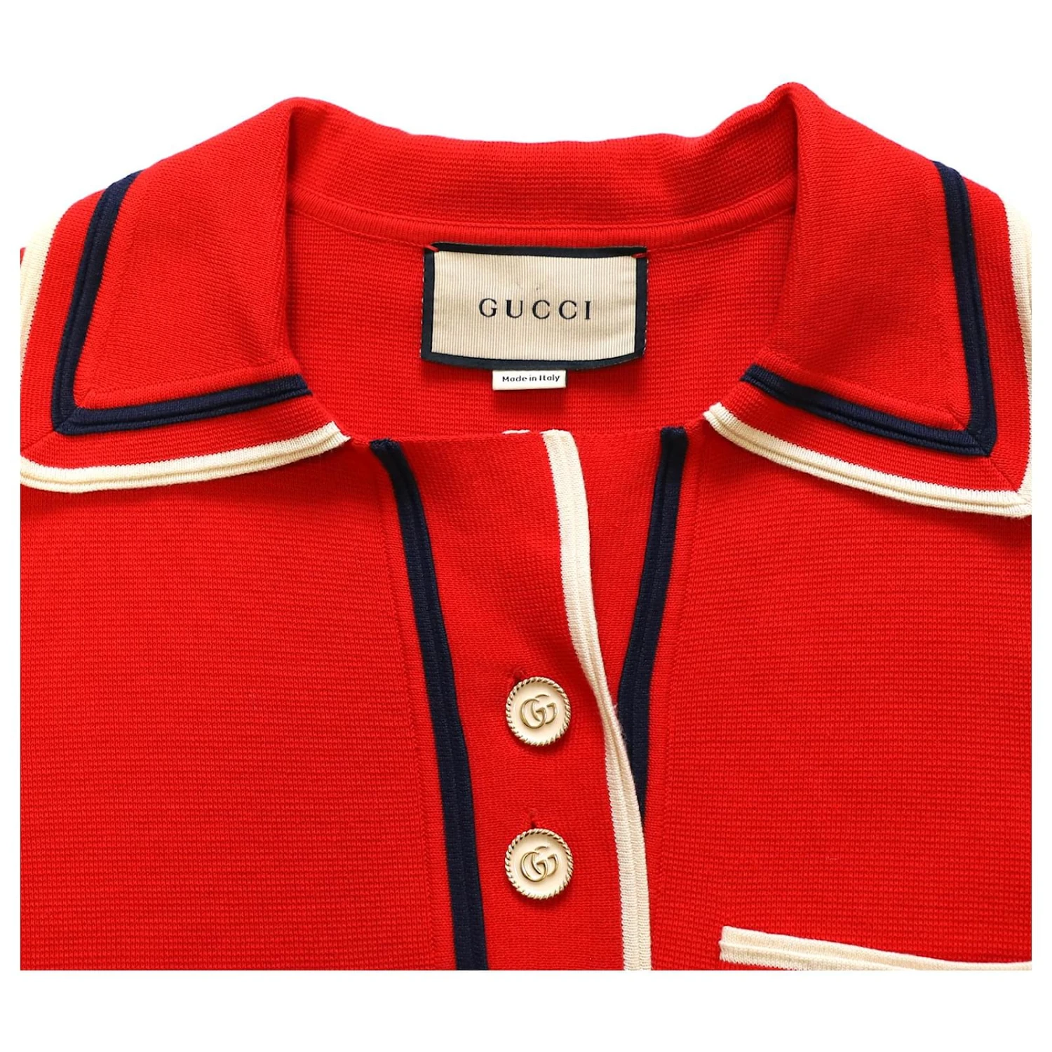 Gucci Robe polo en maille fine bordée de coton rouge