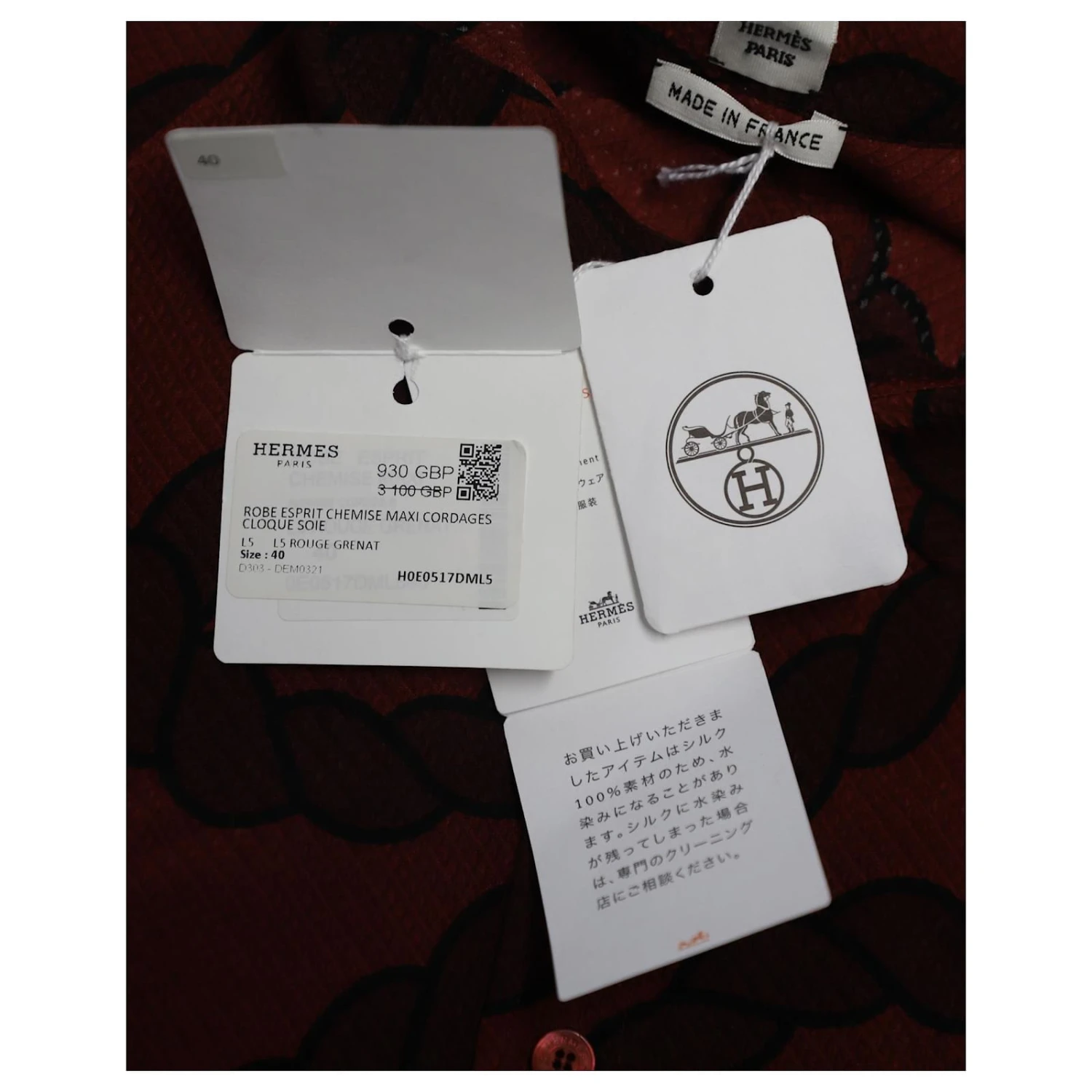 Robe chemise Hermes Rope Print en soie rouge