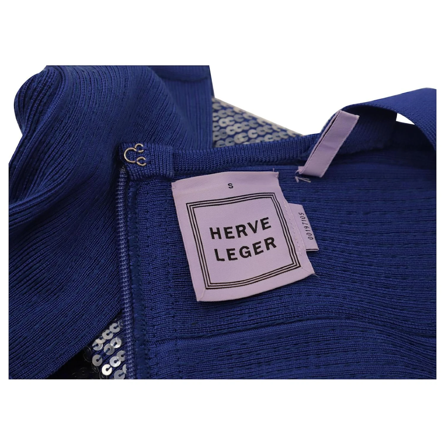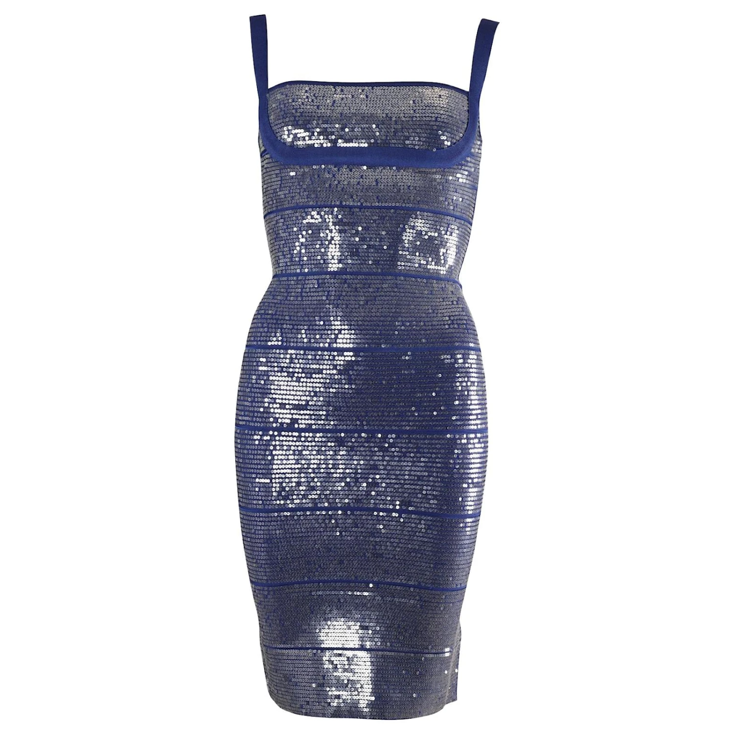 Herve Leger Katherine Bandage Robe à sequins en rayonne bleue