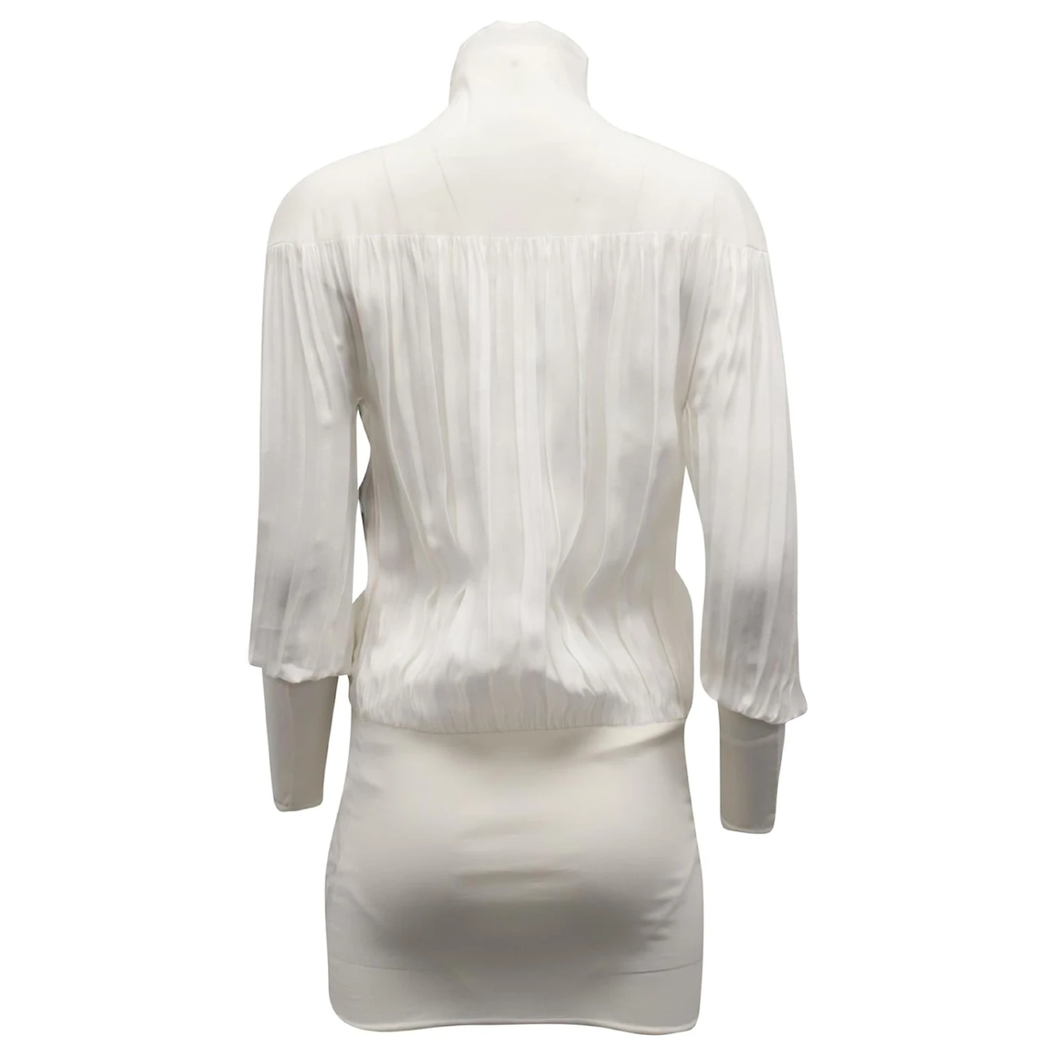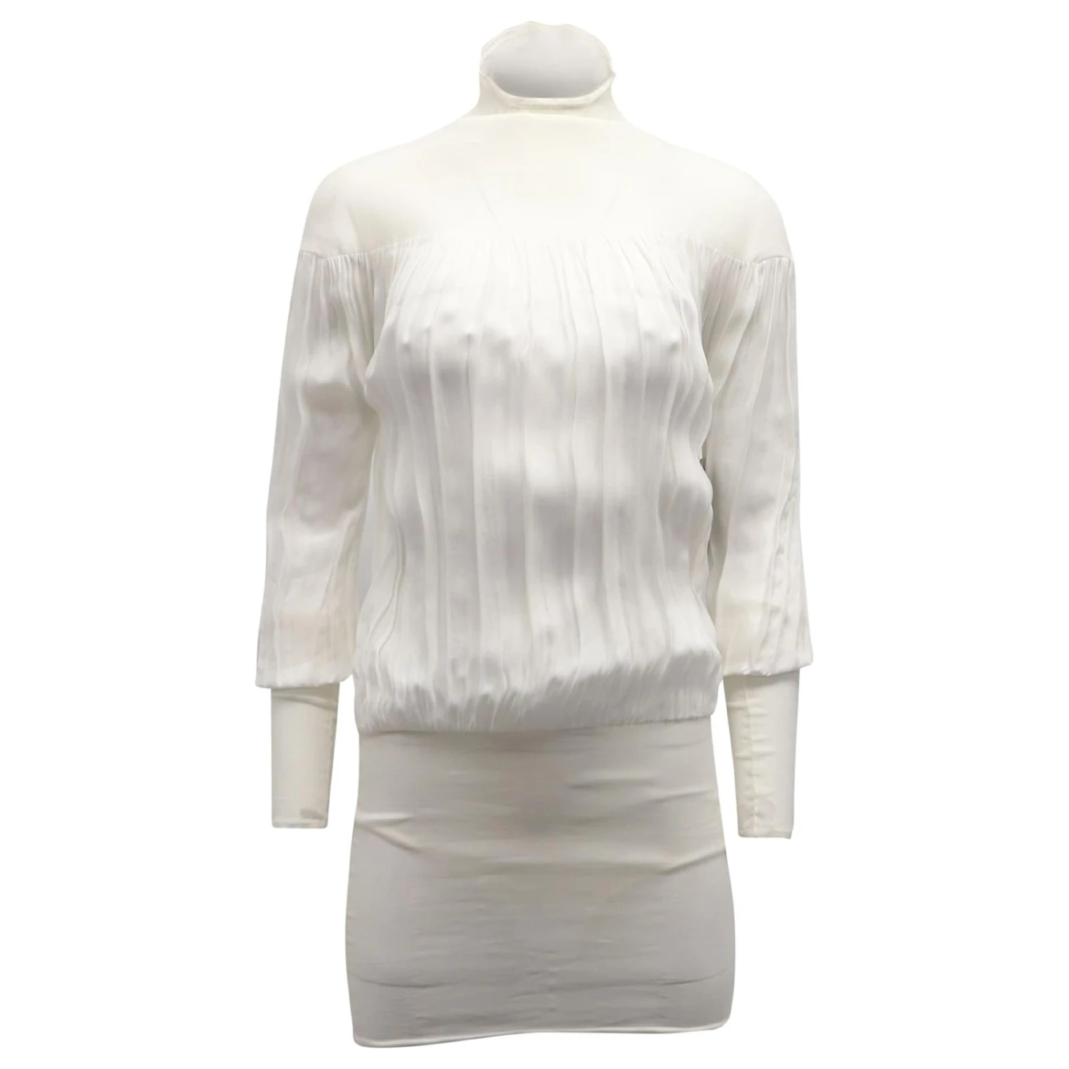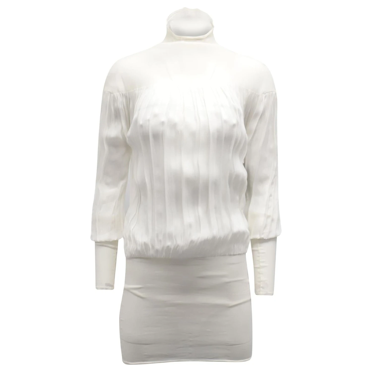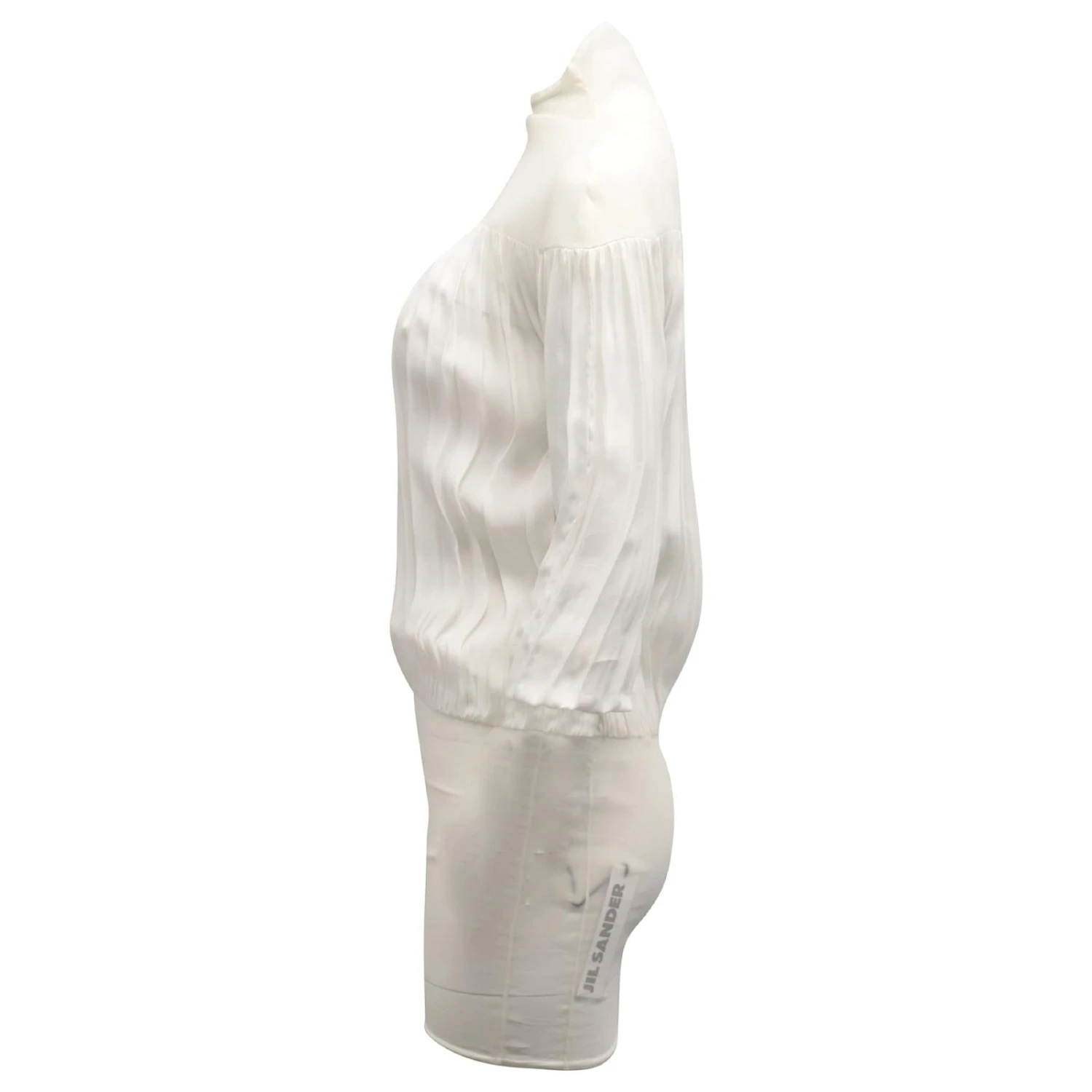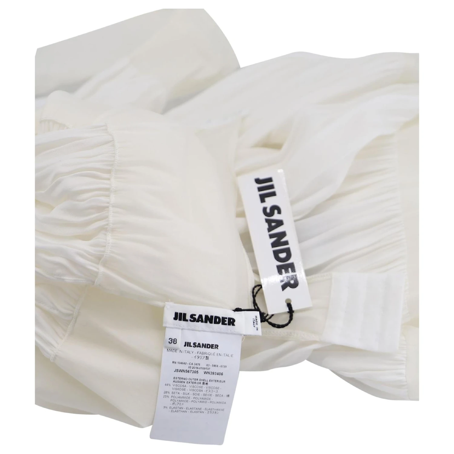Jil Sander Mini Robe Plissée à Col Montant en Viscose Blanche