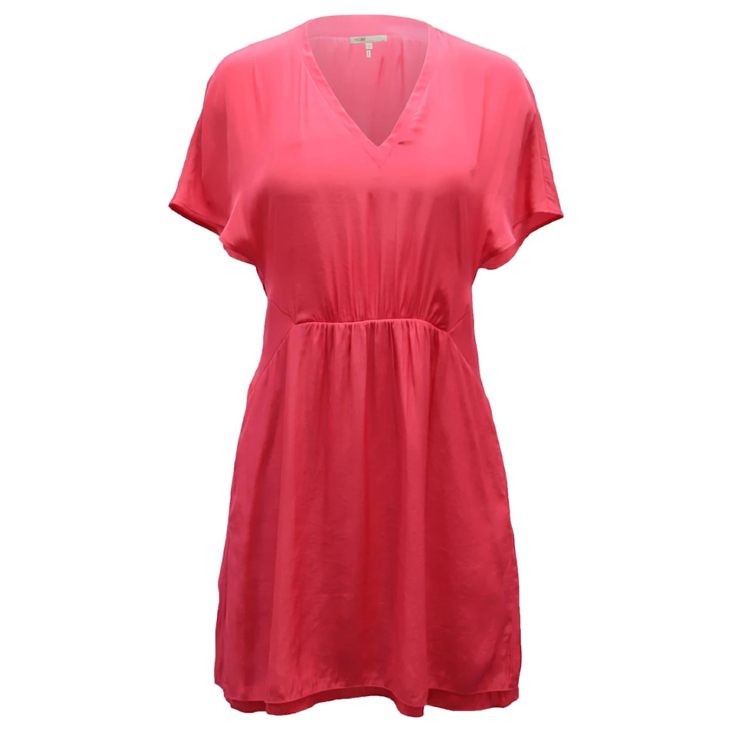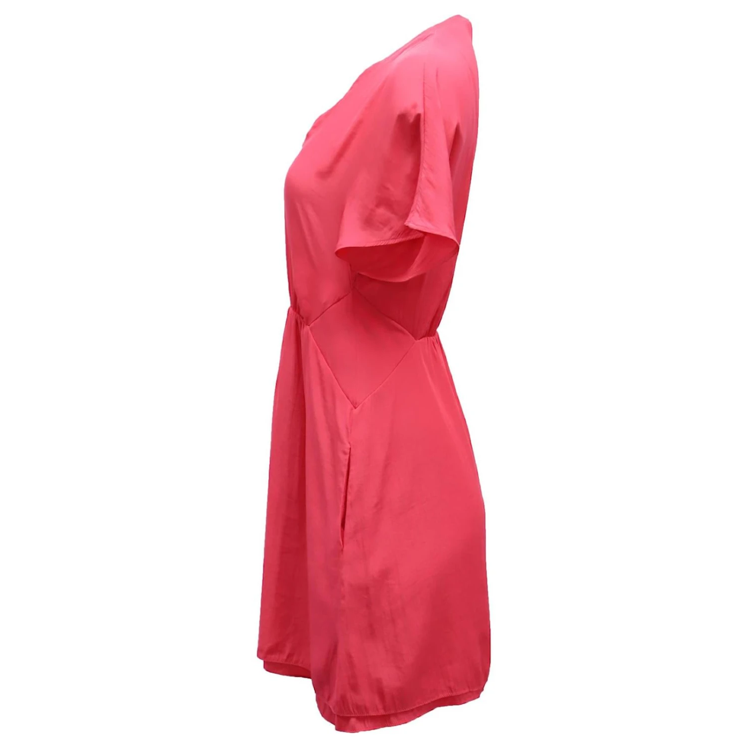Sans effort élégant et intelligent, cette robe Maje peut être habillée ou tenue minimalement chic selon les occasions. Confectionné en tissu rose fuchsia, cette robe à manches courtes présente une encolure en V simple avec des détails froncés à la taille.