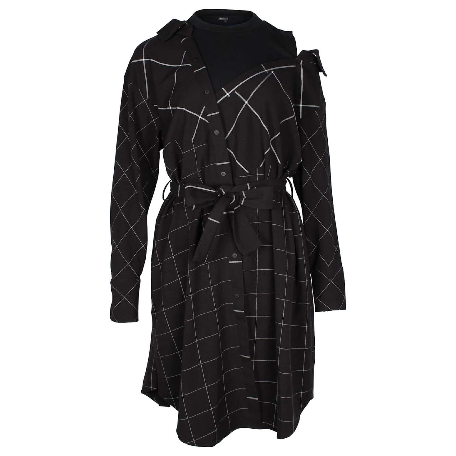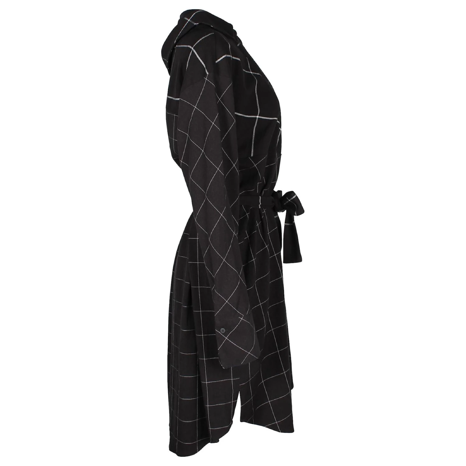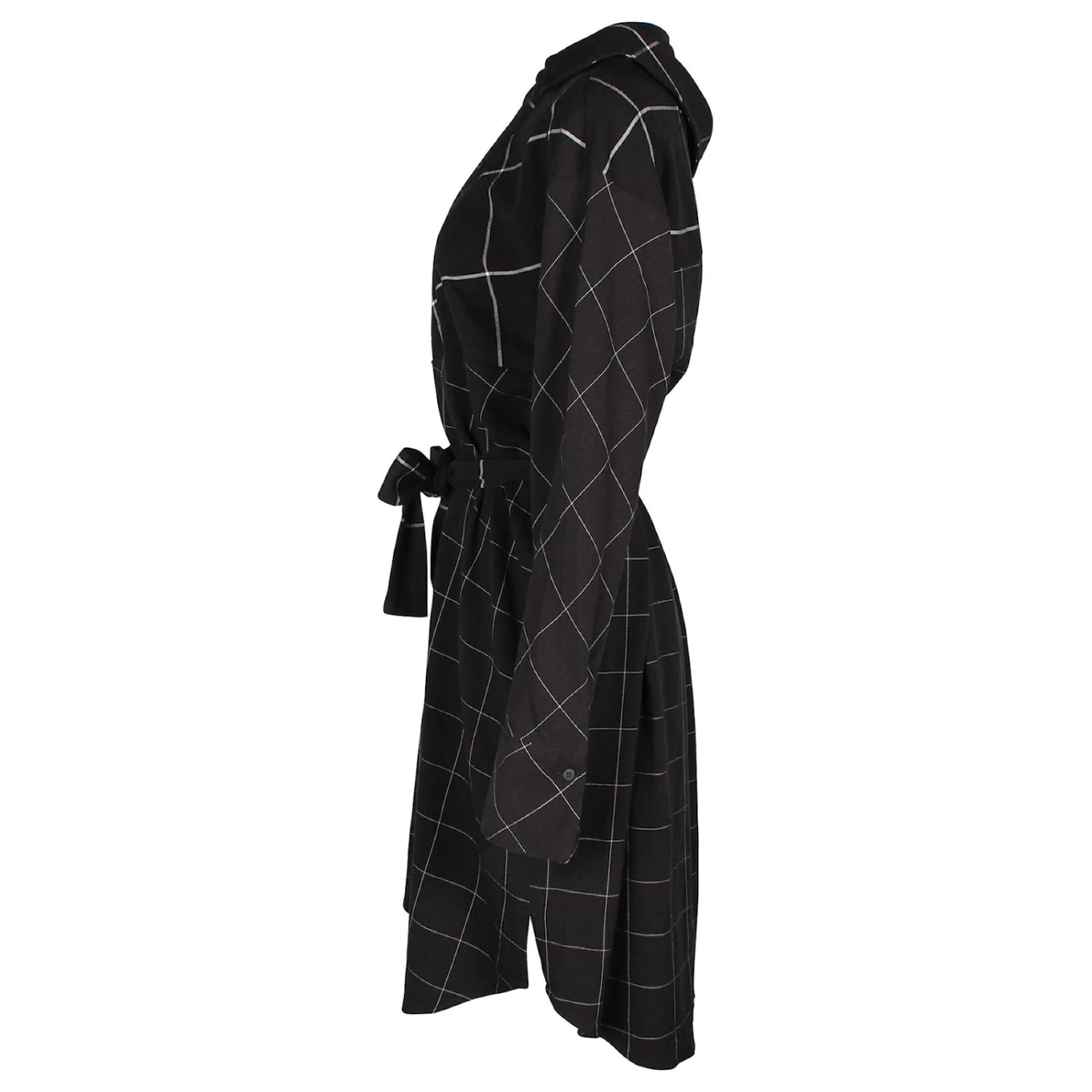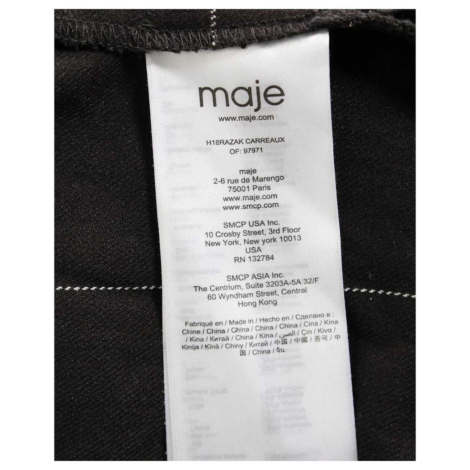 Maje Robe mi-longue boutonnée à épaules dénudées et imprimé grille en polyester noir