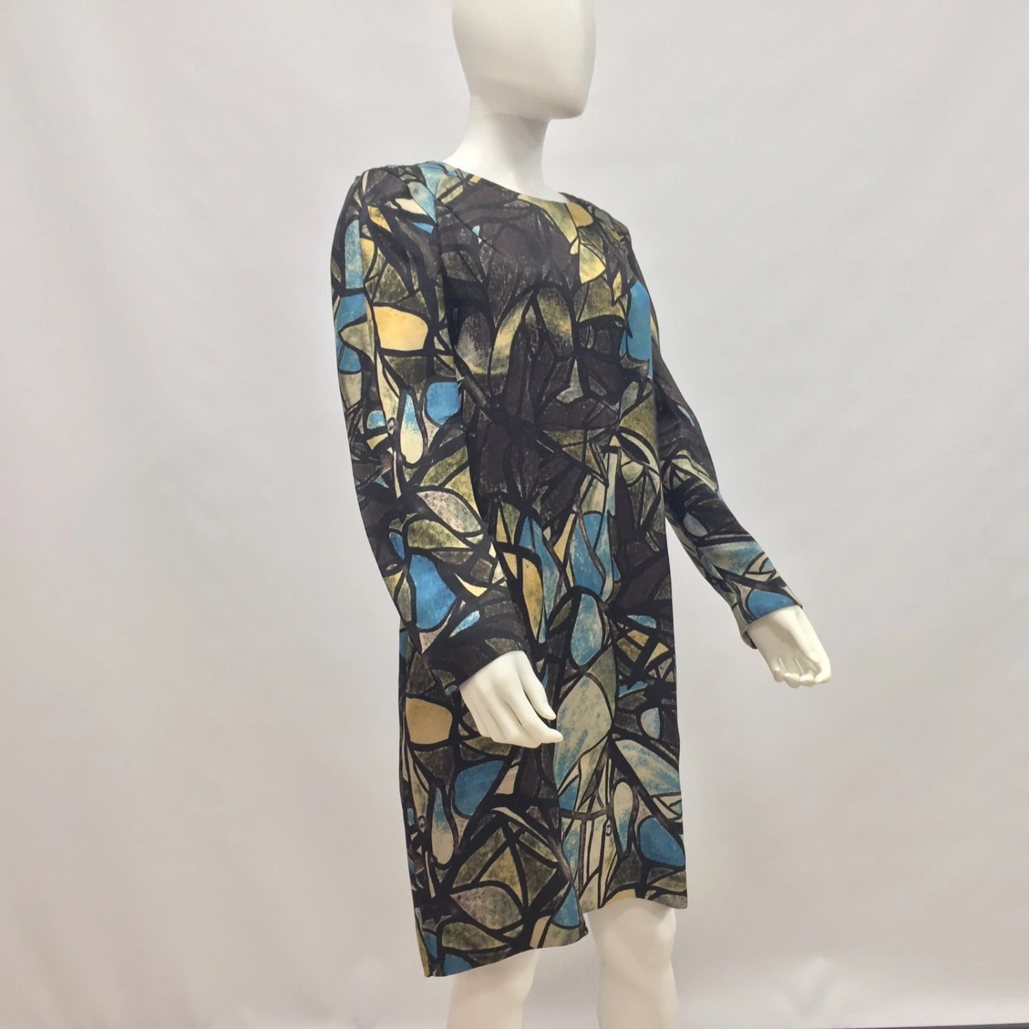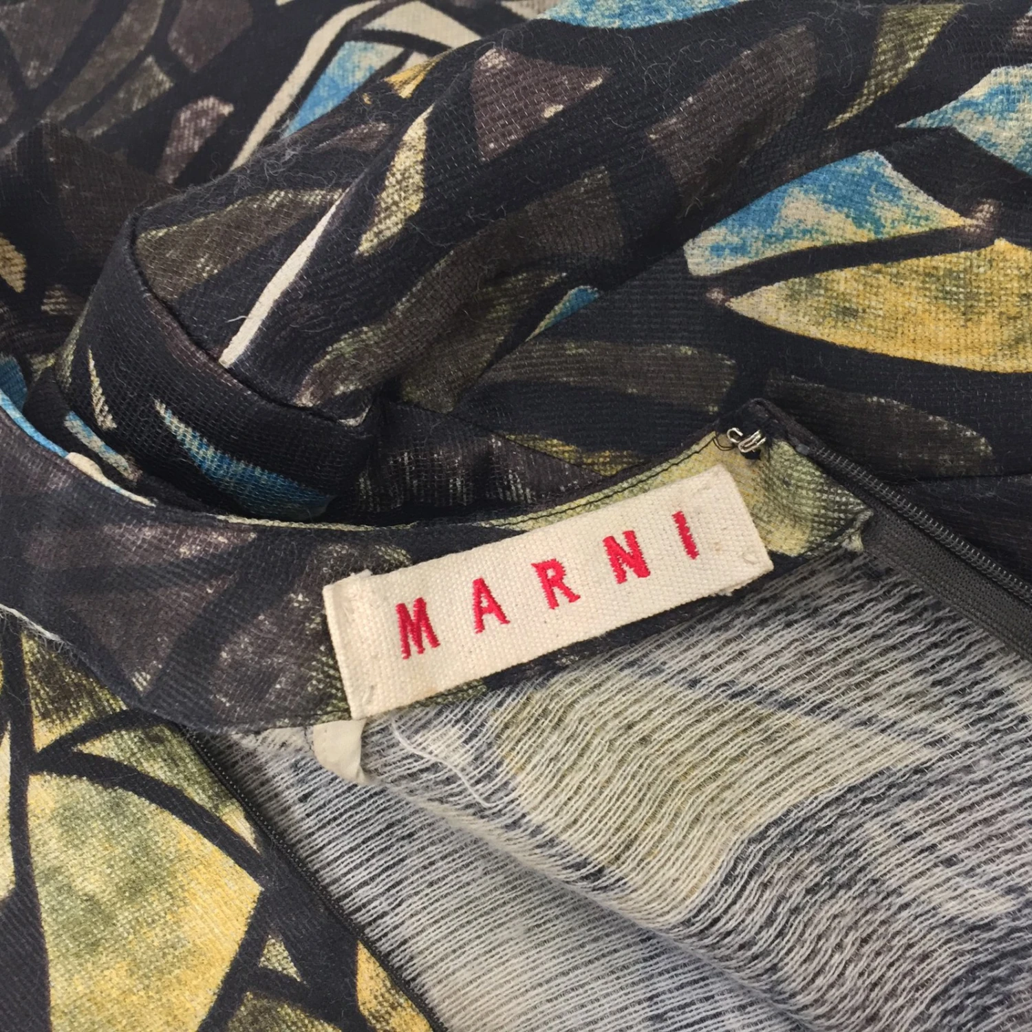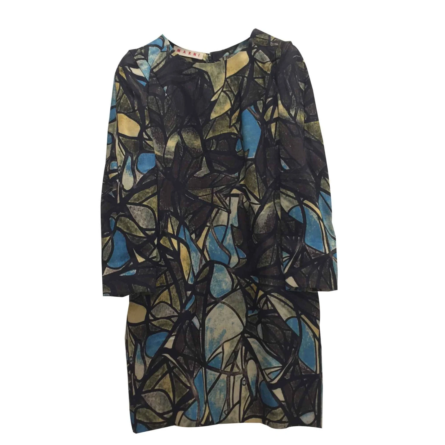 Robe Arty et rétro par Marni. dans67Matière principale : Soie33belle et douce laine, art déco multicolore imprimé partout. Fermeture à glissière dissimulée au dos, 2 Poches latérales, Non doublé. Taille IT44, ajustement régulier. Longueur93cm, pattes aux épaules41cm, manches61cm, Poitrine50cm. utilisé qu’une seule fois, Excellentes conditions, aucun signe d’utilisation.
