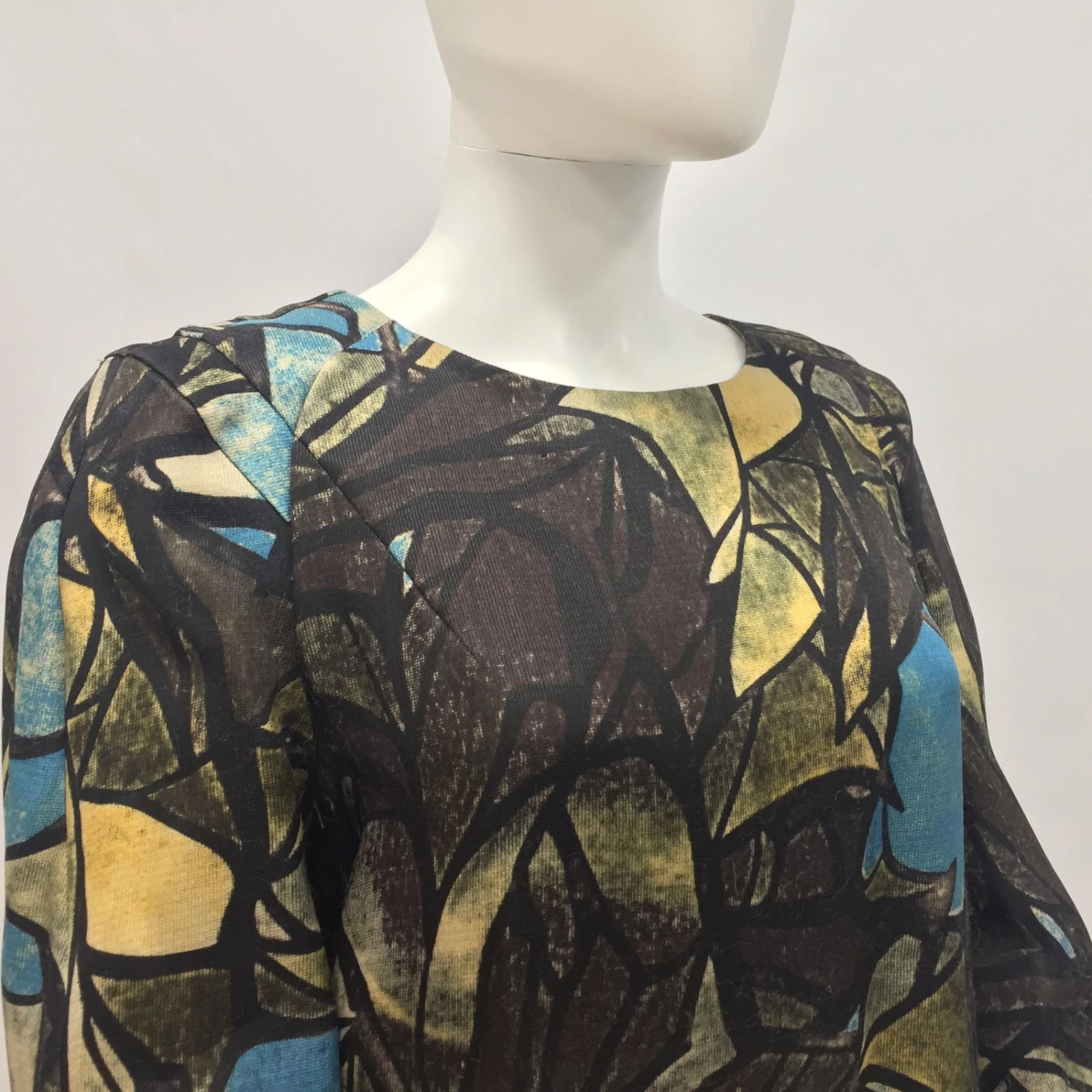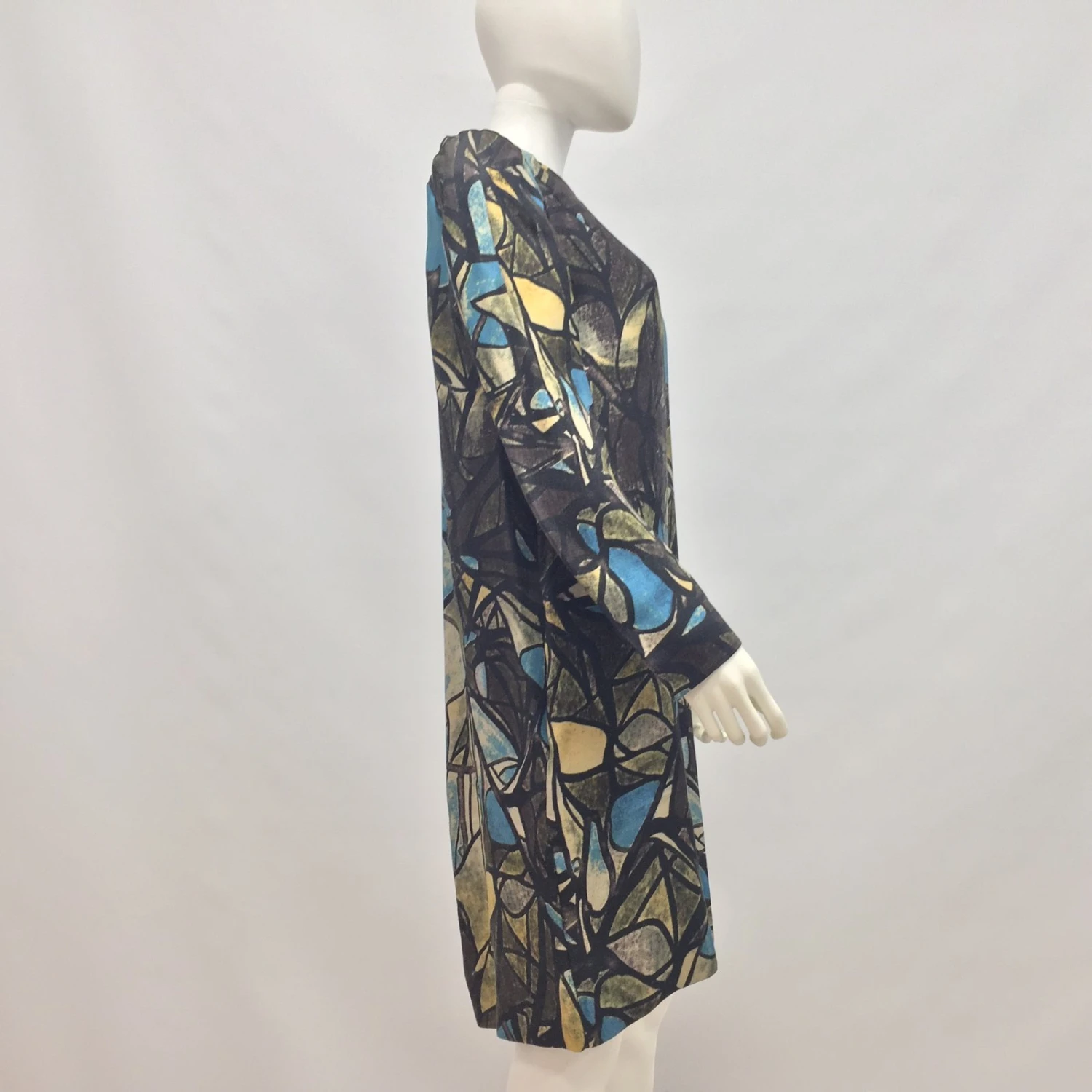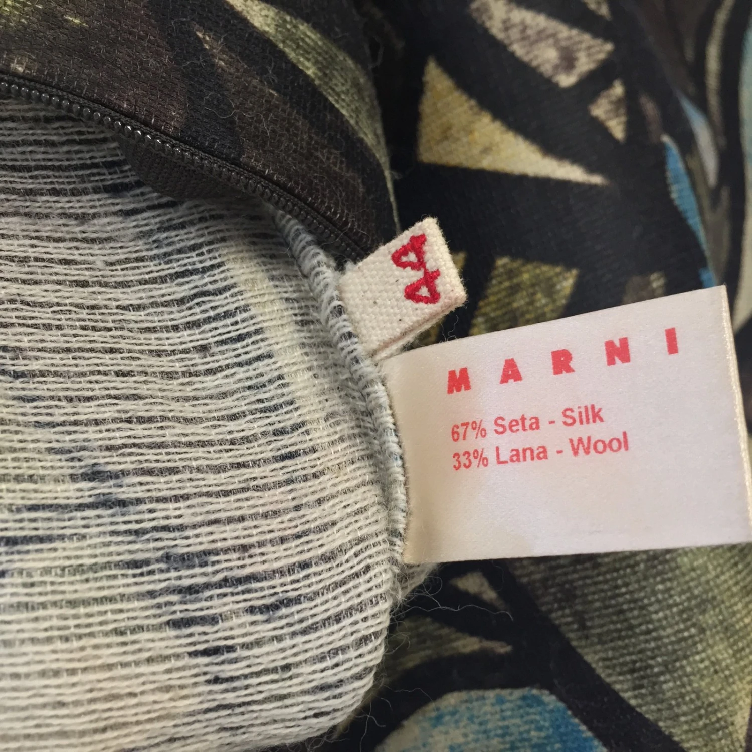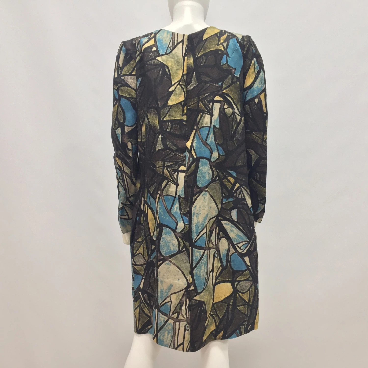Robe Arty et rétro par Marni. dans67Matière principale : Soie33belle et douce laine, art déco multicolore imprimé partout. Fermeture à glissière dissimulée au dos, 2 Poches latérales, Non doublé. Taille IT44, ajustement régulier. Longueur93cm, pattes aux épaules41cm, manches61cm, Poitrine50cm. utilisé qu’une seule fois, Excellentes conditions, aucun signe d’utilisation.