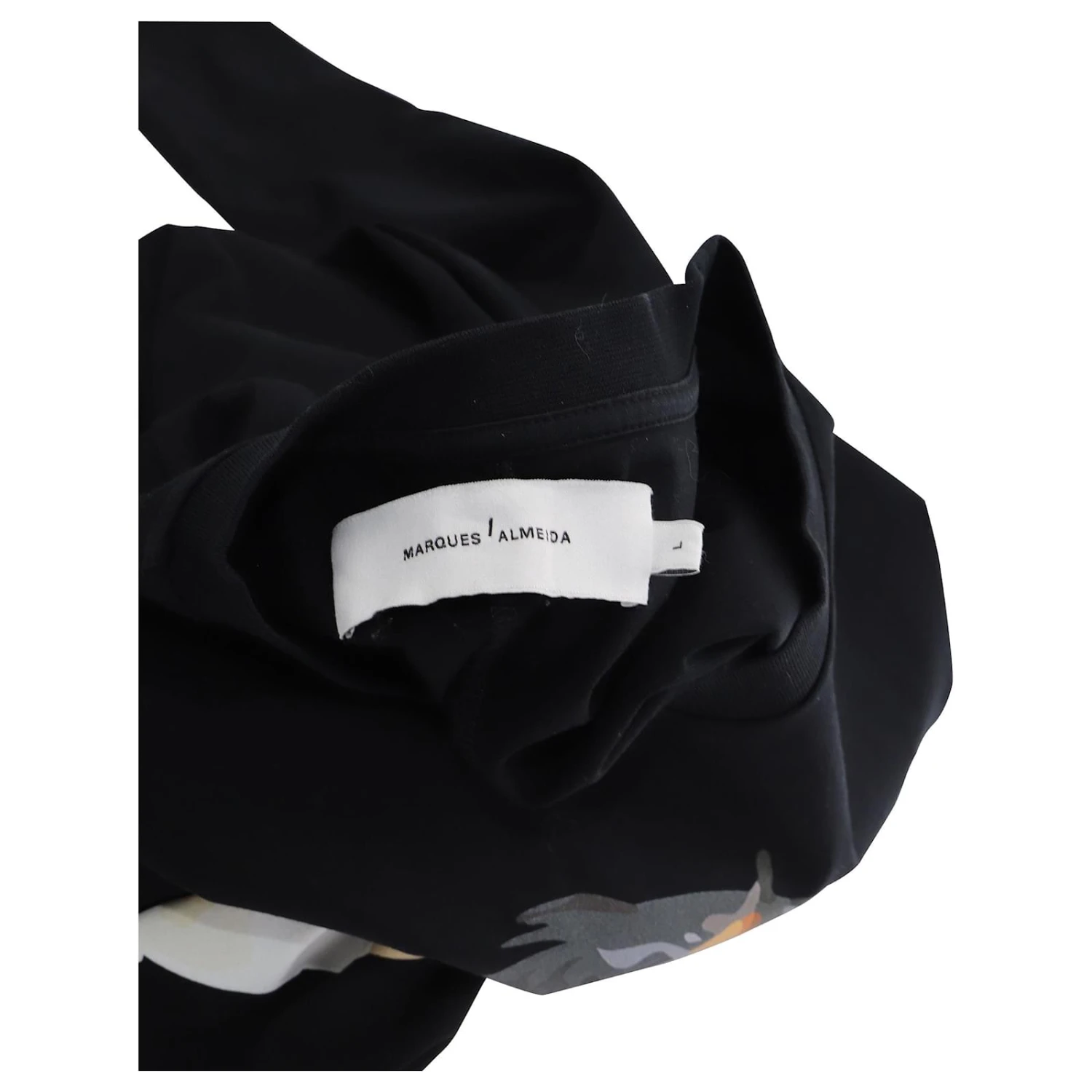 Cette robe noire Marques’Almeida reprend le thème équestre des SS de la marque19 bases, avec un motif abstrait de coup de pinceau d’un cheval au galop sur le devant. Il est confectionné en jersey de coton avec des manches longues et une coupe longue qui balaie le sol. Portez-le avec des sandales à plateforme pour rehausser le style sculptural, effet colonne de la silhouette.