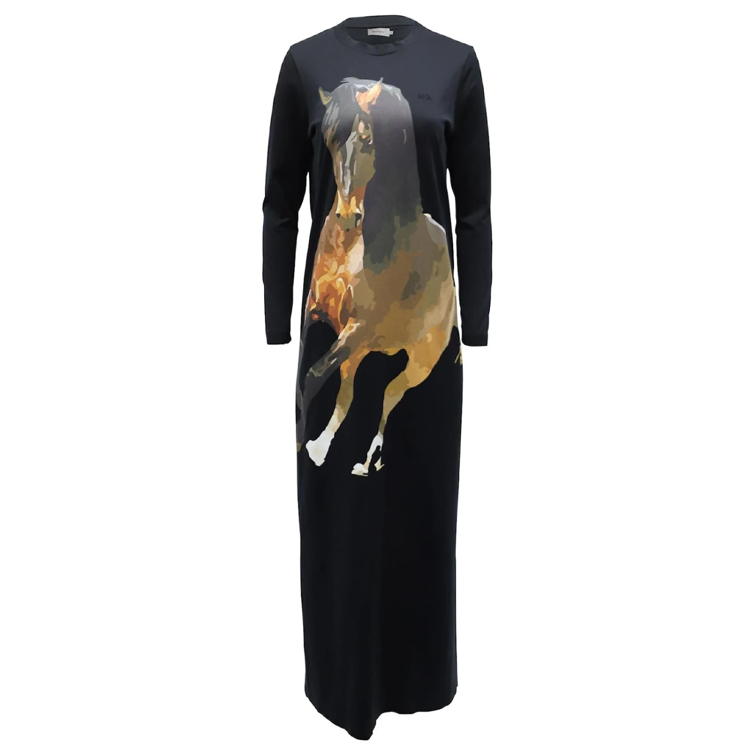 Marques Almeida Robe Longue Imprimé Cheval en Coton Noir