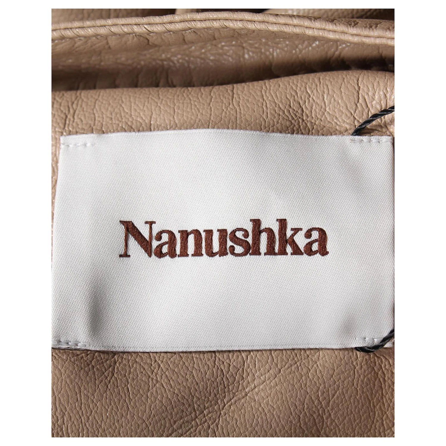 Nanushka Robe chemise mi-longue froncée en cuir végétalien beige