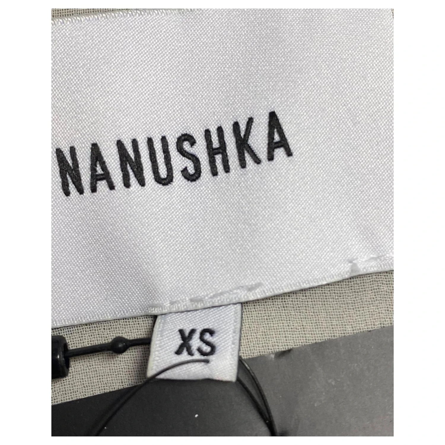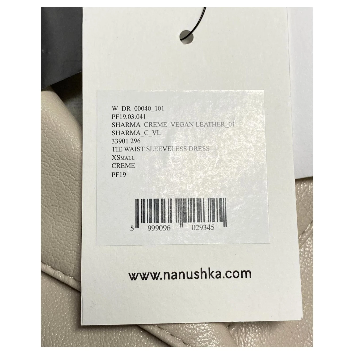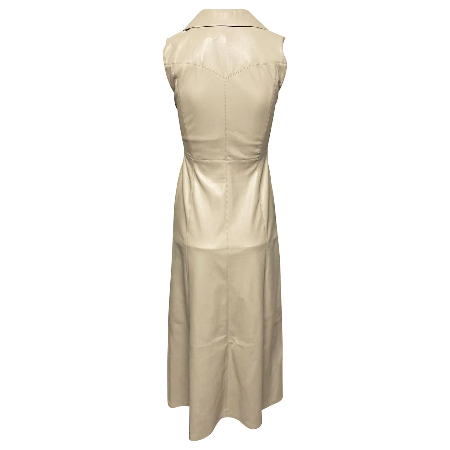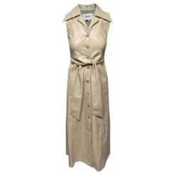 Nanushka Sharma – Robe mi-longue sans manches à ceinture en similicuir beige
