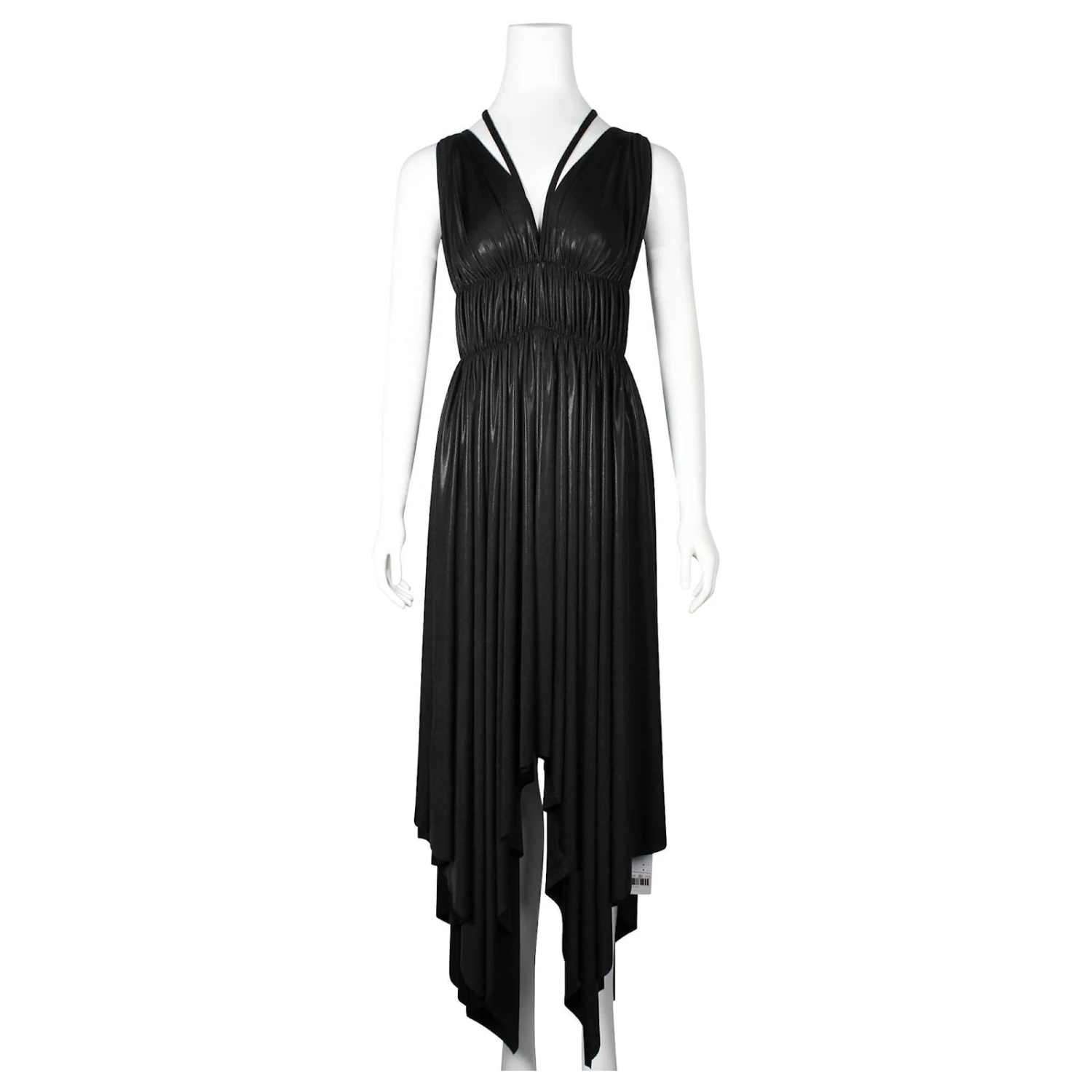Norma Kamali – Robe longue flatteuse noire élégante à col en V