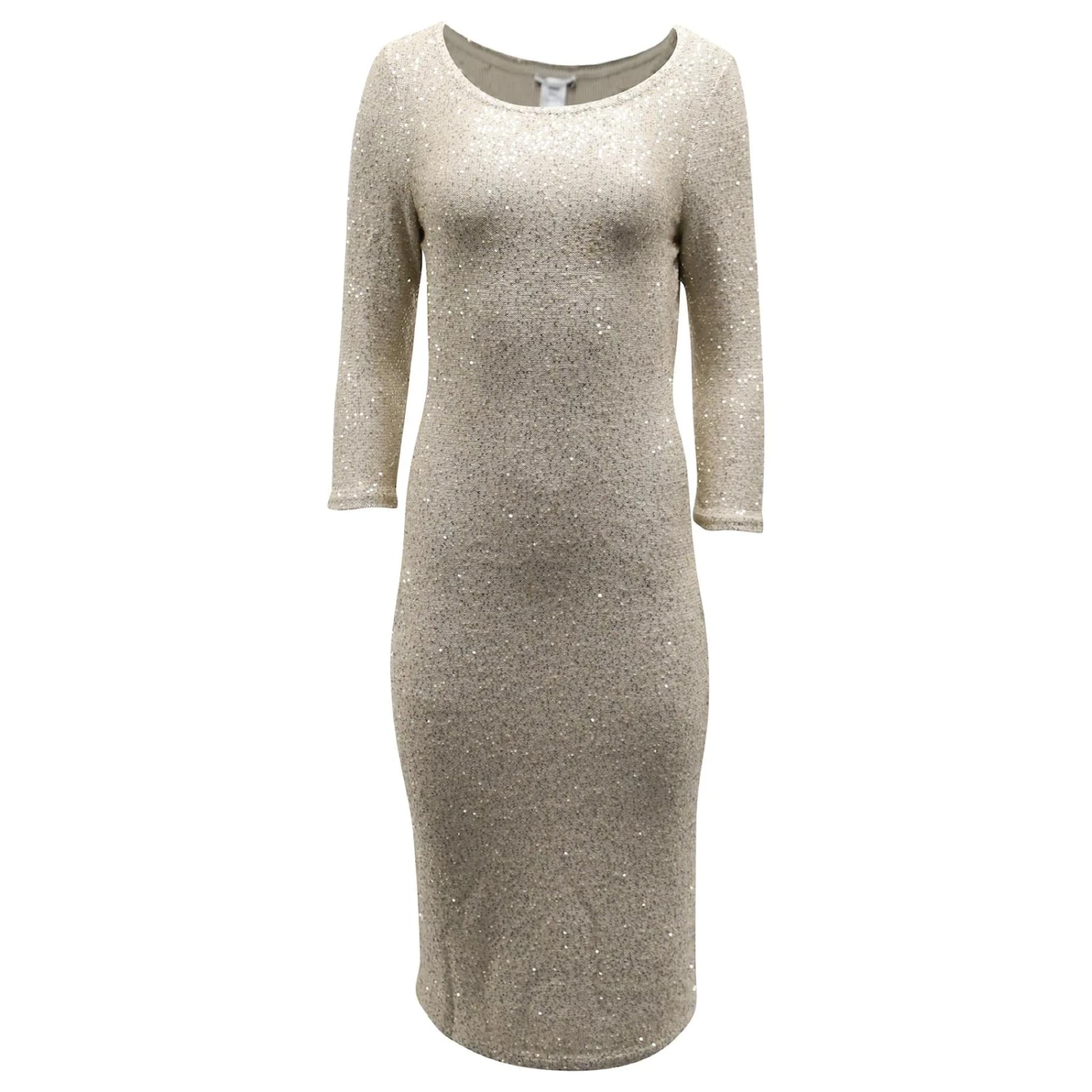 Oscar De La Renta Robe à Paillettes en Soie Beige