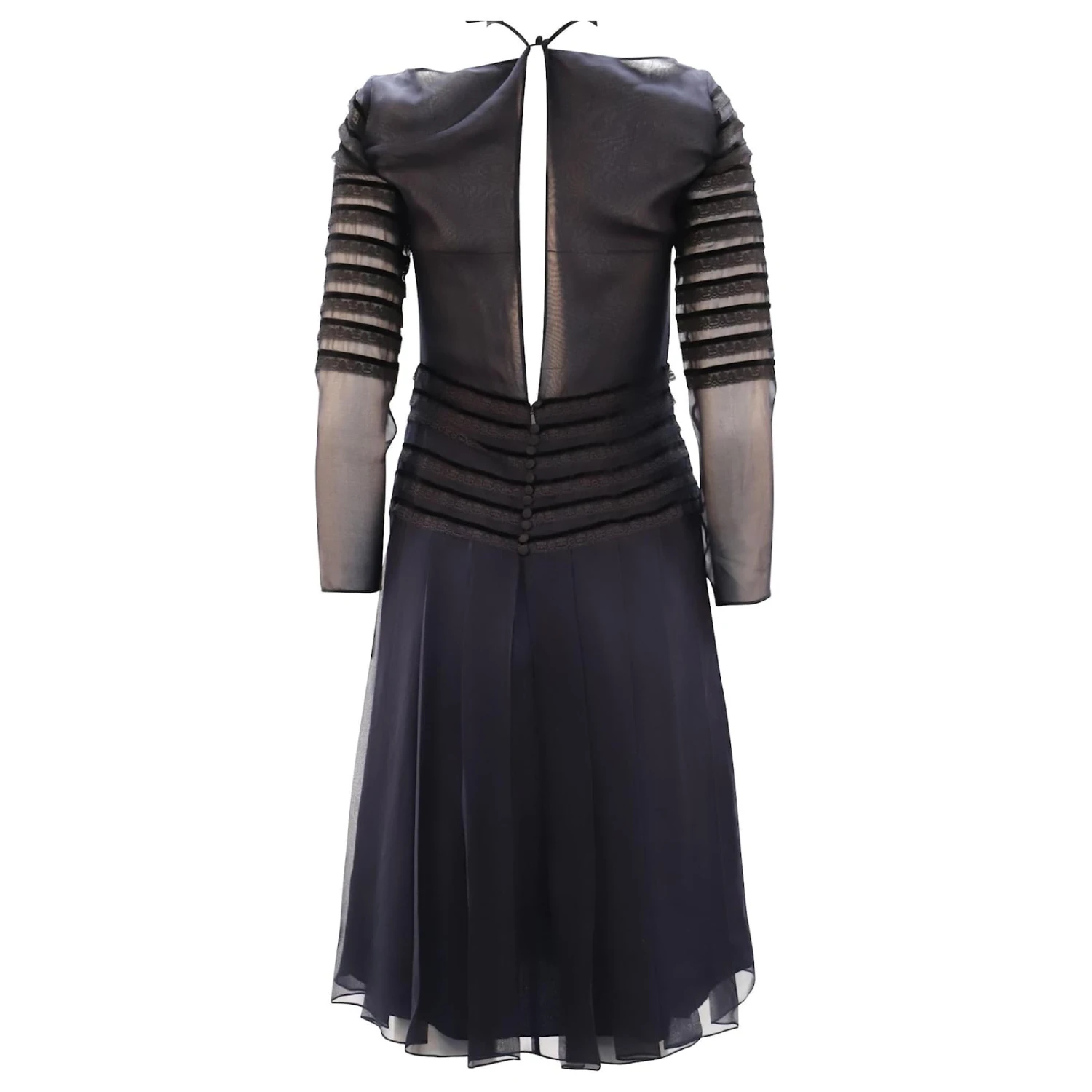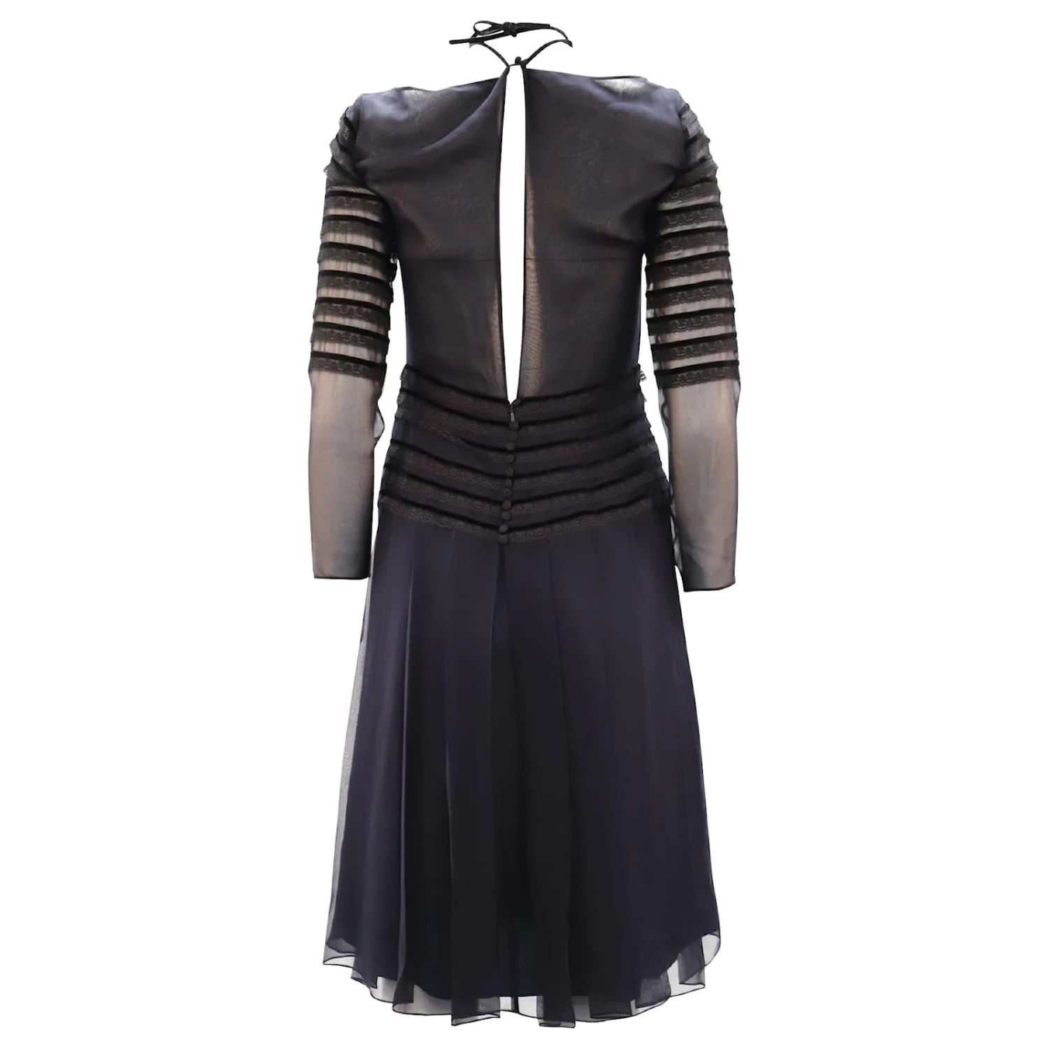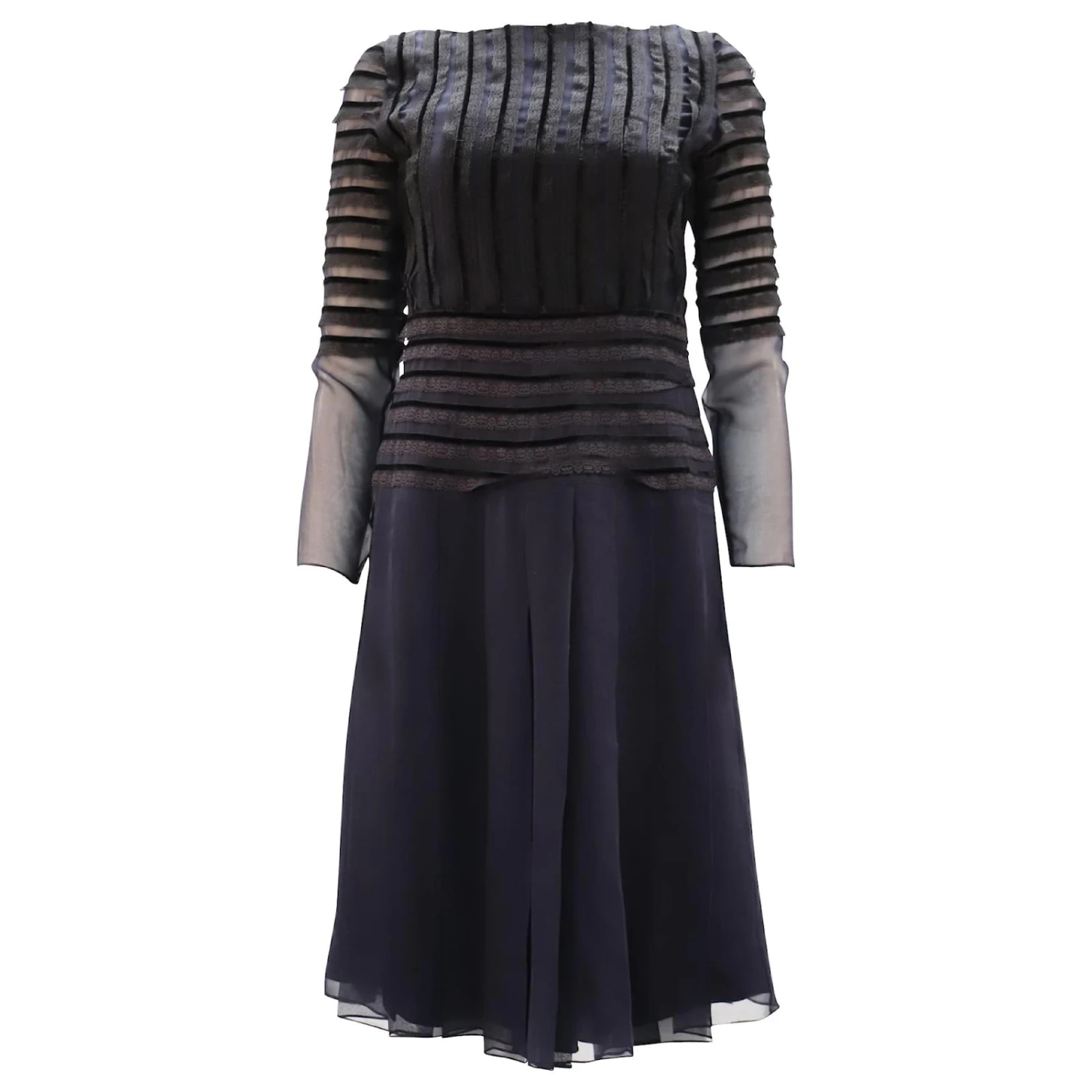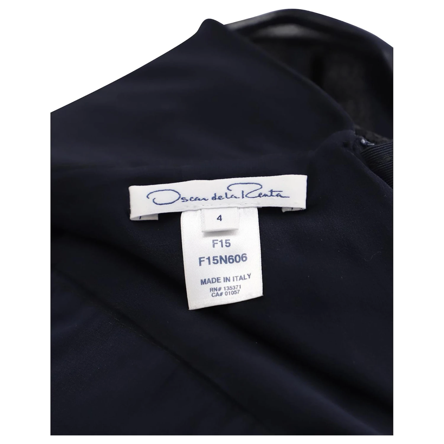 Oscar De La Renta Robe Bordée de Dentelle en Soie Bleue