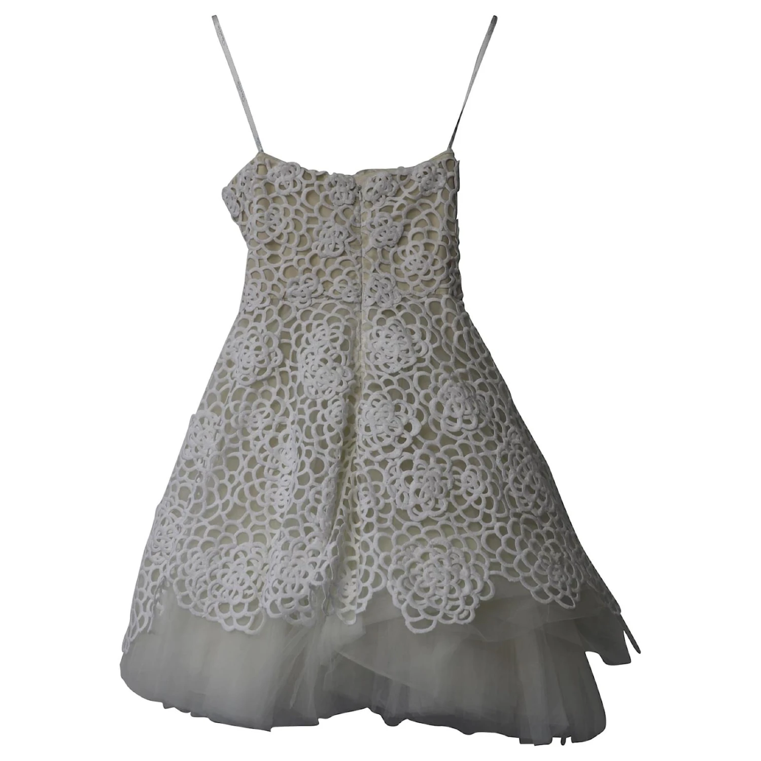 Oscar De La Renta Robe de mariée courte en tulle ballon découpée au laser en nylon polyester blanc