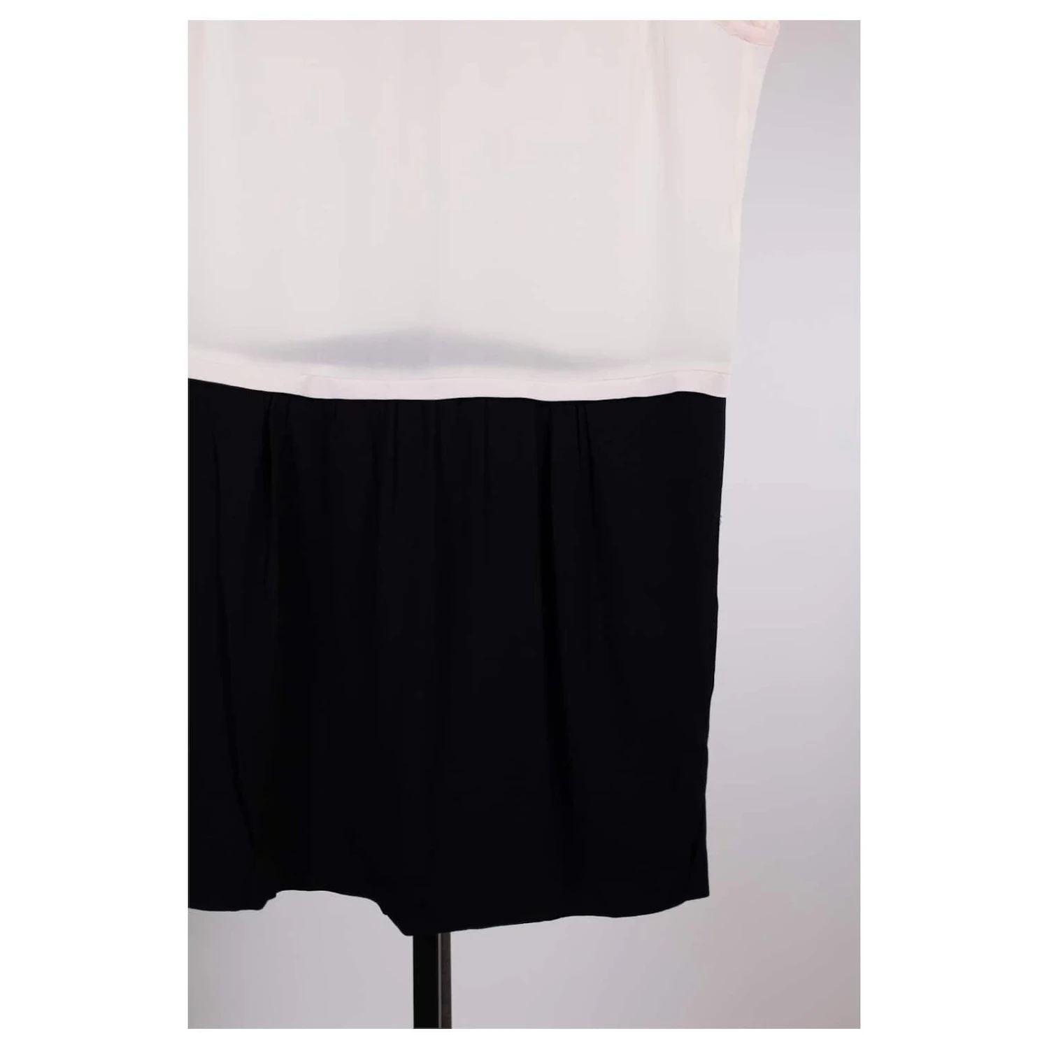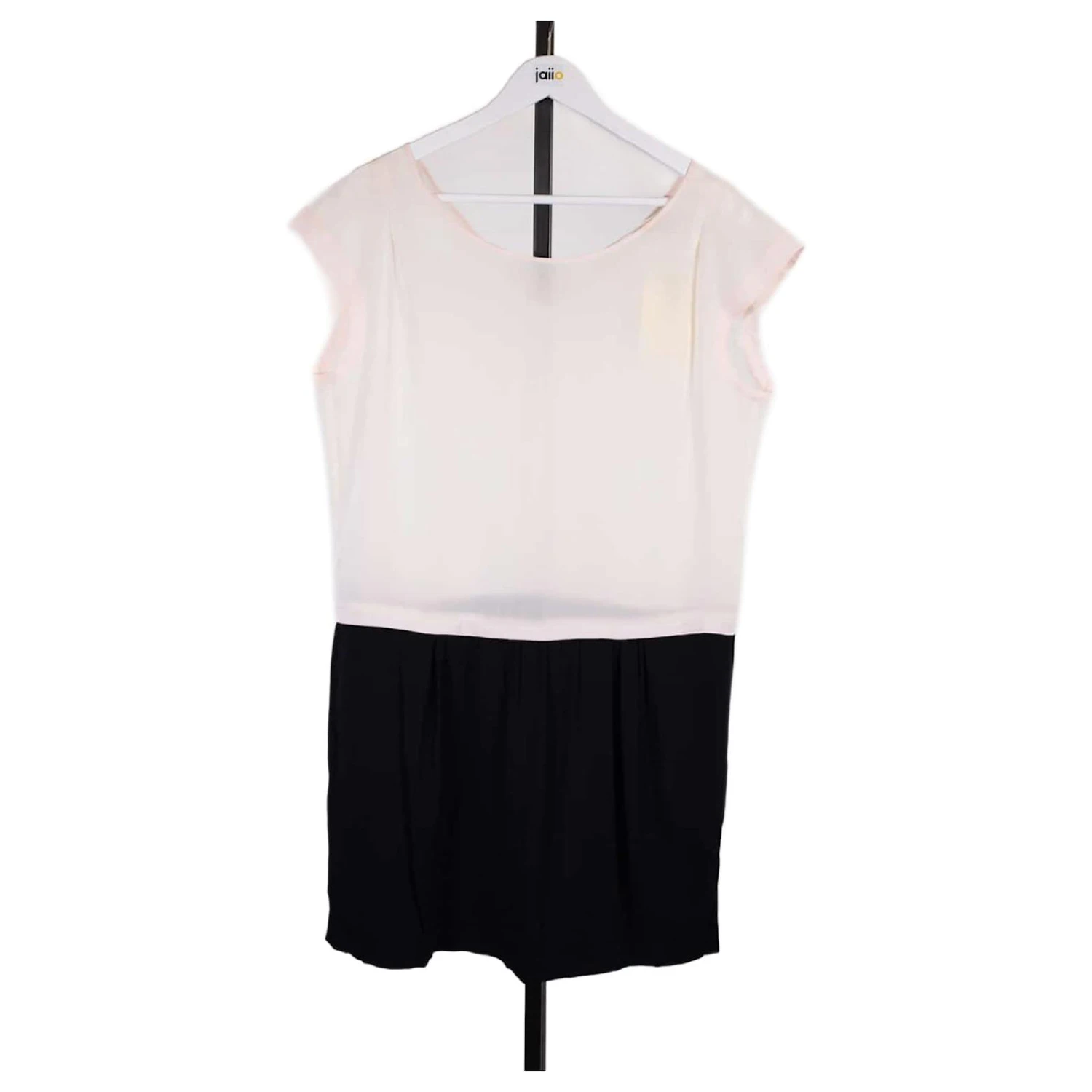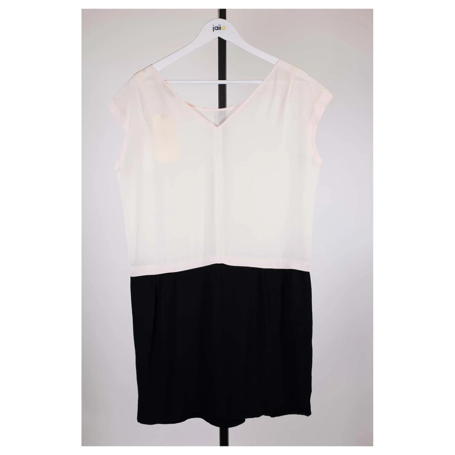 Robe Courte Bi Colore Col V Manches Courtes Longueur 83Cm Poitrine 47Cm – Pablo – Taille 42 – 100% Viscose – Noir – Bon Etat – Ref 197054