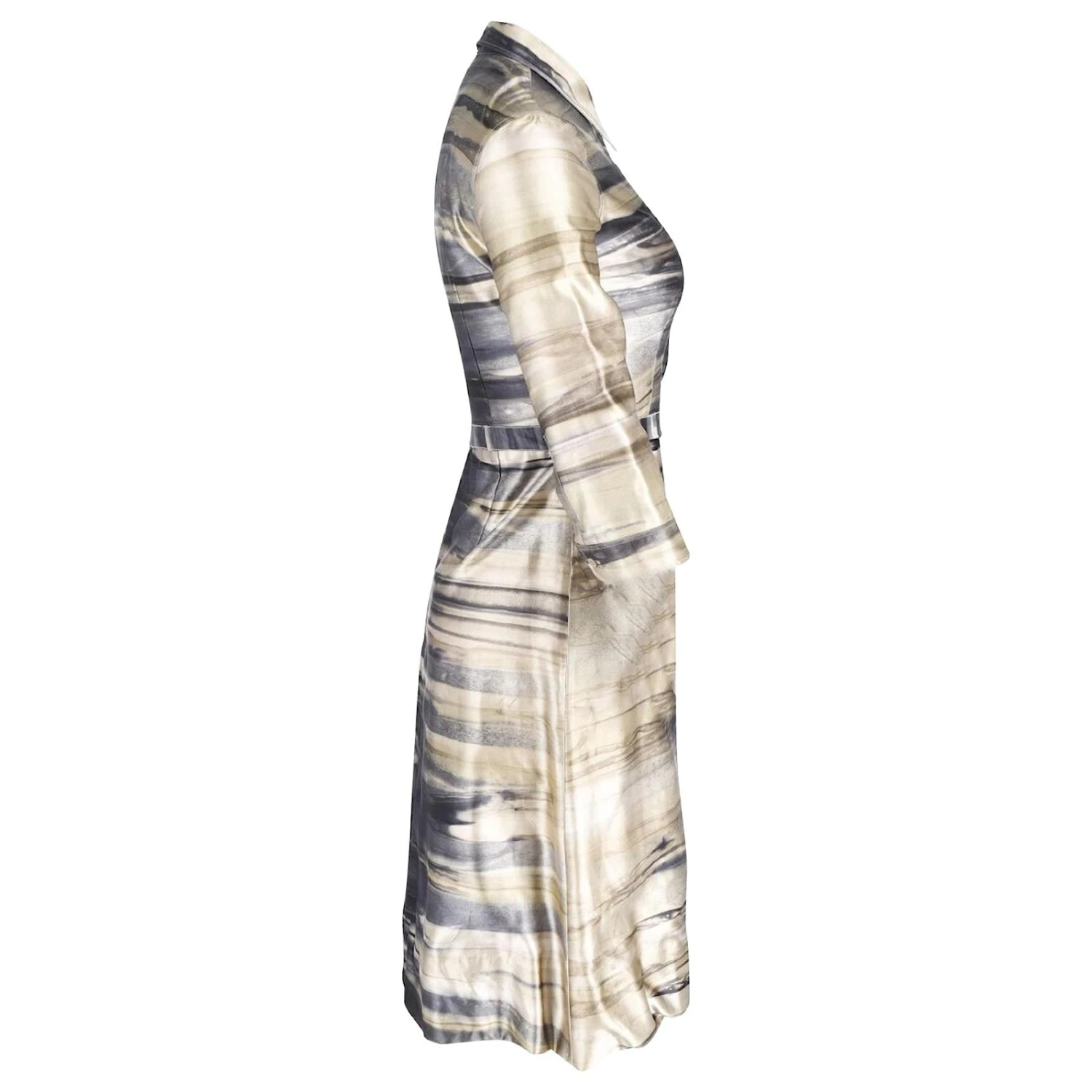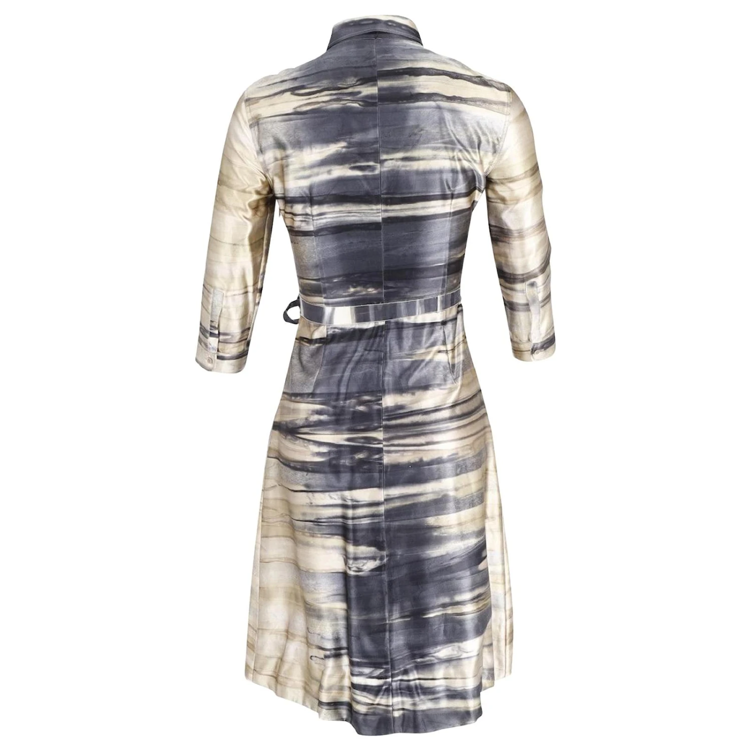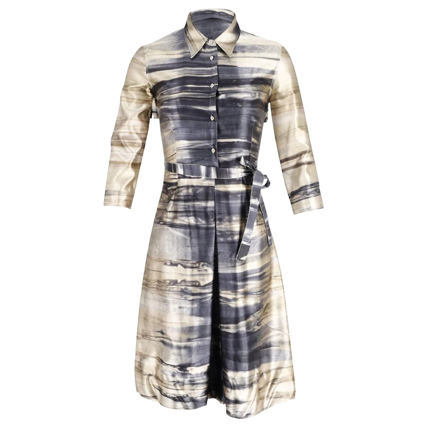 Prada Robe Chemise Imprimée à Ceinture en Soie Multicolore
