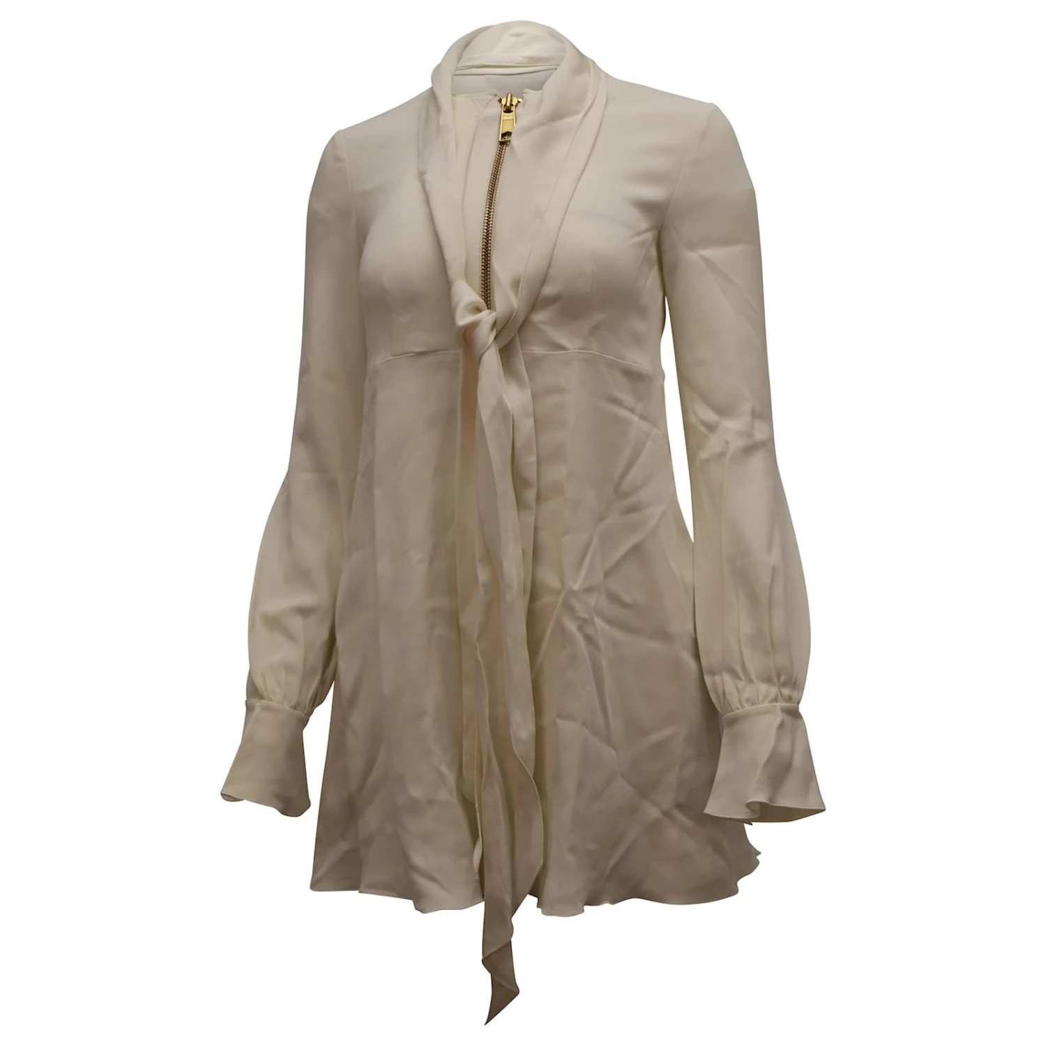 Rachel Zoe Mini Robe à Col Cravate en Viscose Blanche