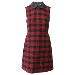 Ajoutez une touche de couleur vive à votre journée avec cette joyeuse mini-robe à carreaux rouge de Valentino. Fabriqué en mélange de coton et de laine, il comporte un col claudine et sans manches. Il a un imprimé à carreaux partout et est parfait pour tous les jours ou pour toute occasion spéciale.