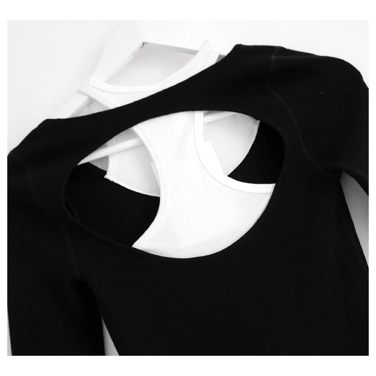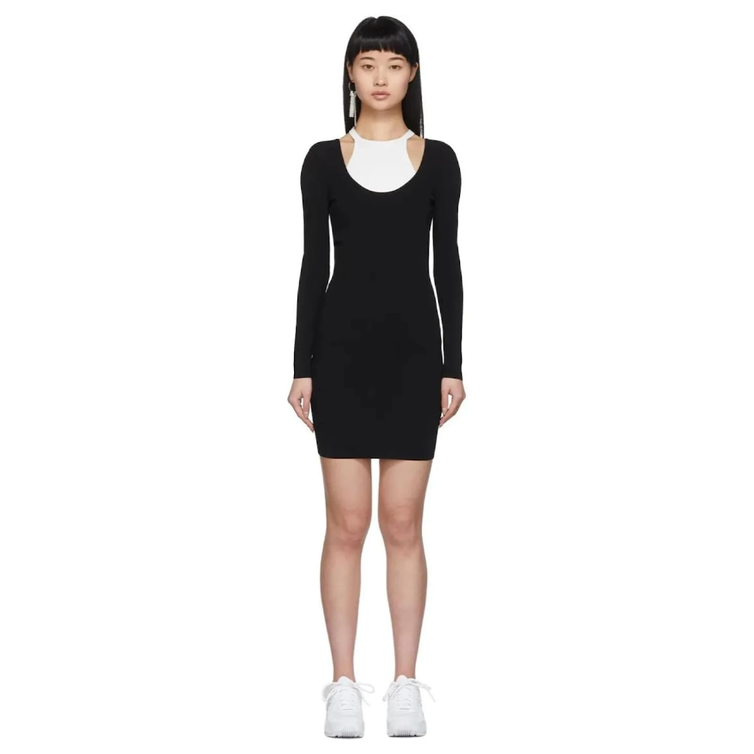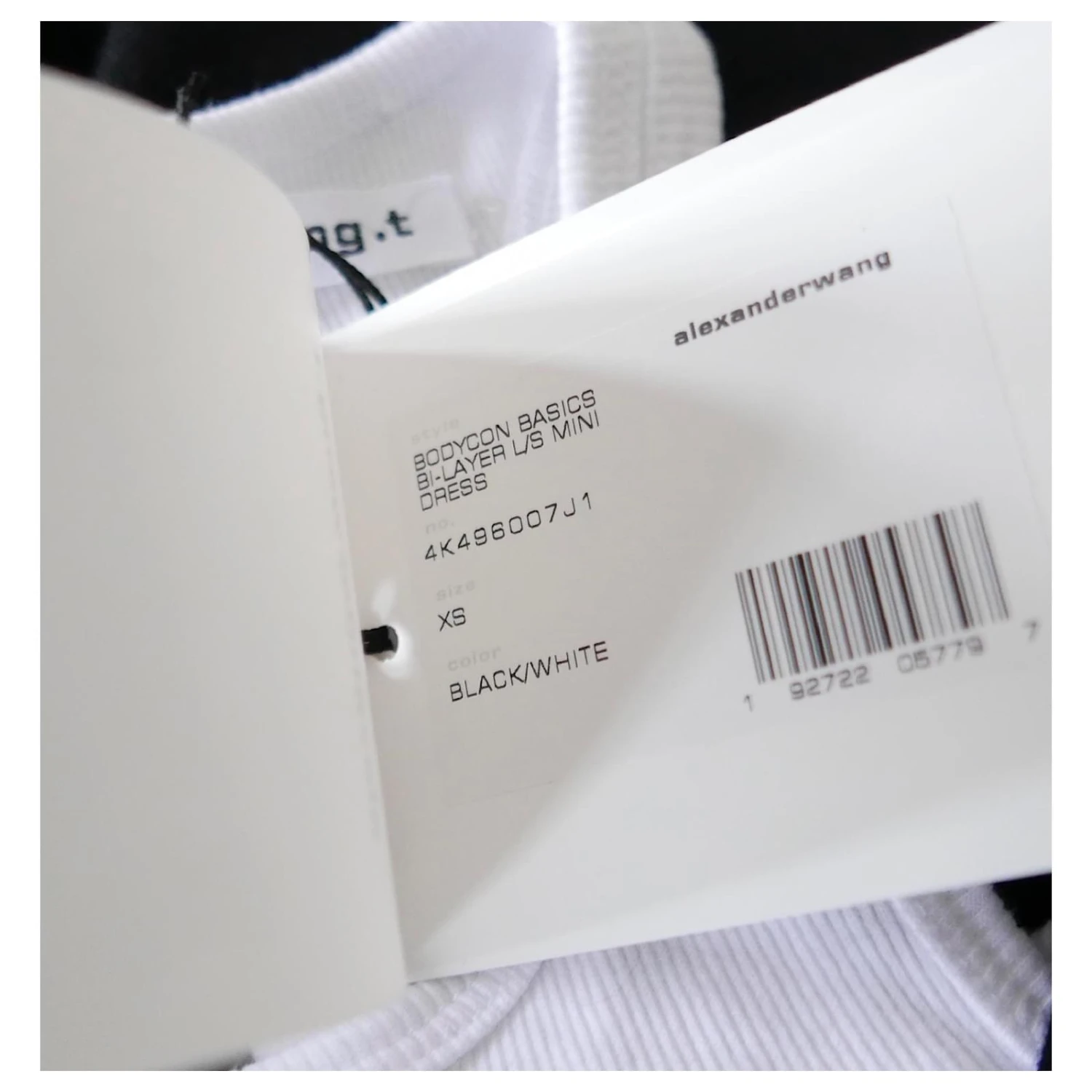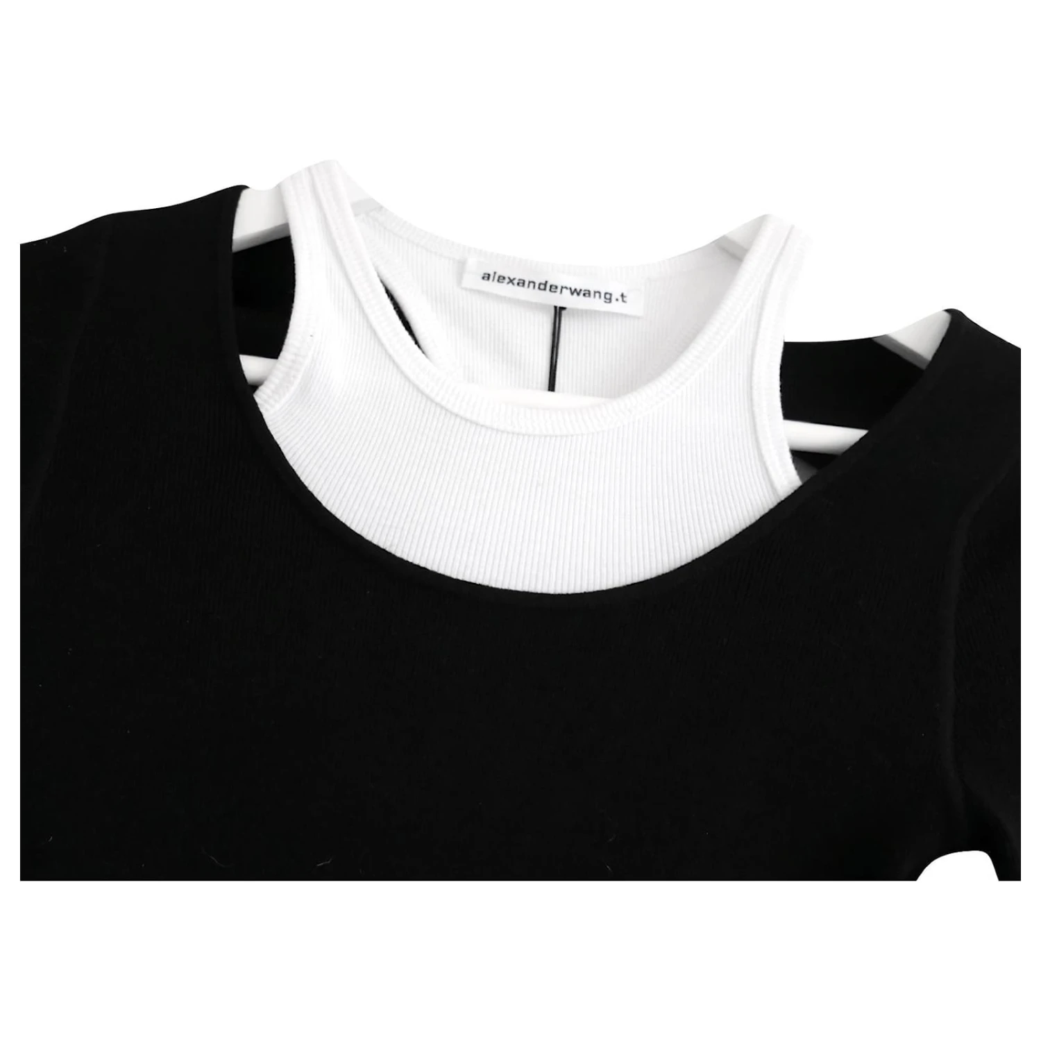 Robe sportive et cool Alexander Wang T Bi-Layer Body Con. Acheté pour $495 et nouveau avec des balises. en doux, mélange de viscose noir extensible avec sous-couche de débardeur en mélange de coton côtelé blanc. A une encolure dégagée, découpe au dos et s’enfile simplement. taille xs. Mesure environ – buste 24-30”, taille 22-28”, hips 26-32″Et longueur 34”.