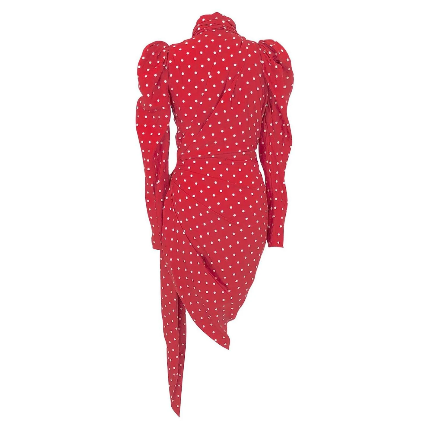 Taille française 36. Mini robe à pois rouge et blanc en soie par Alexandre Vauthier.