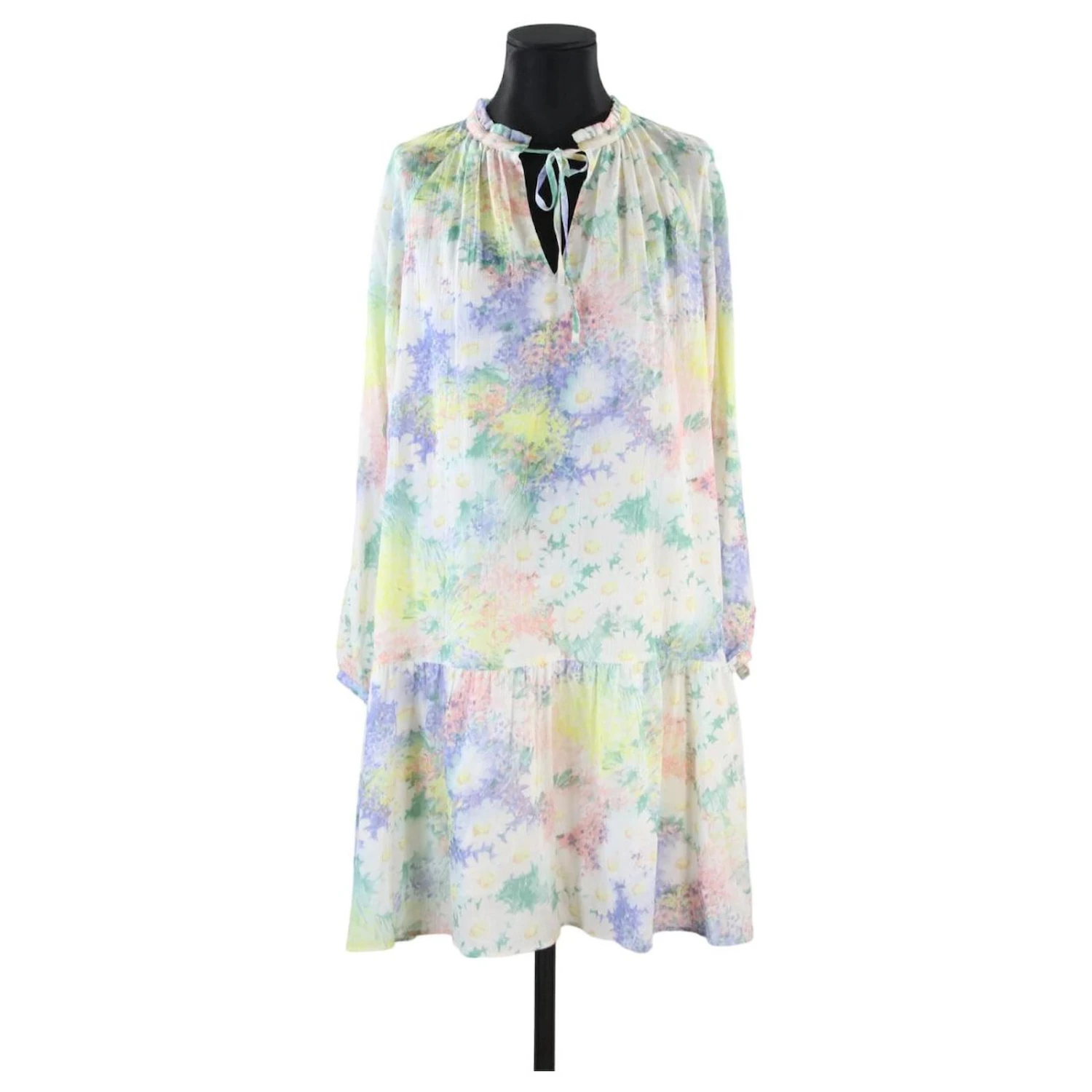 Robe mi-longue floral – Longueur 89cm – Epaules 46cm – Apc – Multicolore – Taille 42 – 100%Coton – Très Bon État – Référence 655014