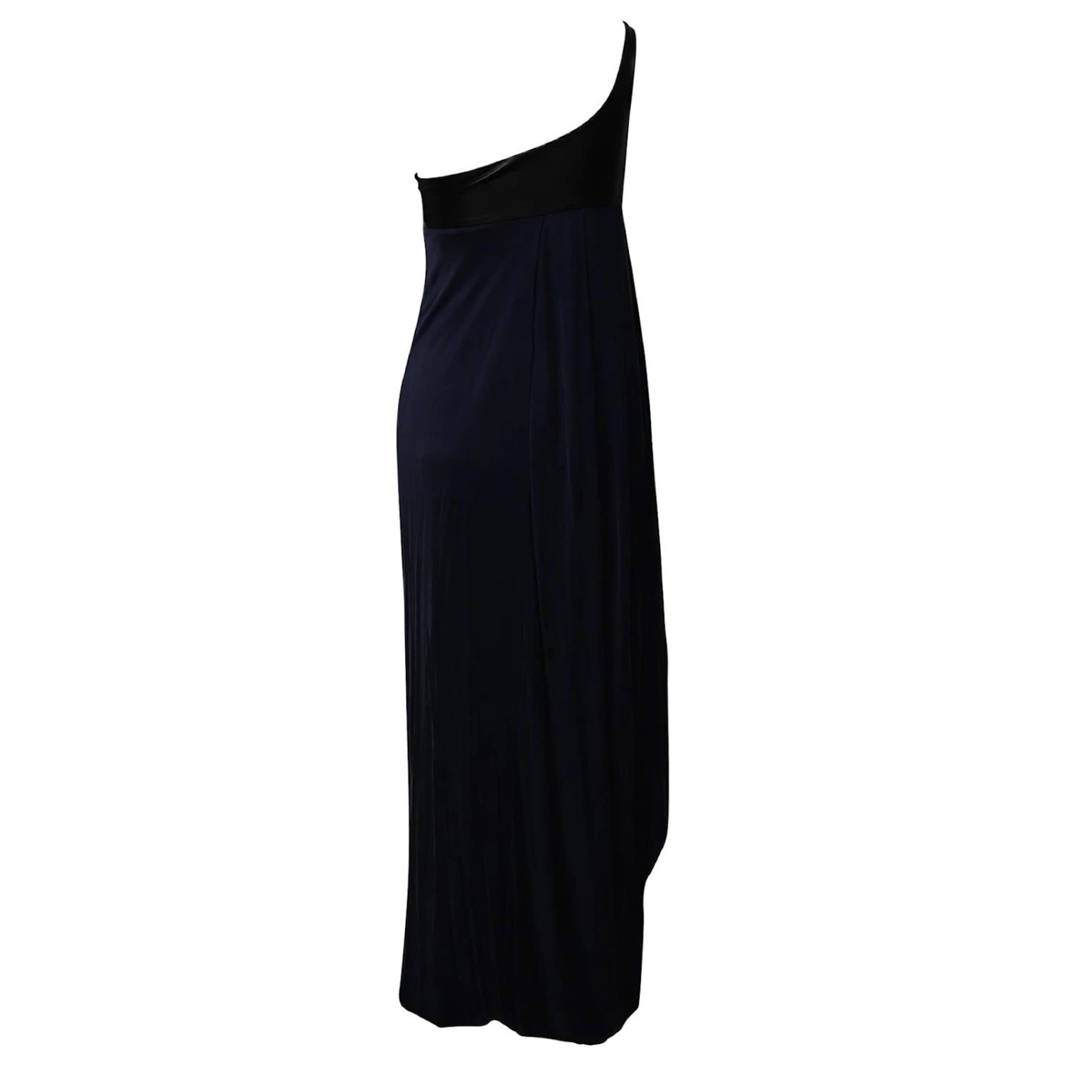 Cette robe longue de la collection Hugo Boss reste fidèle à l’ADN classique et élégant de la marque. Cette création bleu marine est réalisée en tissu polyamide. La robe à une épaule a des touches distinctes de cuir noir dessus. Lorsqu’il est associé aux bonnes chaussures, cela peut être une tenue de soirée idéale.