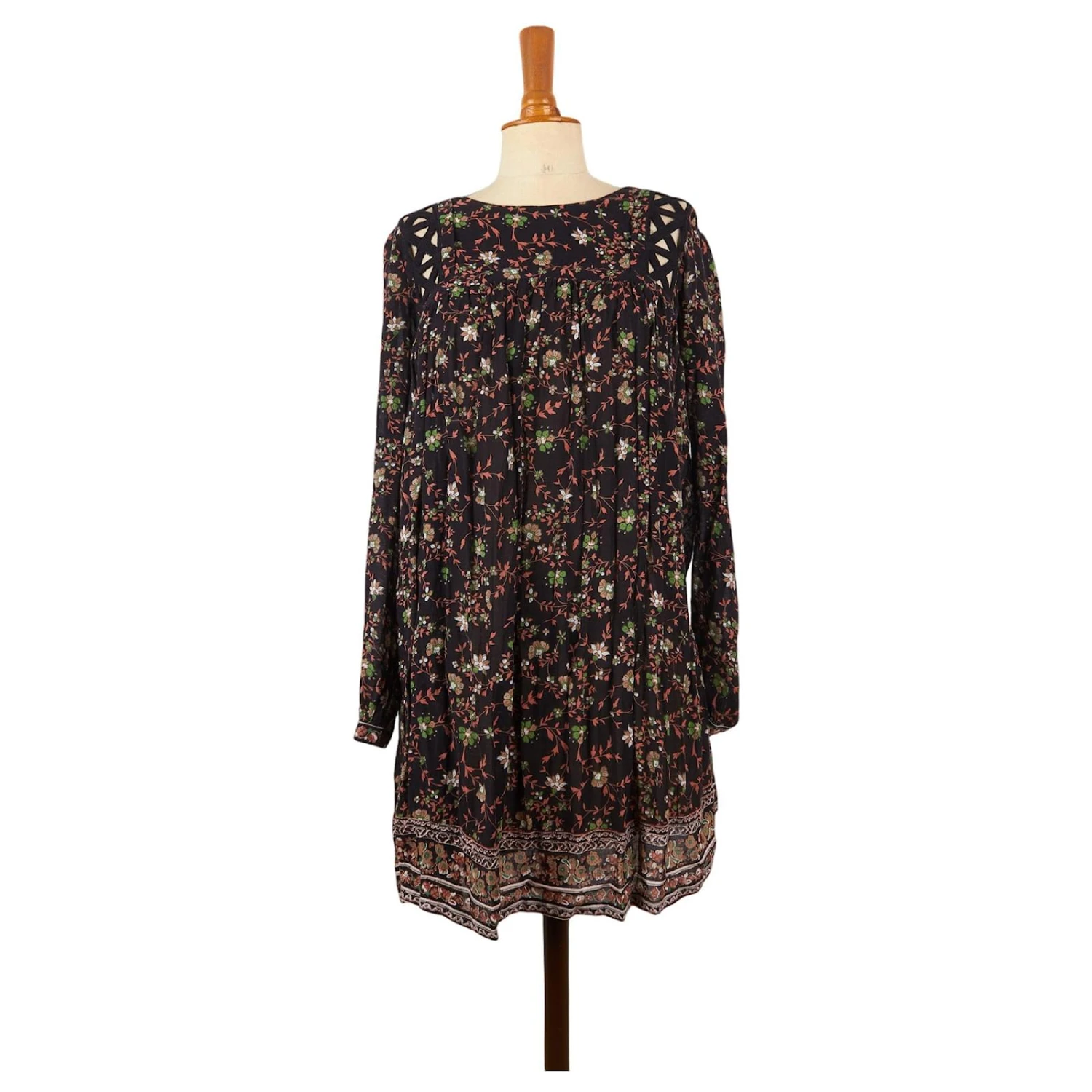 Robe de seconde main Ba&Sh noir viscose. Taille 36. Collection Femme. Très Bon État. Robe Mi long Ba&sh Noire; motifs fleuris; col rond; manches longues; légèrement transparente; ajourée sur les épaules; modèle : Fraja.DoublureParfait pour la saison : Printemps / ÉtéPrix d’origine : 230;00€Modèle : FrajaMatière principale : ViscoseComposition : Viscose; Cton; PolyesterTaille inscrite : 1 (0 – 5)Taille équivalente : S / 36Longueur : 80 (cm)Largeur : 44 (cm). Référence : 1053031.