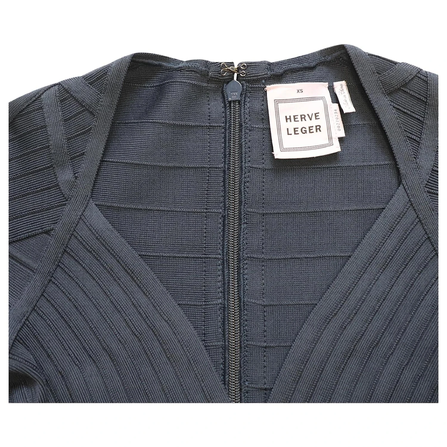 Herve Leger pionnier de la création de robes bandage. Fabriqué avec un mélange des meilleurs matériaux, les bandes emblématiques en forme de bandage sont conçues pour façonner et illuminer votre silhouette. Absolument élégant, cette robe bleue à manches longues est parfaite pour les fêtes et sculpte une coupe fabuleuse.